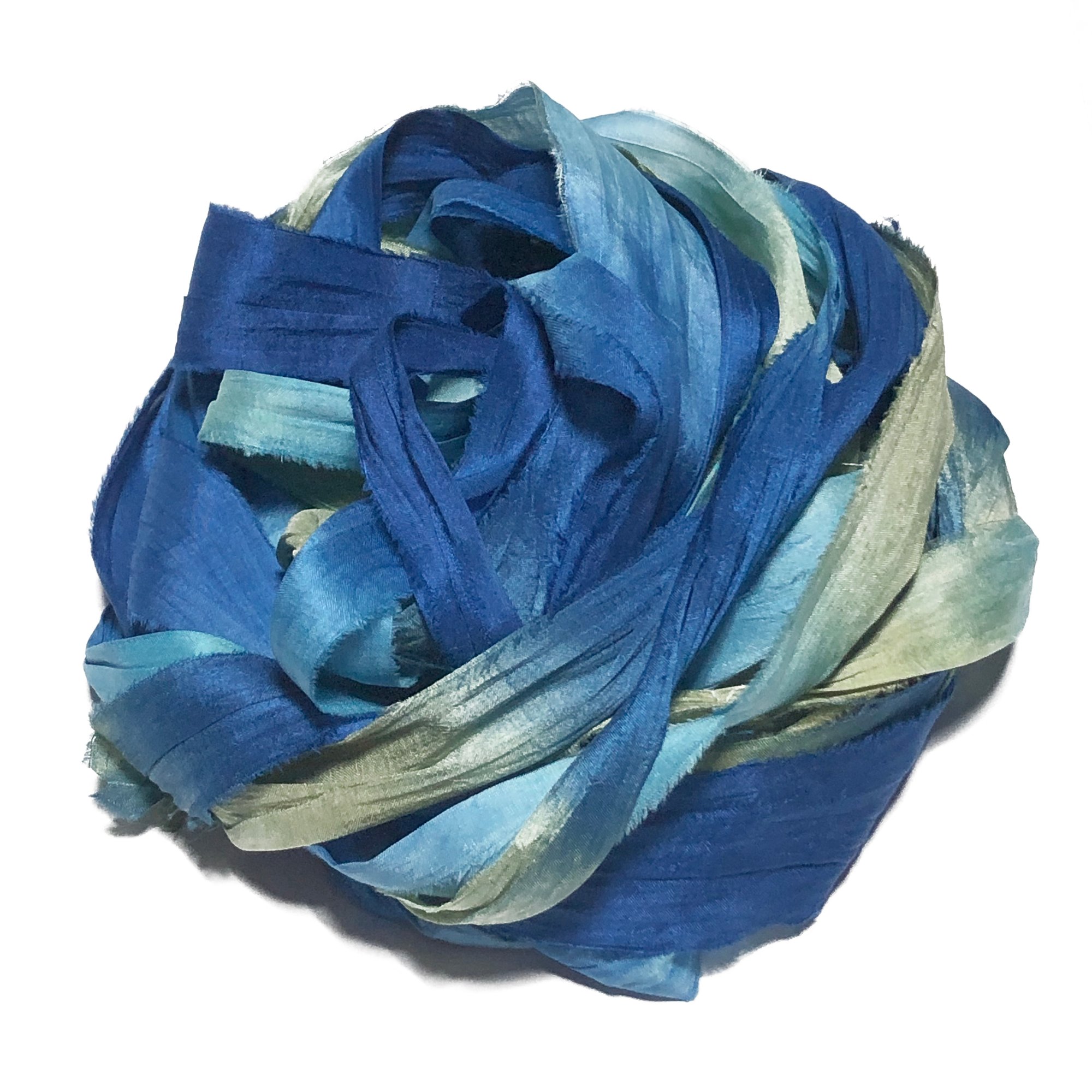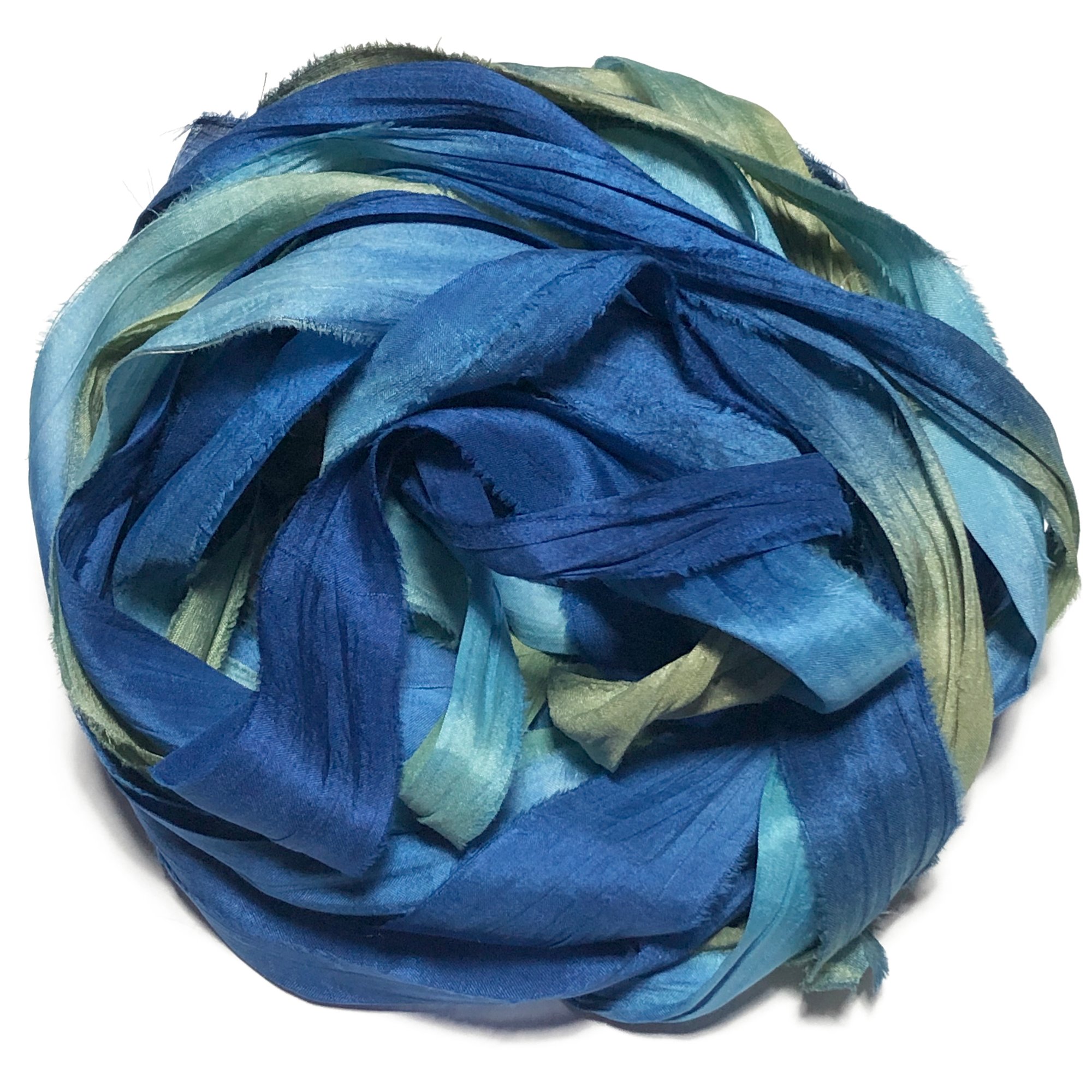 Ready To Ship! 10YD. AQUARIUM HAND DYED SARI SILK RIBBON BY COLOR BURST SILK