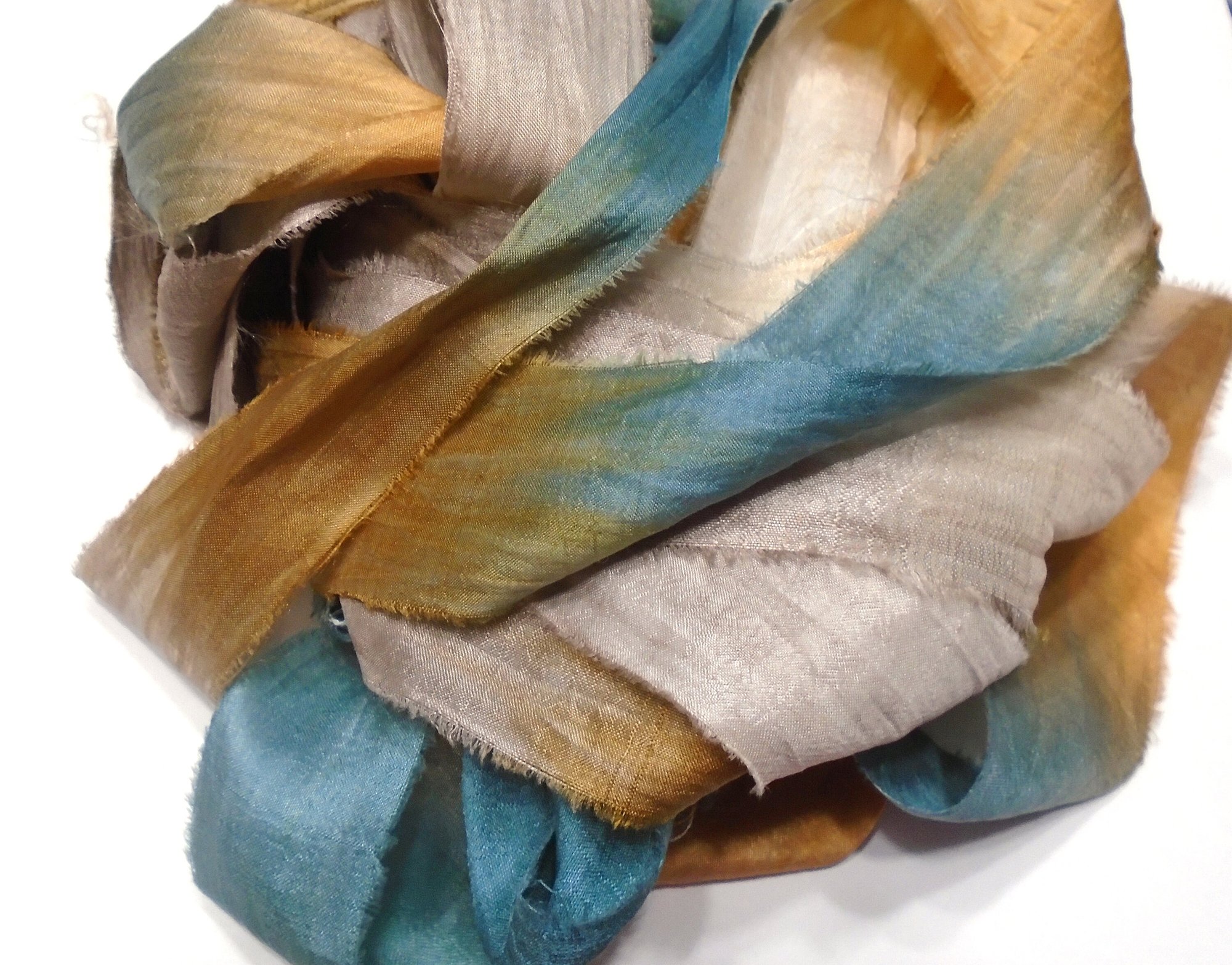 Ready To Ship! 10YD. HARVEST MOON HAND DYED SARI SILK RIBBON BY COLOR BURST SILK