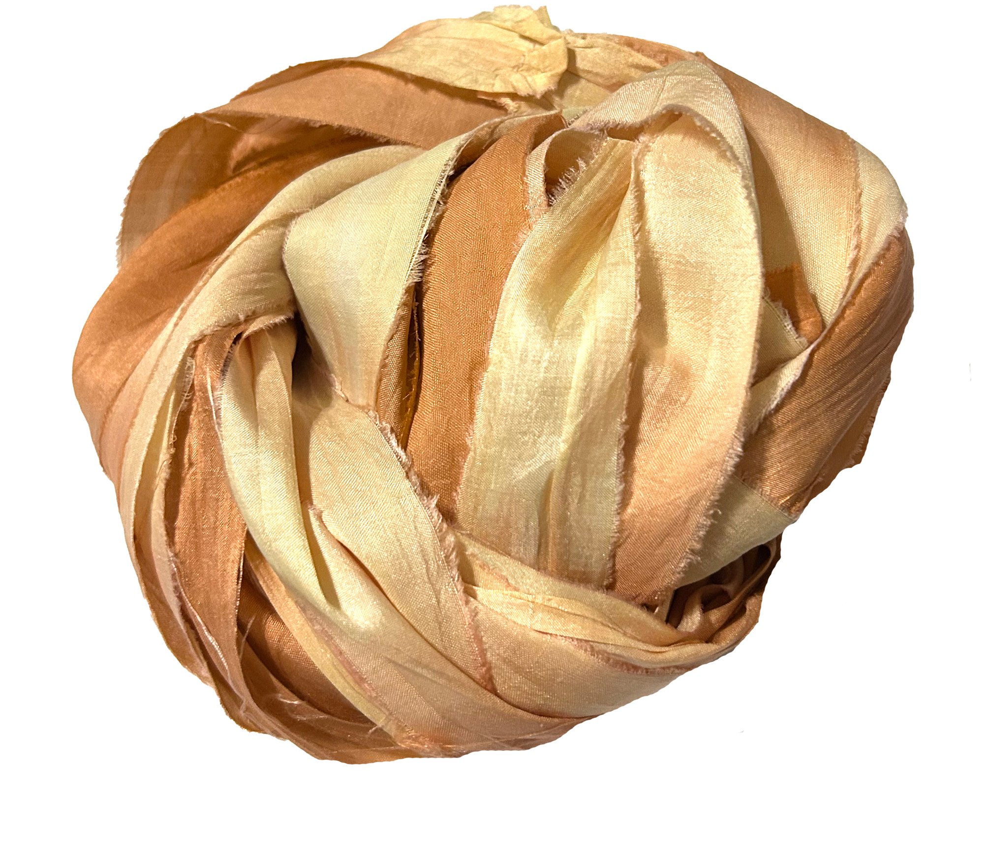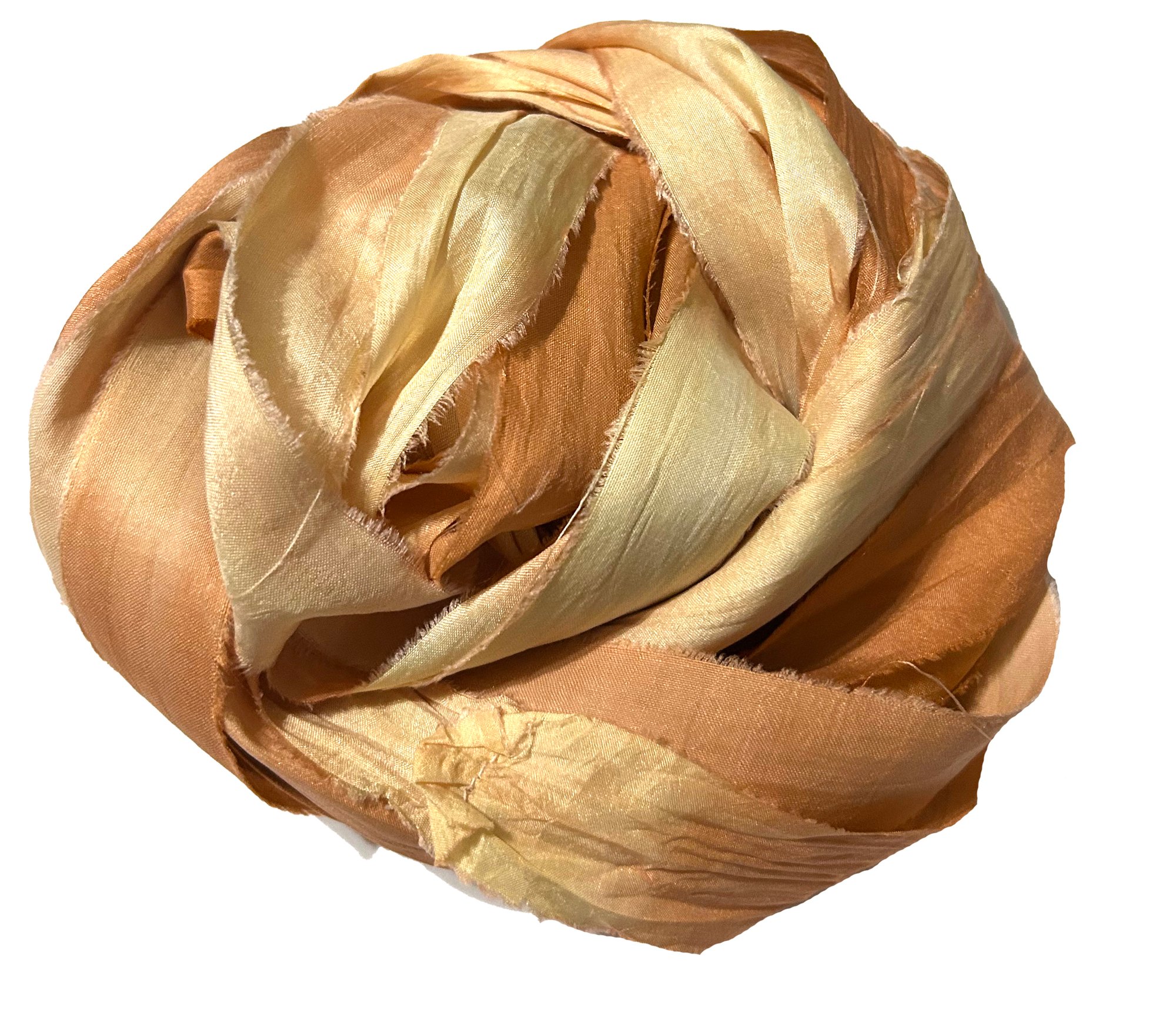 10YD. PEANUT BRITTLE HAND DYED SARI SILK RIBBON BY COLOR BURST SILK
