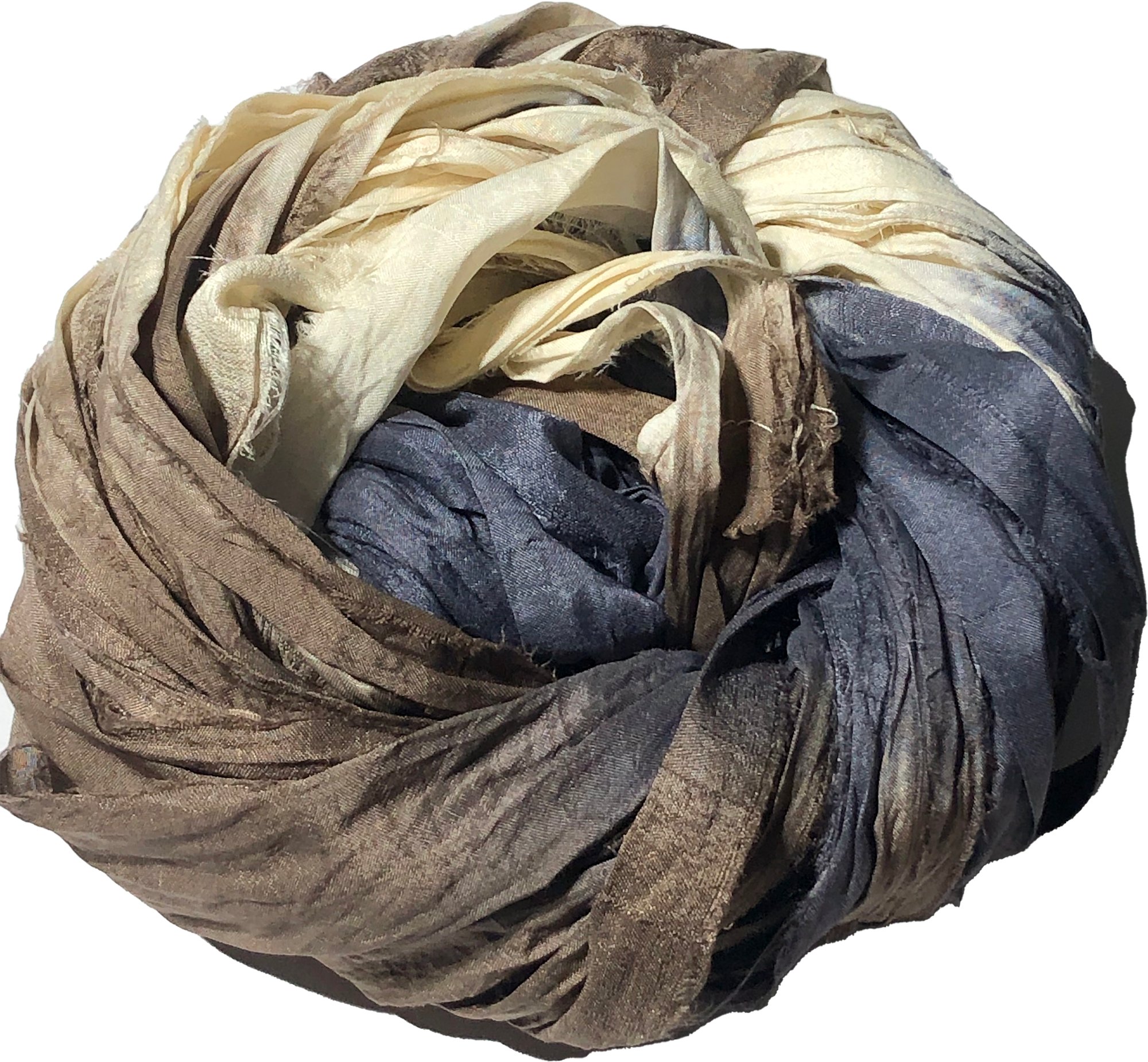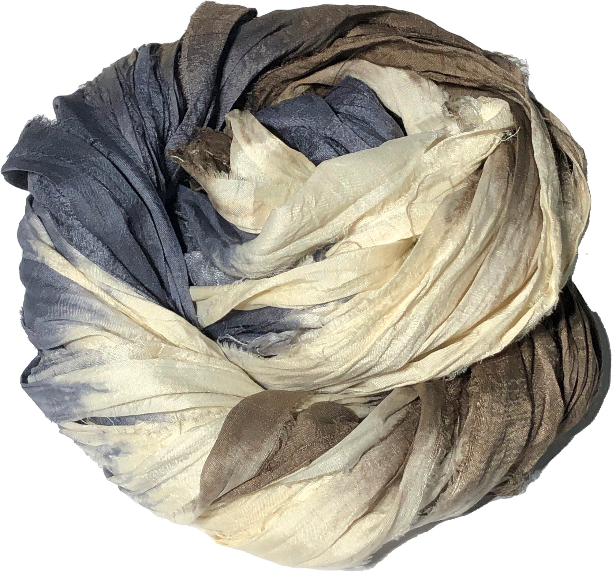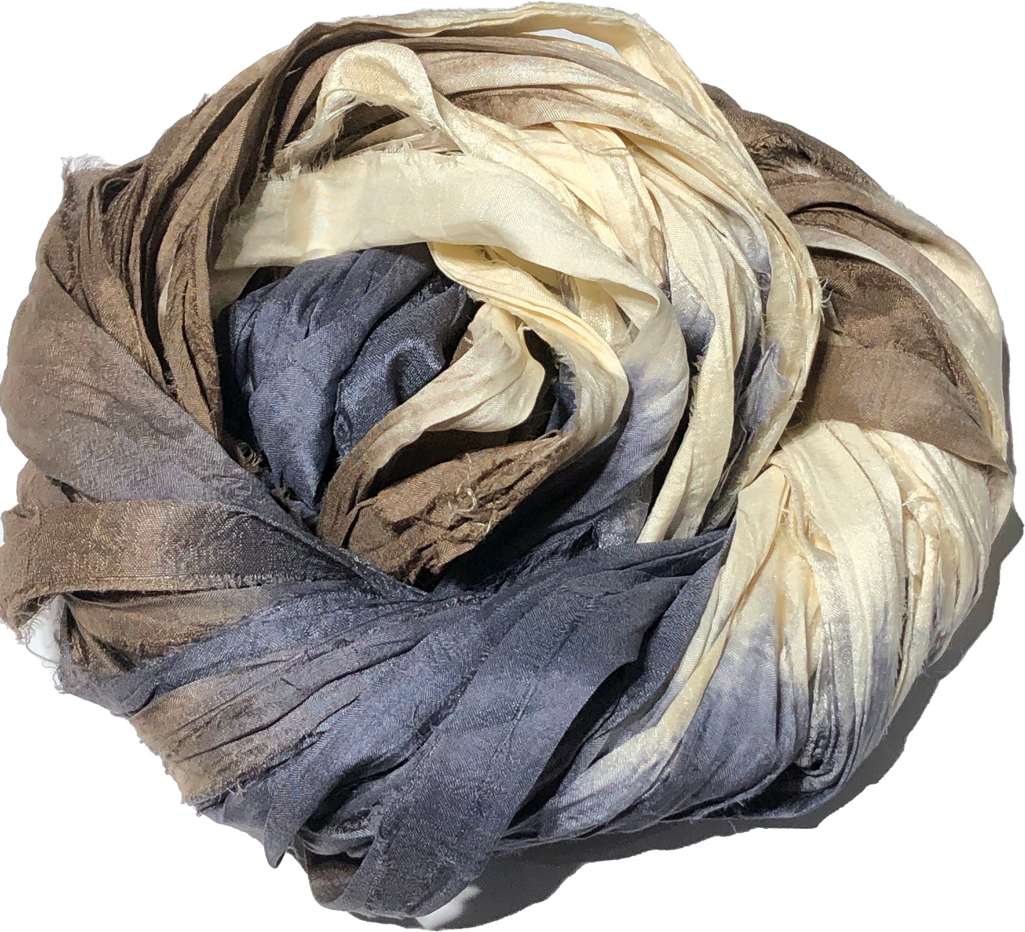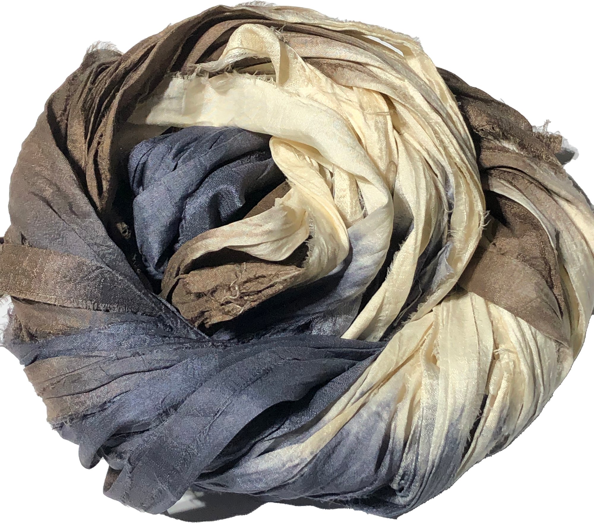 10YD. RAW HIDE HAND DYED SARI SILK RIBBON BY COLOR BURST SILK