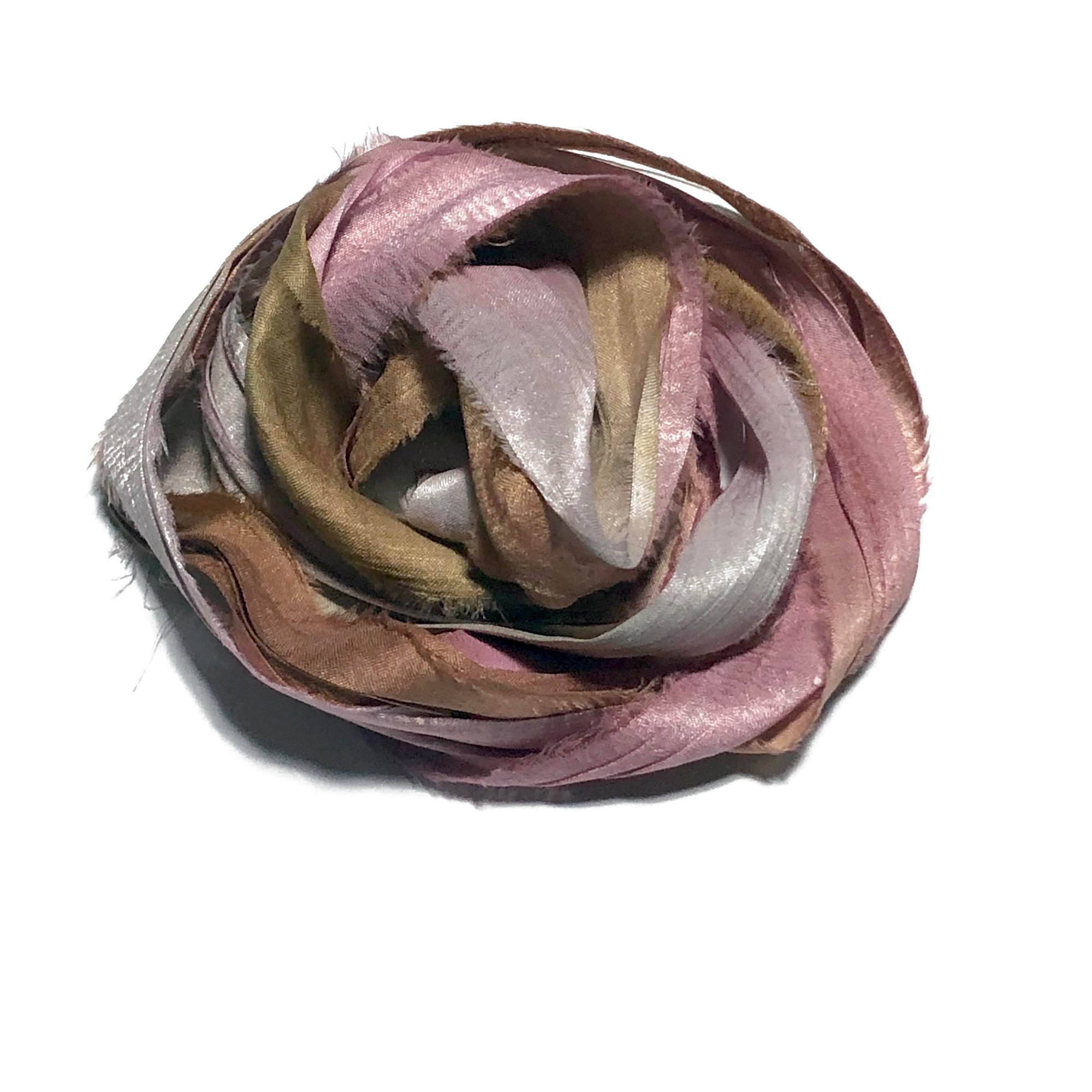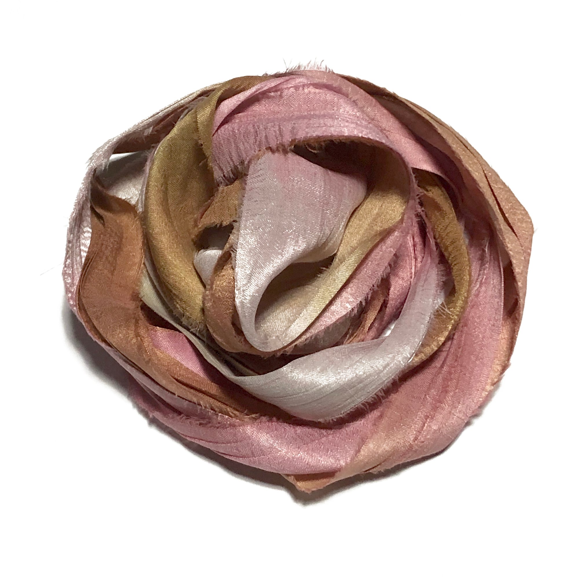 Ready To Ship! 10YD. ROSE MILK HAND DYED SARI SILK RIBBON BY COLOR BURST SILK