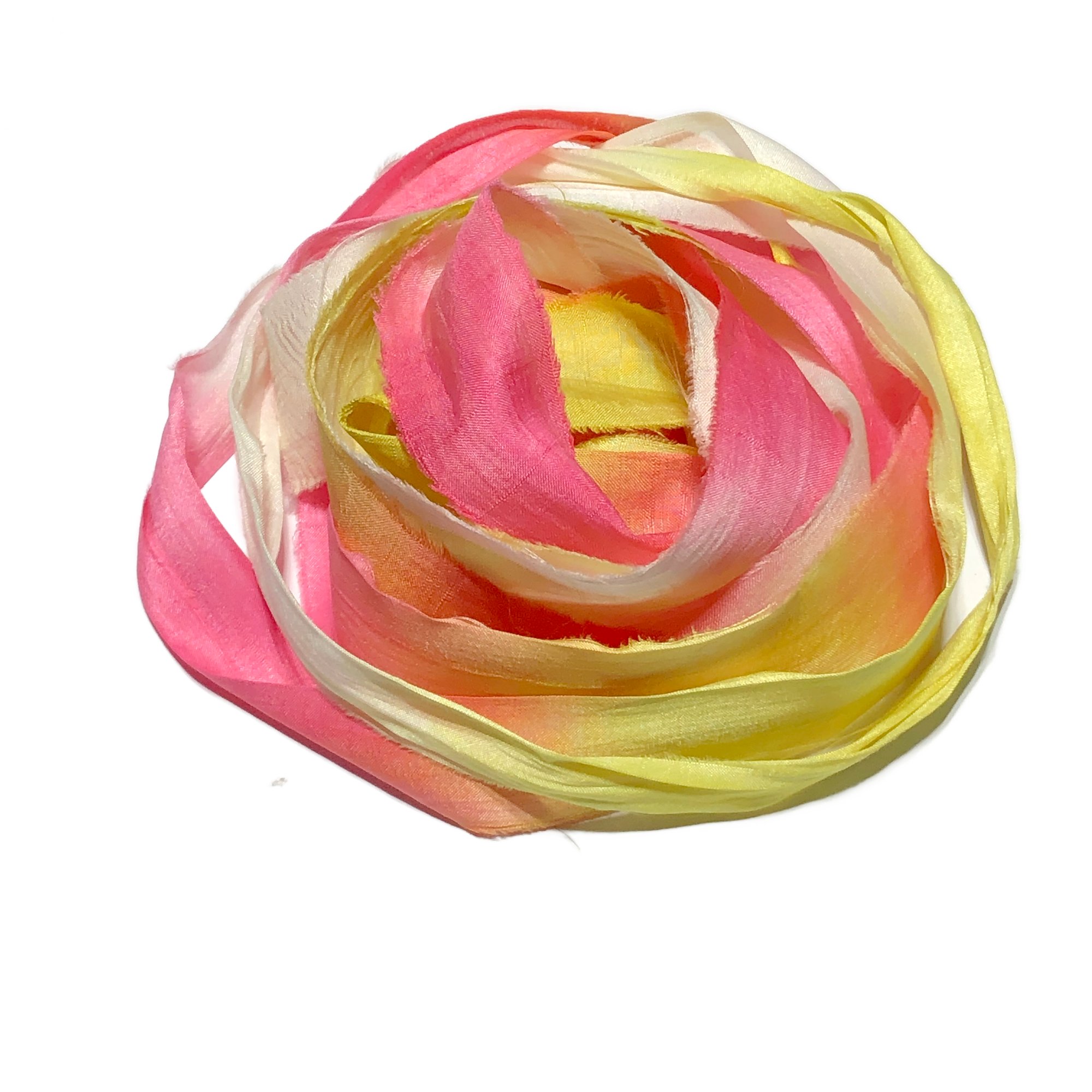 Ready To Ship! 10YD. SPRING BLOOMS HAND DYED SARI SILK RIBBON BY COLOR BURST SILK
