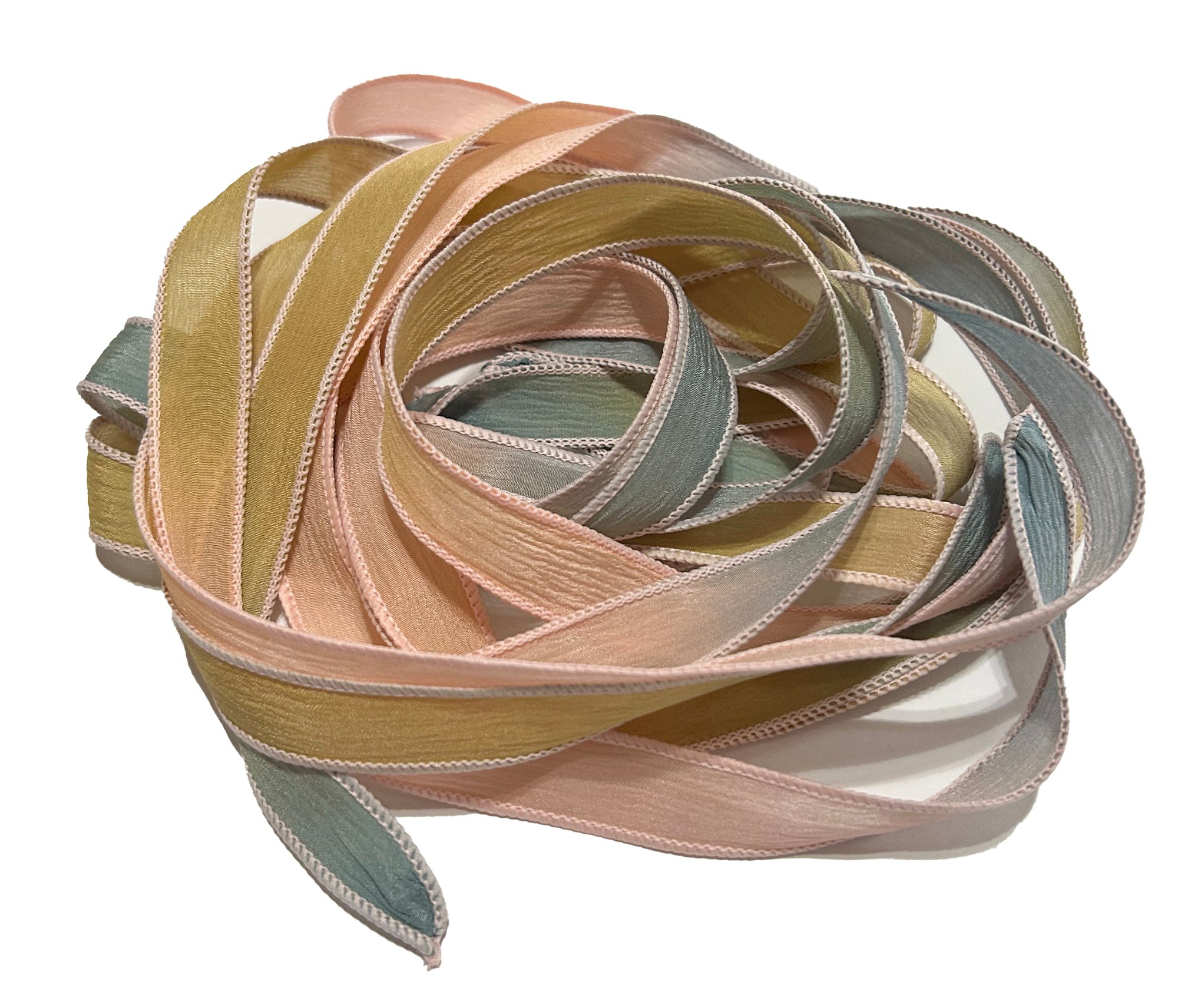 HAND DYED RIBBONS CAN APPEAR LIGHTER OR DARKER IN PERSON. SLIGHT VARIATIONS MAY OCCUR FROM ONE DYE LOT TO ANOTHER.