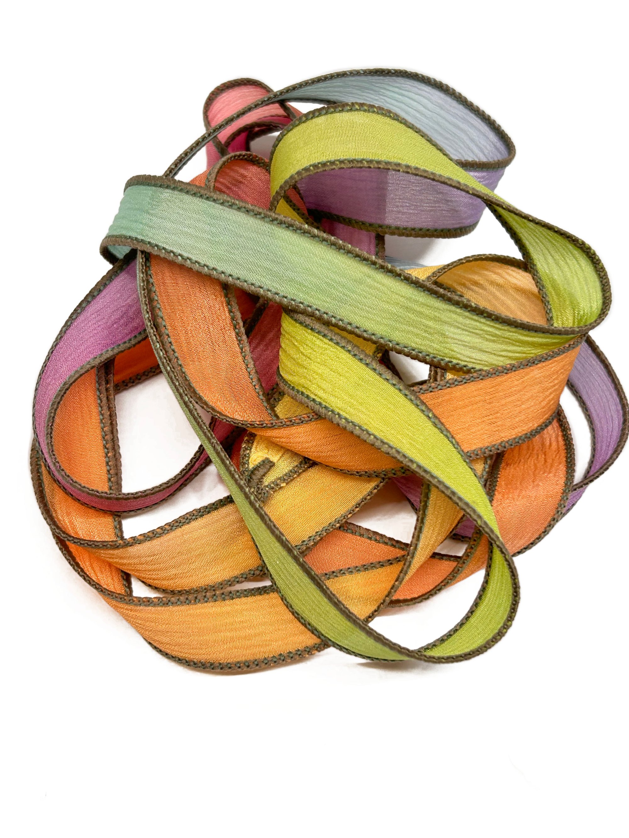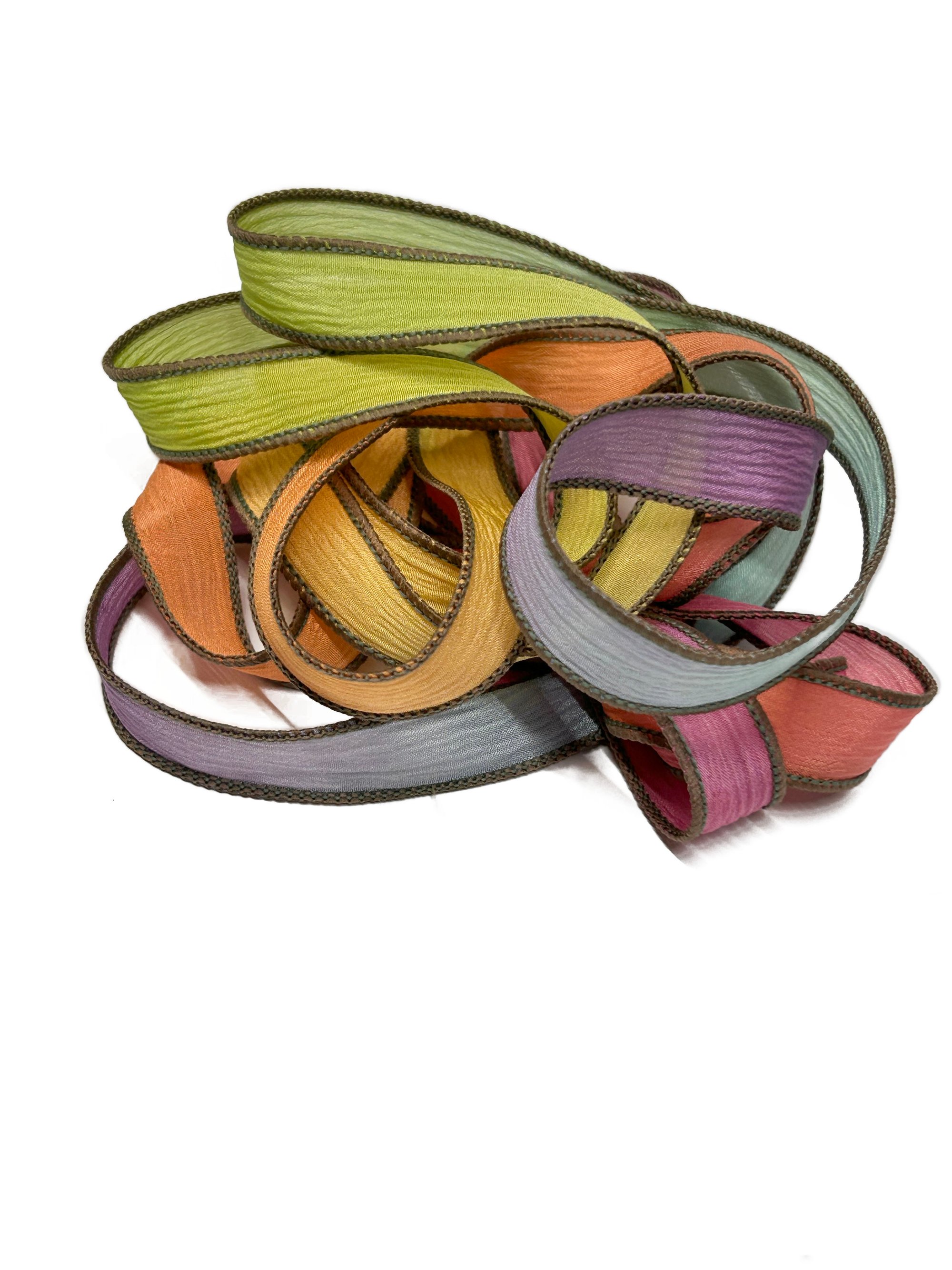 1PC HIPPIE BEADS 42" hand dyed wrist wrap bracelet silk ribbon//Yoga wrist wrap bracelet ribbon