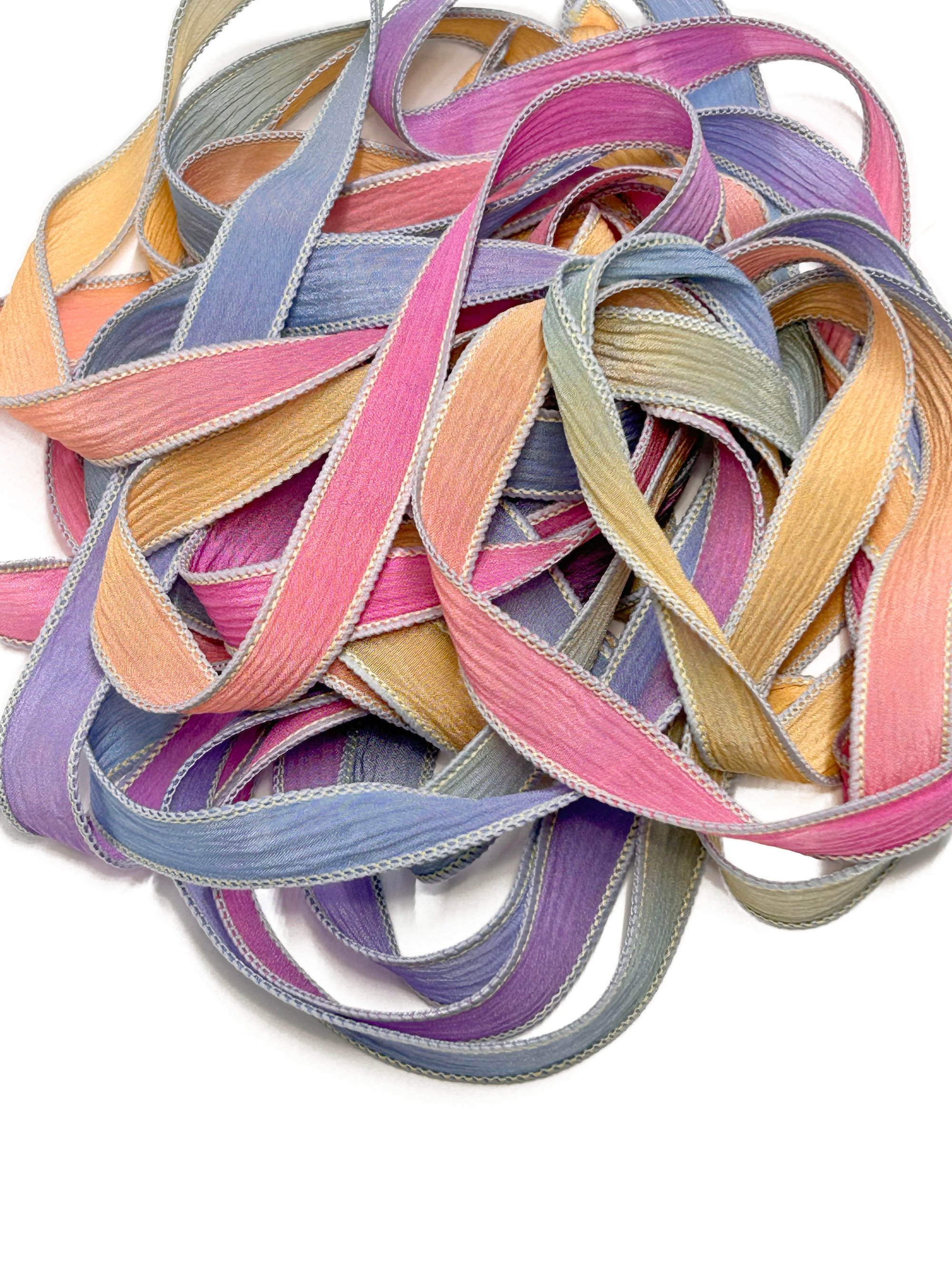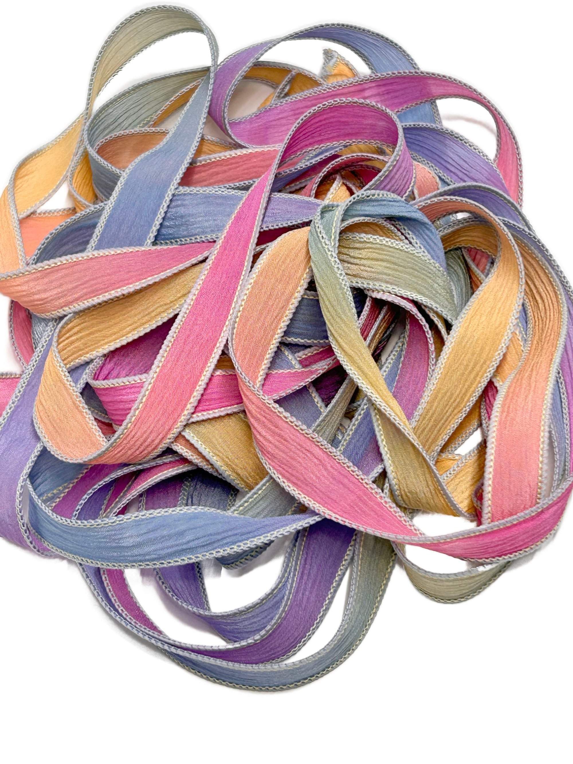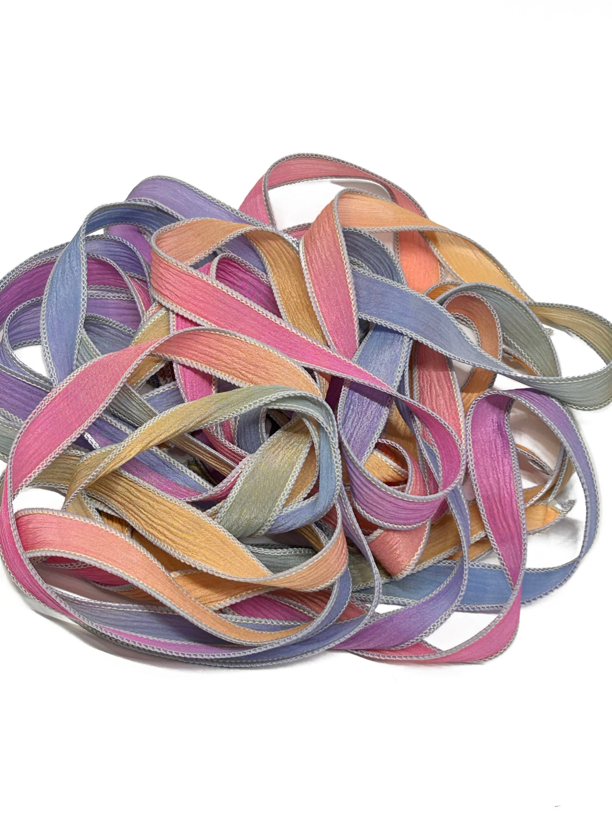 1PC. RAINBOW 42" hand dyed wrist wrap bracelet silk ribbon//Yoga wrist wrap bracelet ribbon