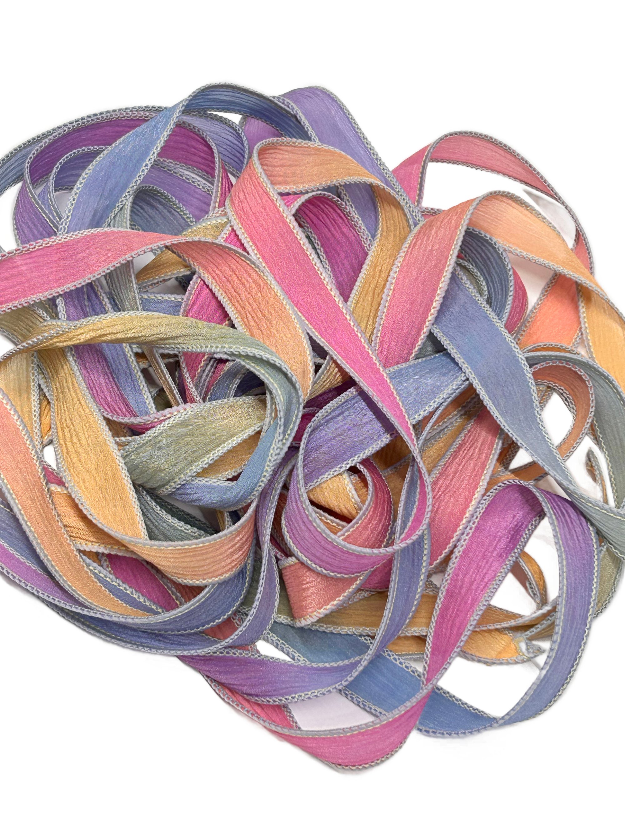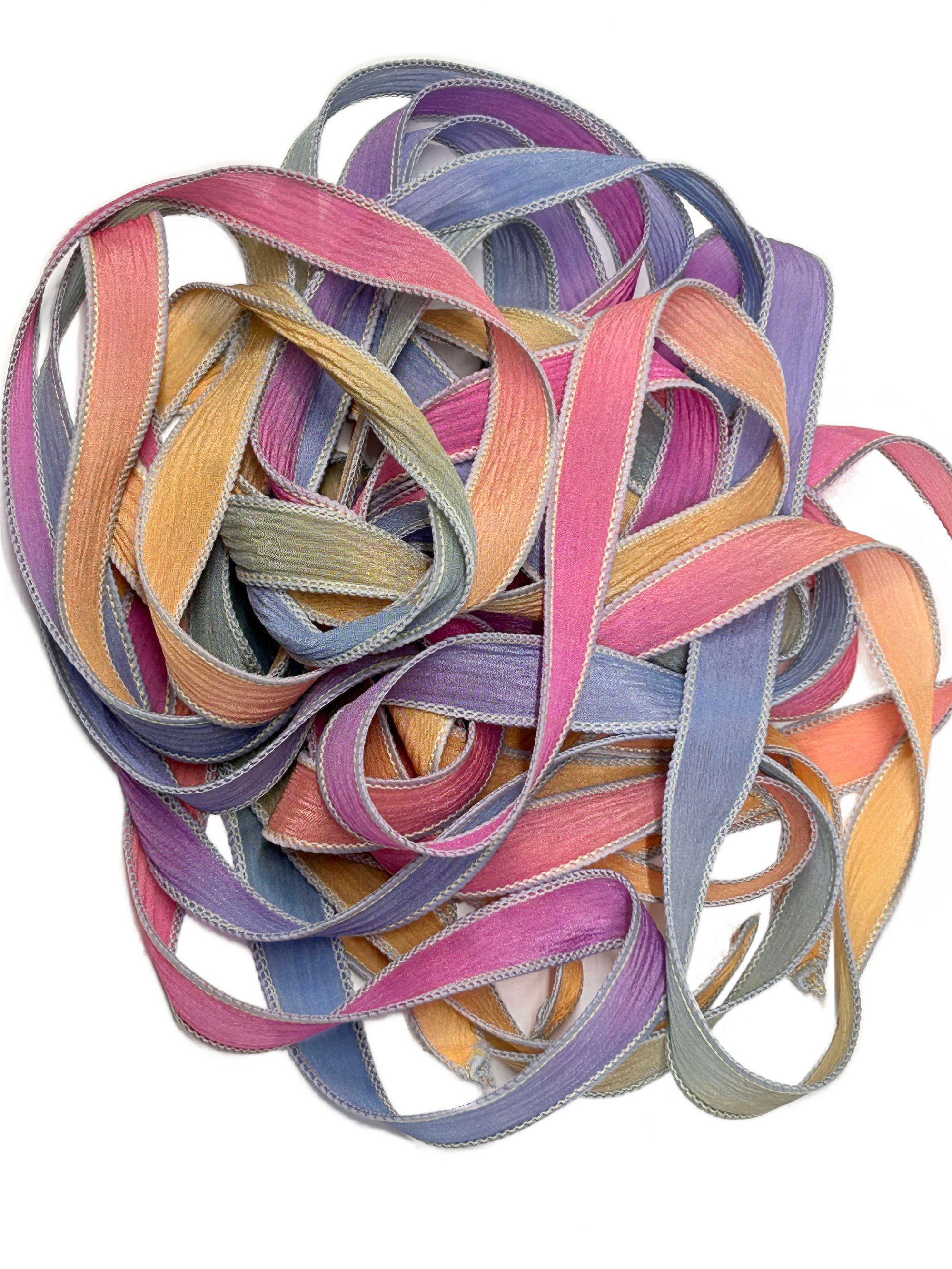 HAND DYED RIBBONS CAN APPEAR LIGHTER OR DARKER IN PERSON. SLIGHT VARIATIONS MAY OCCUR FROM ONE DYE LOT TO ANOTHER.