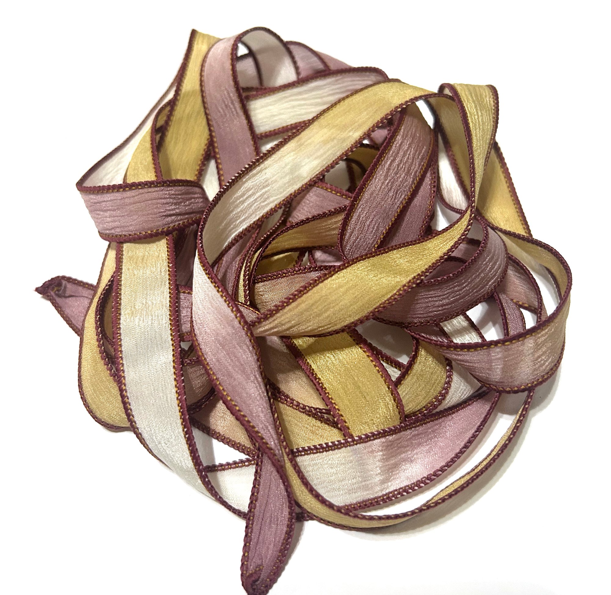 1PC. ANTIQUED 42" hand dyed wrist wrap bracelet silk ribbon//Yoga wrist wrap bracelet ribbon