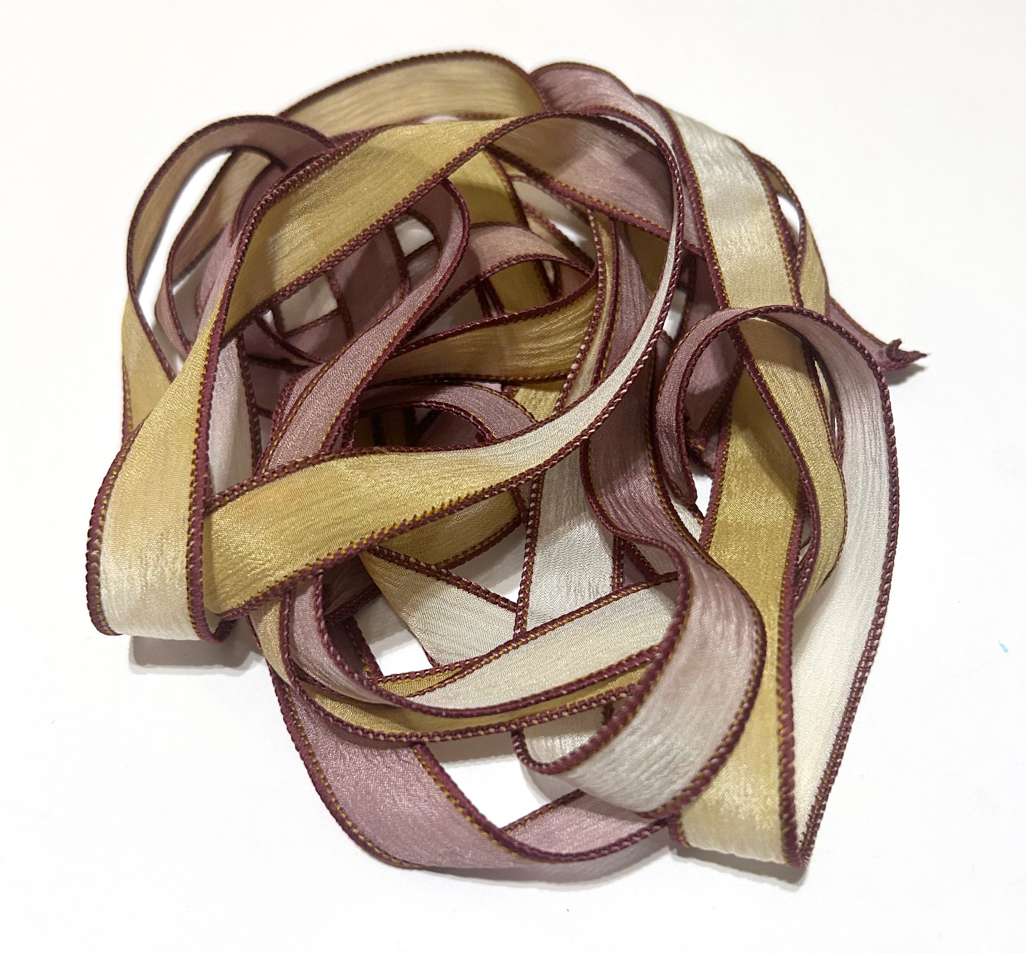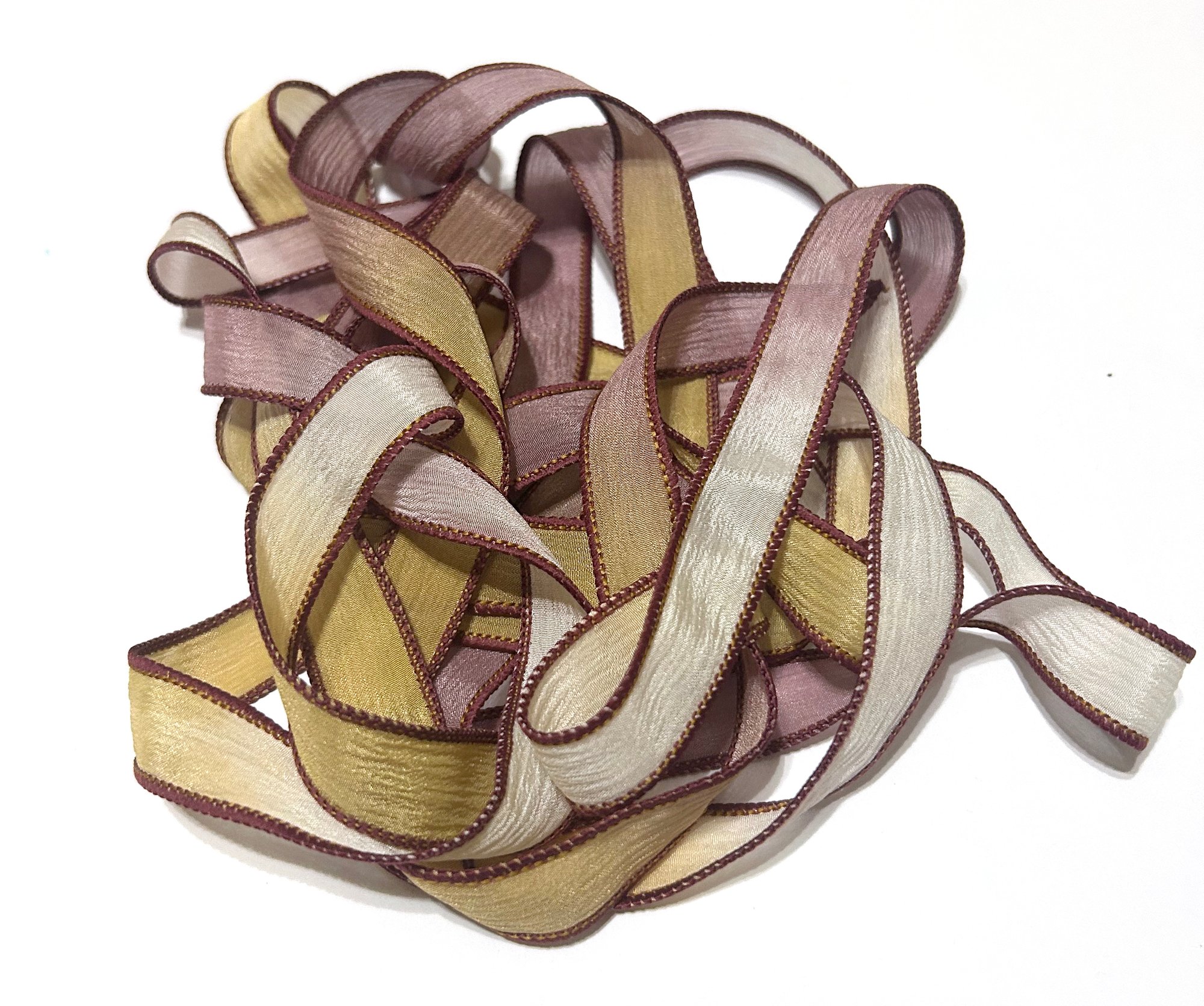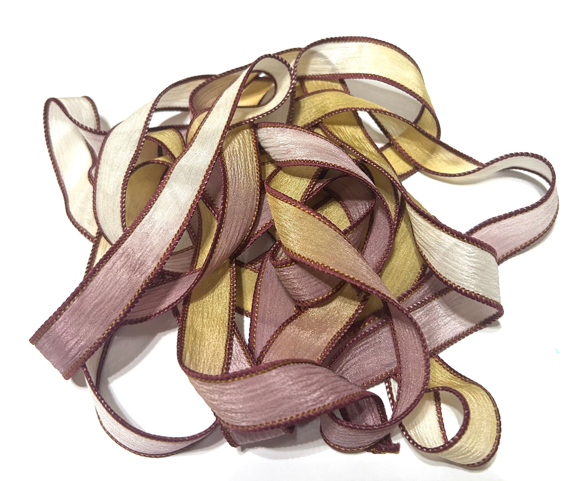 HAND DYED RIBBONS CAN APPEAR LIGHTER OR DARKER IN PERSON. SLIGHT VARIATIONS MAY OCCUR FROM ONE DYE LOT TO ANOTHER.