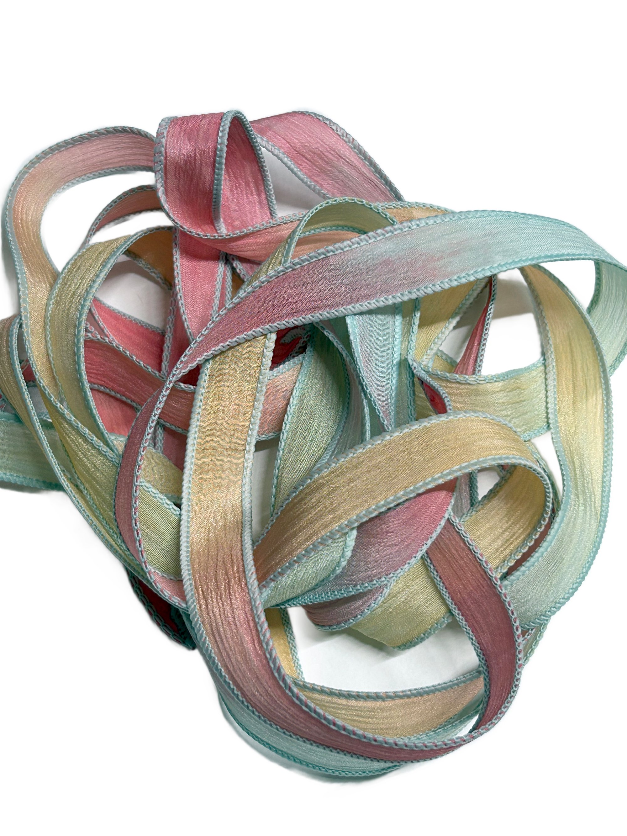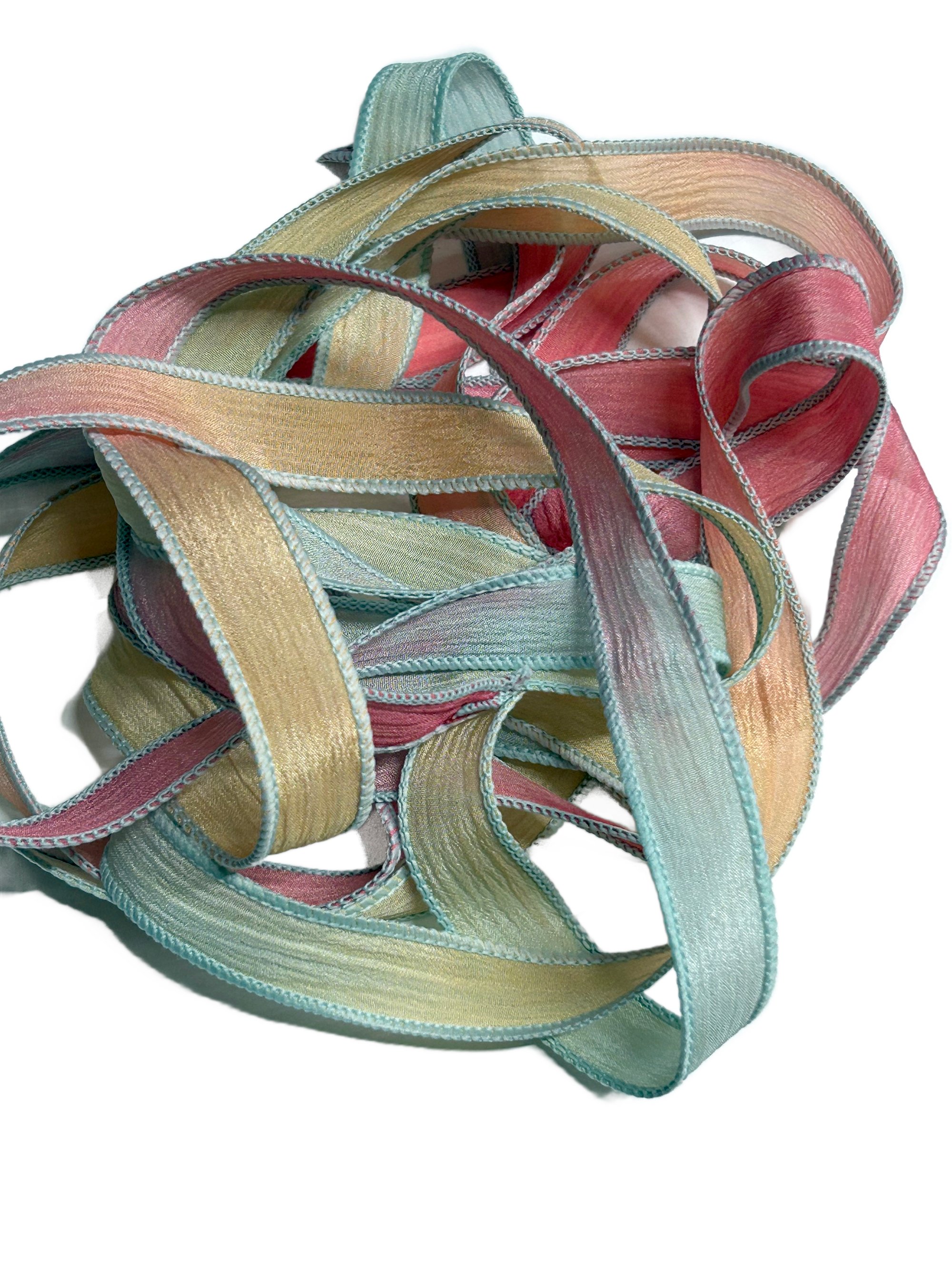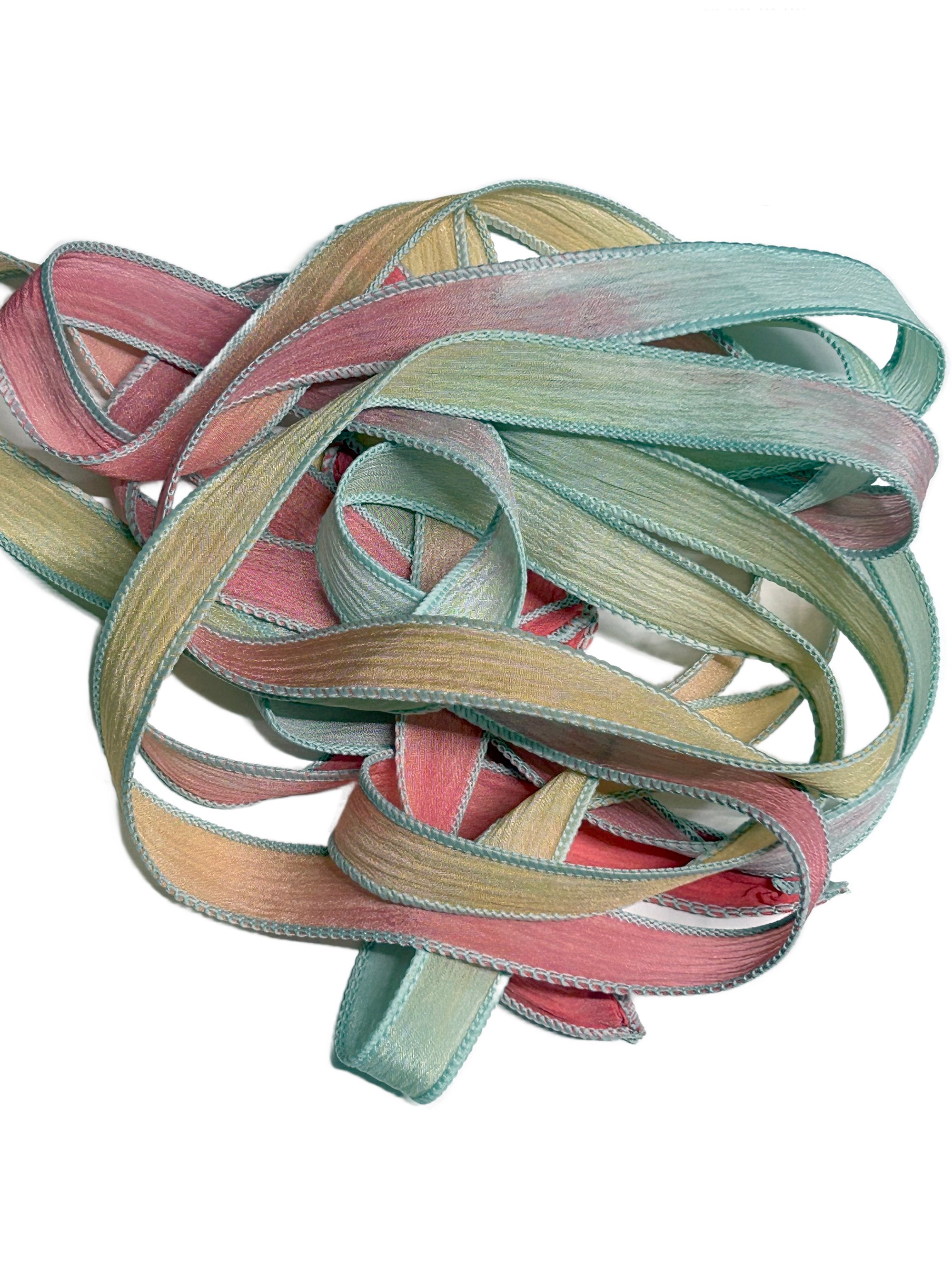 1PC. BEACH CABANA 42" hand dyed wrist wrap bracelet silk ribbon//Yoga wrist wrap bracelet ribbon