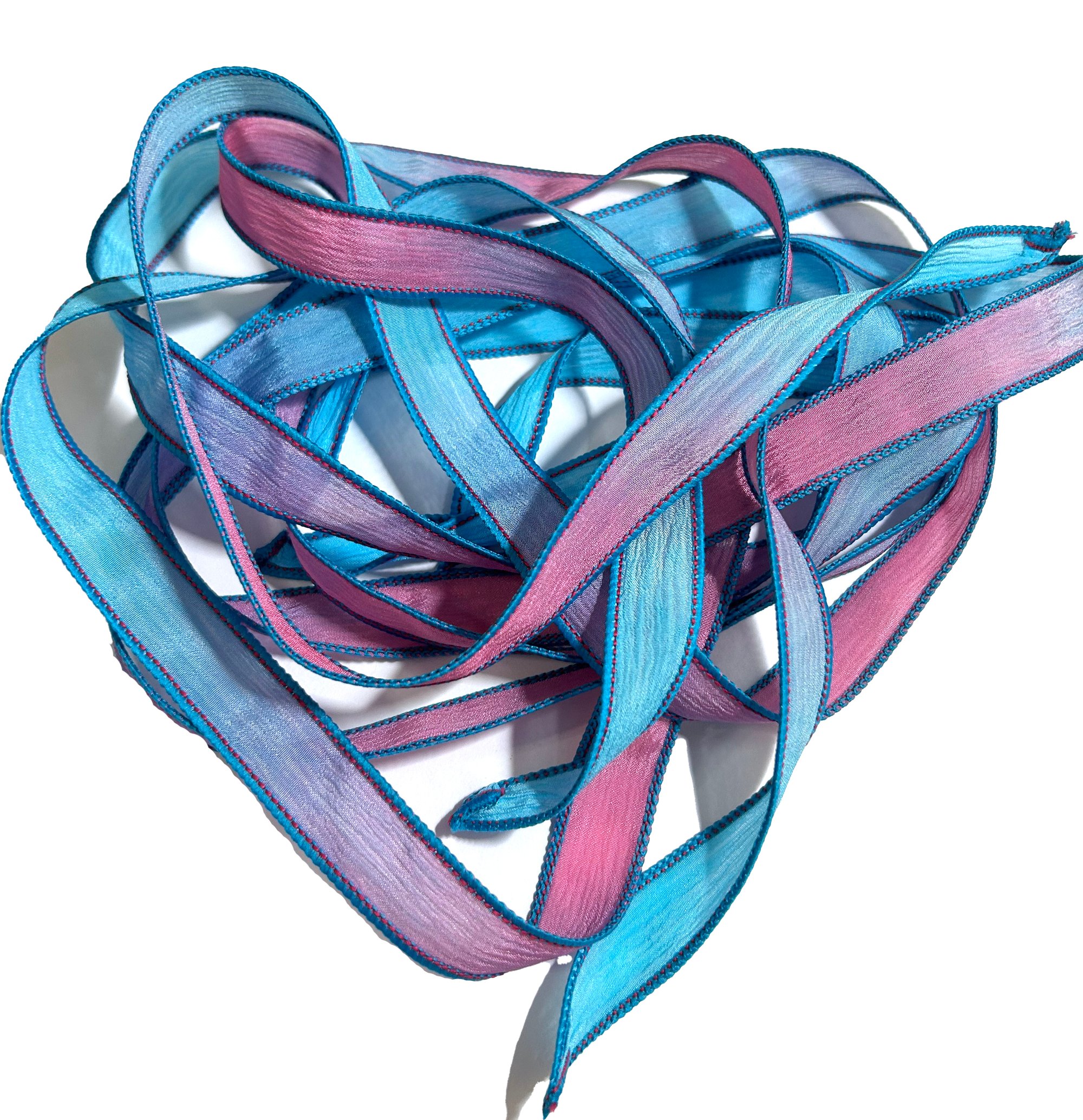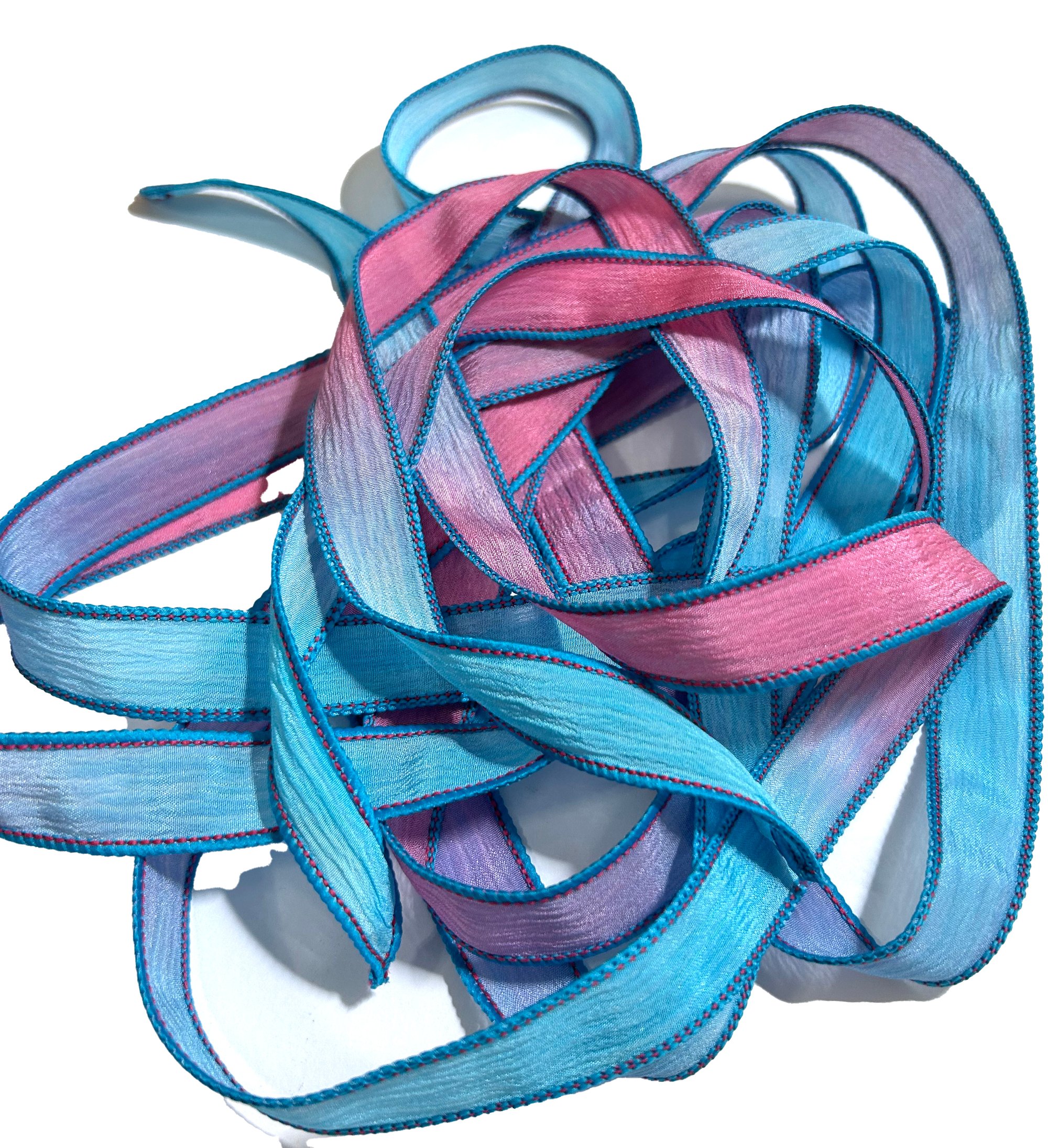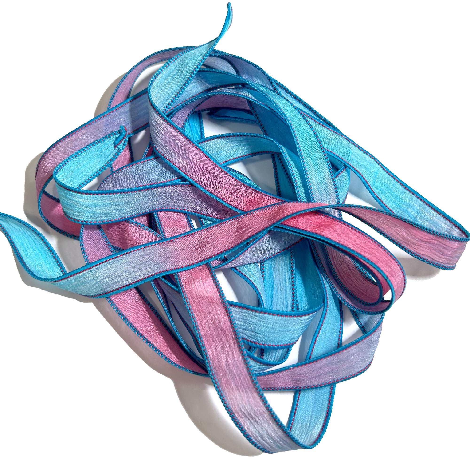 1PC. COTTON CANDY 42" hand dyed wrist wrap bracelet silk ribbon//Yoga wrist wrap bracelet ribbon