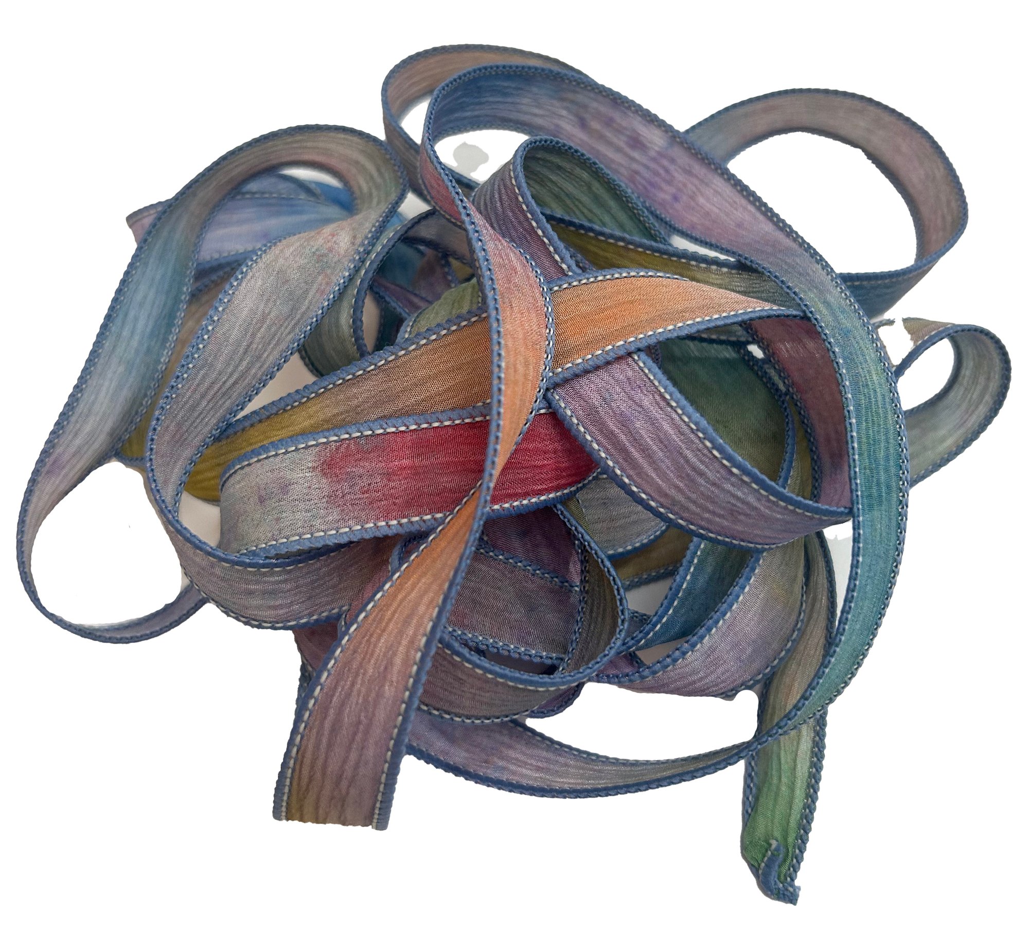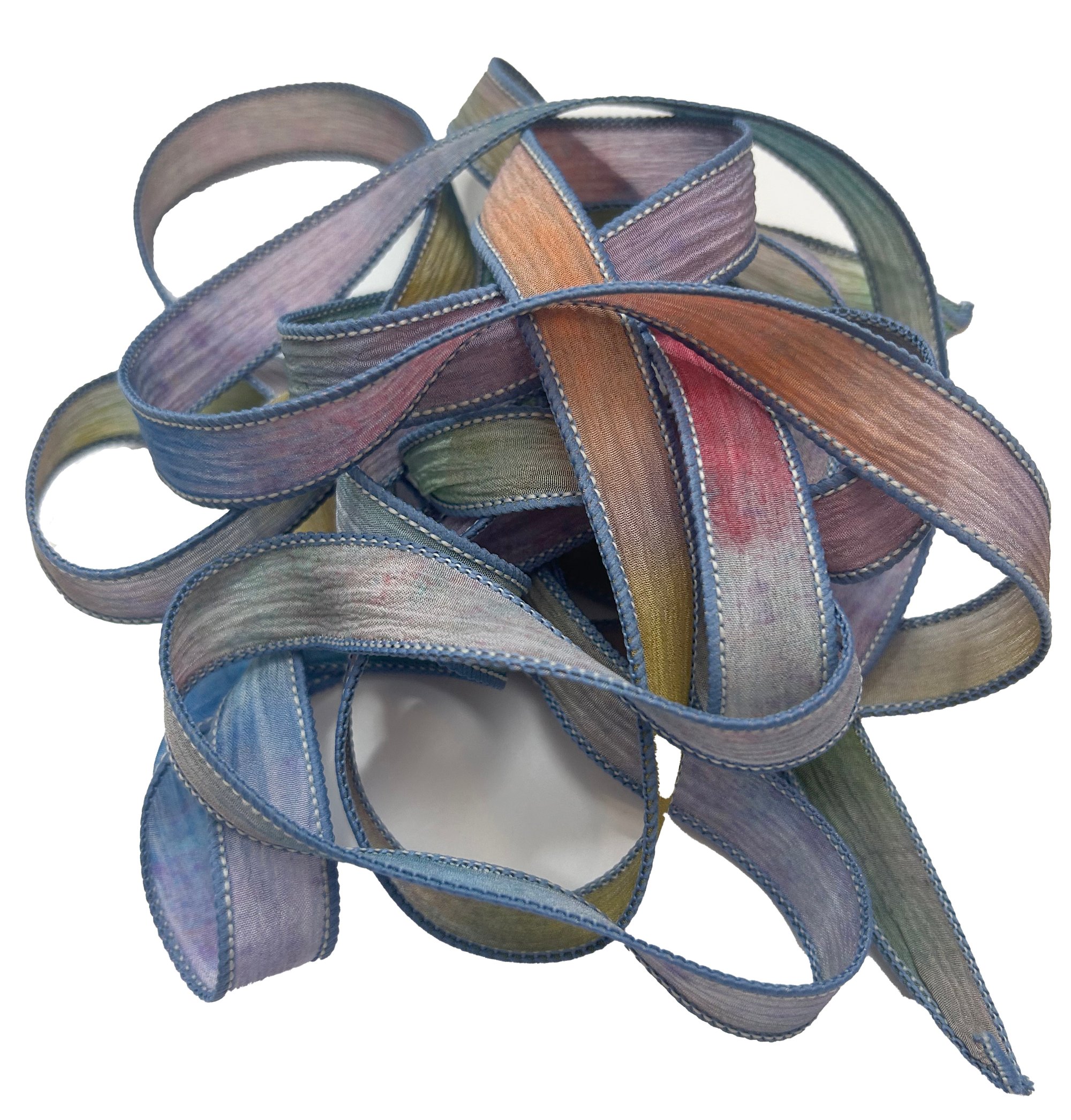 HAND DYED RIBBONS CAN APPEAR LIGHTER OR DARKER IN PERSON. SLIGHT VARIATIONS MAY OCCUR FROM ONE DYE LOT TO ANOTHER.