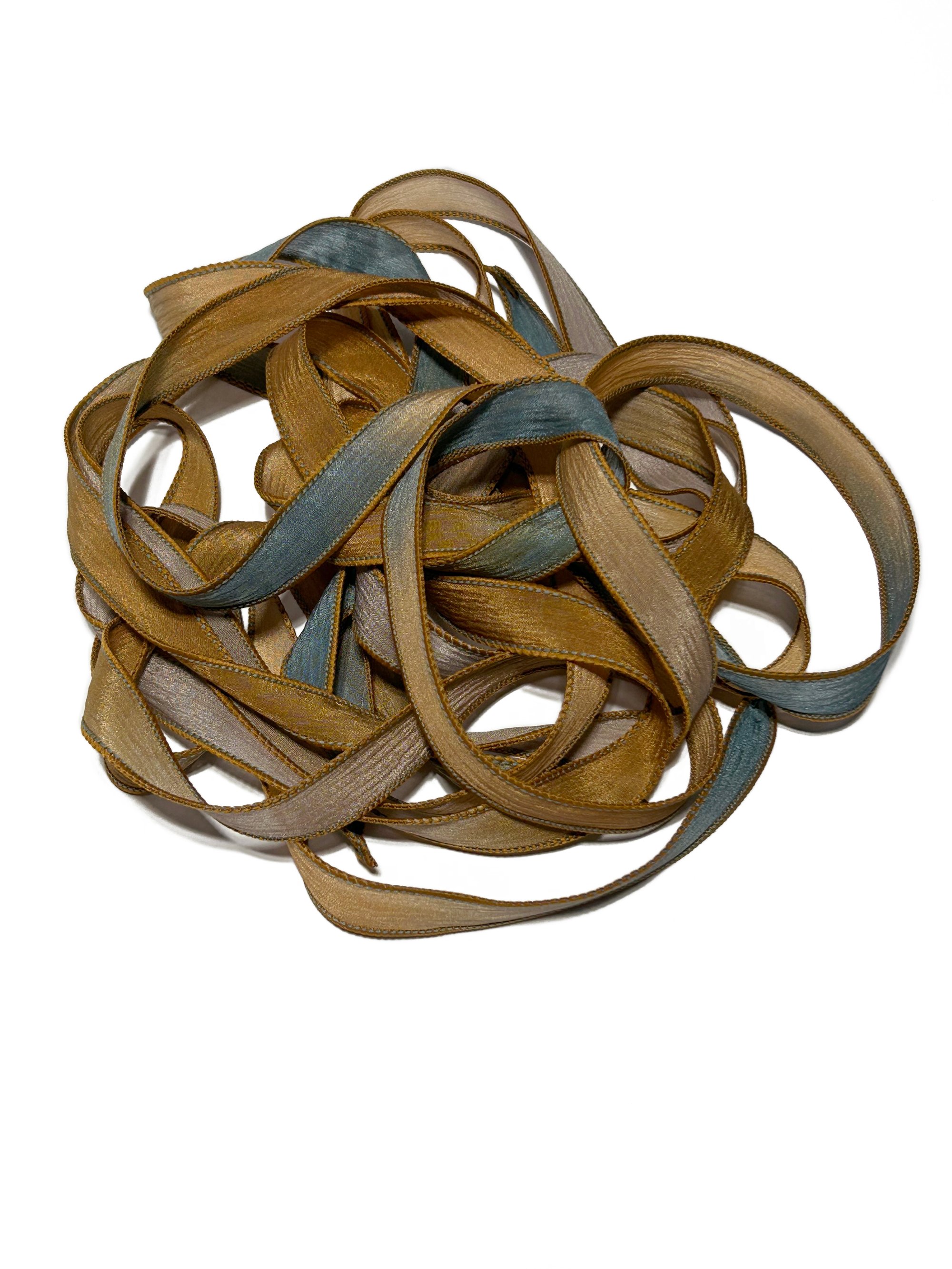 1PC. HARVEST MOON 42" hand dyed wrist wrap bracelet silk ribbon//Yoga wrist wrap bracelet ribbon