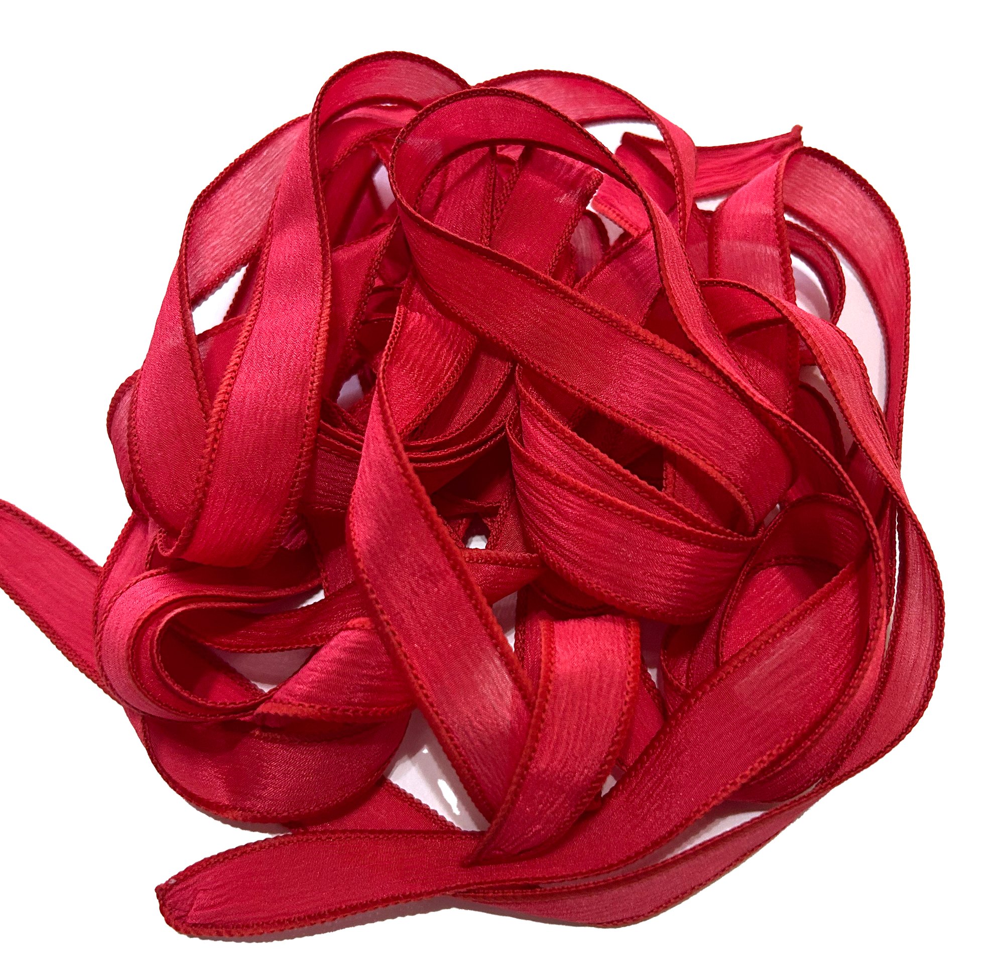 HAND DYED RIBBONS CAN APPEAR LIGHTER OR DARKER IN PERSON. SLIGHT VARIATIONS MAY OCCUR FROM ONE DYE LOT TO ANOTHER.