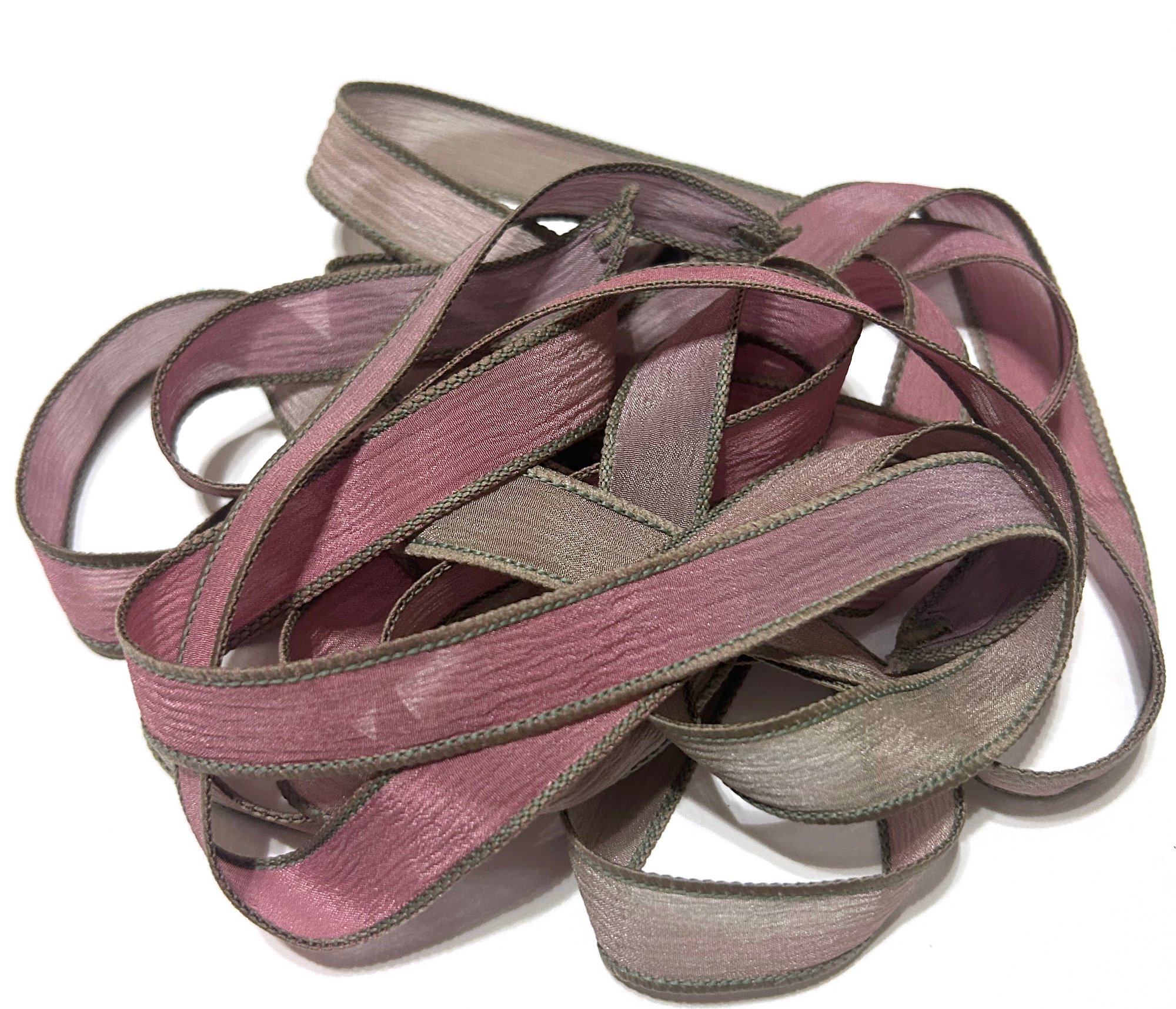 1PC. ROSEY TAUPE 42" hand dyed wrist wrap bracelet silk ribbon//Yoga wrist wrap bracelet ribbon