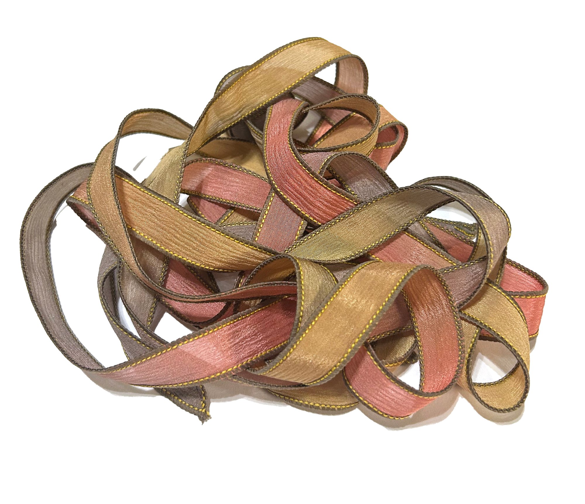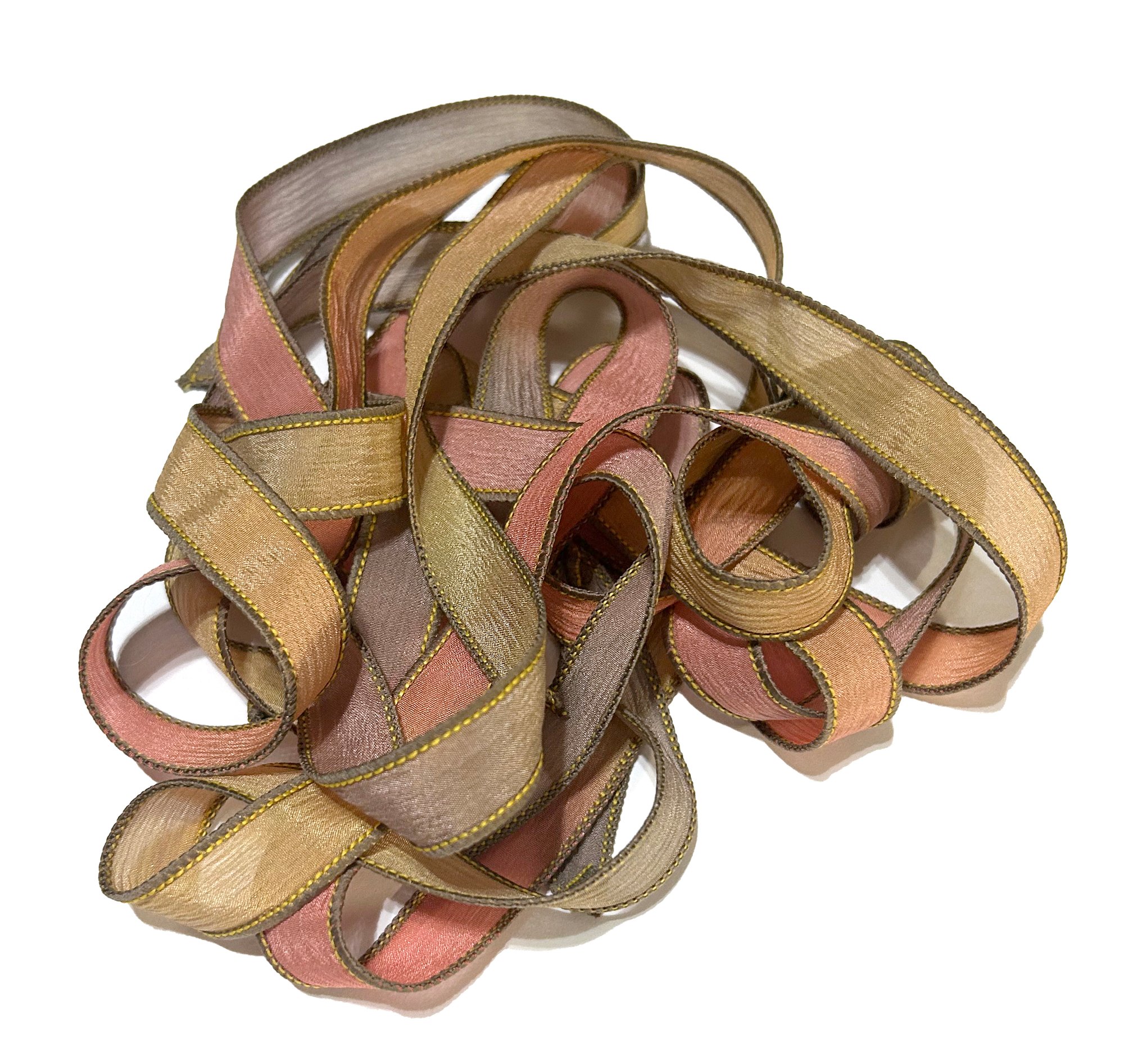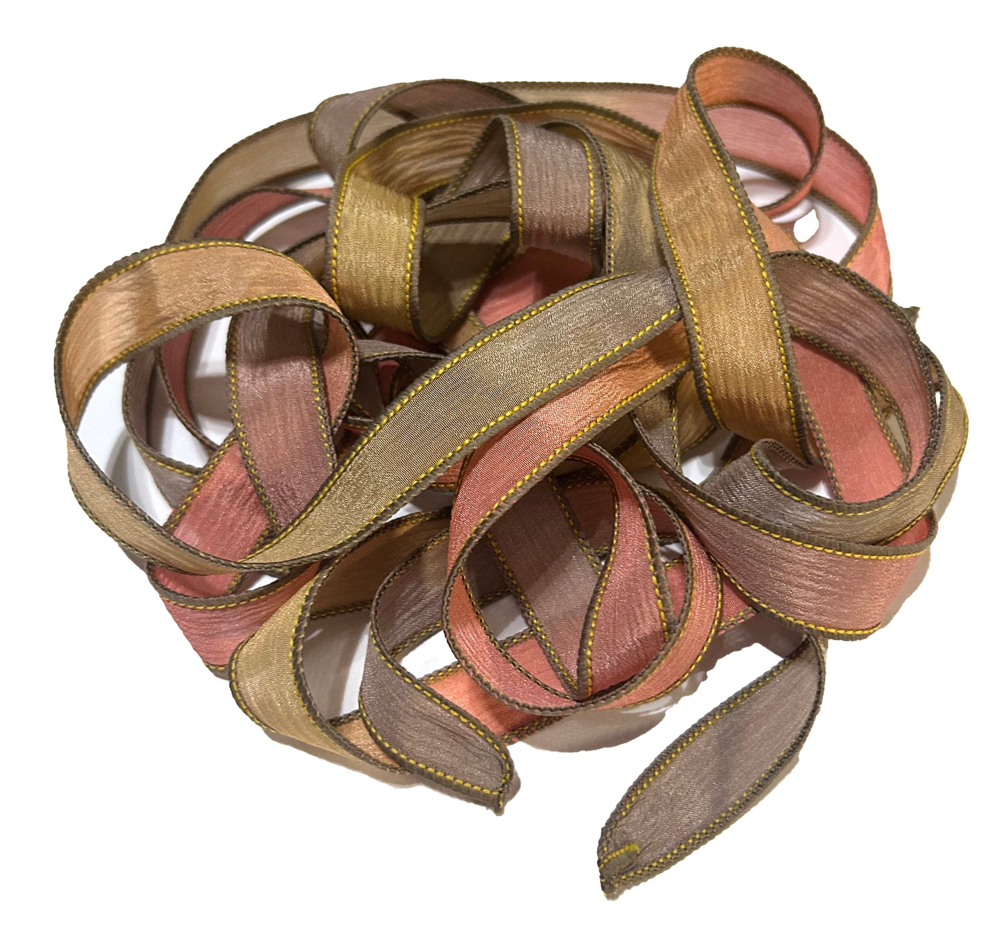 HAND DYED RIBBONS CAN APPEAR LIGHTER OR DARKER IN PERSON. SLIGHT VARIATIONS MAY OCCUR FROM ONE DYE LOT TO ANOTHER.