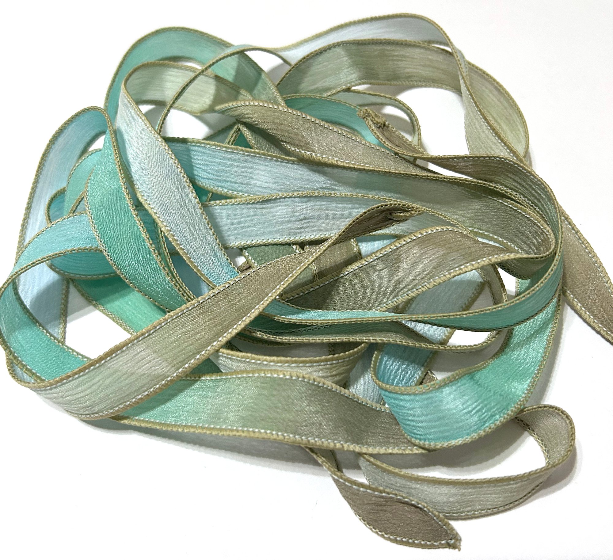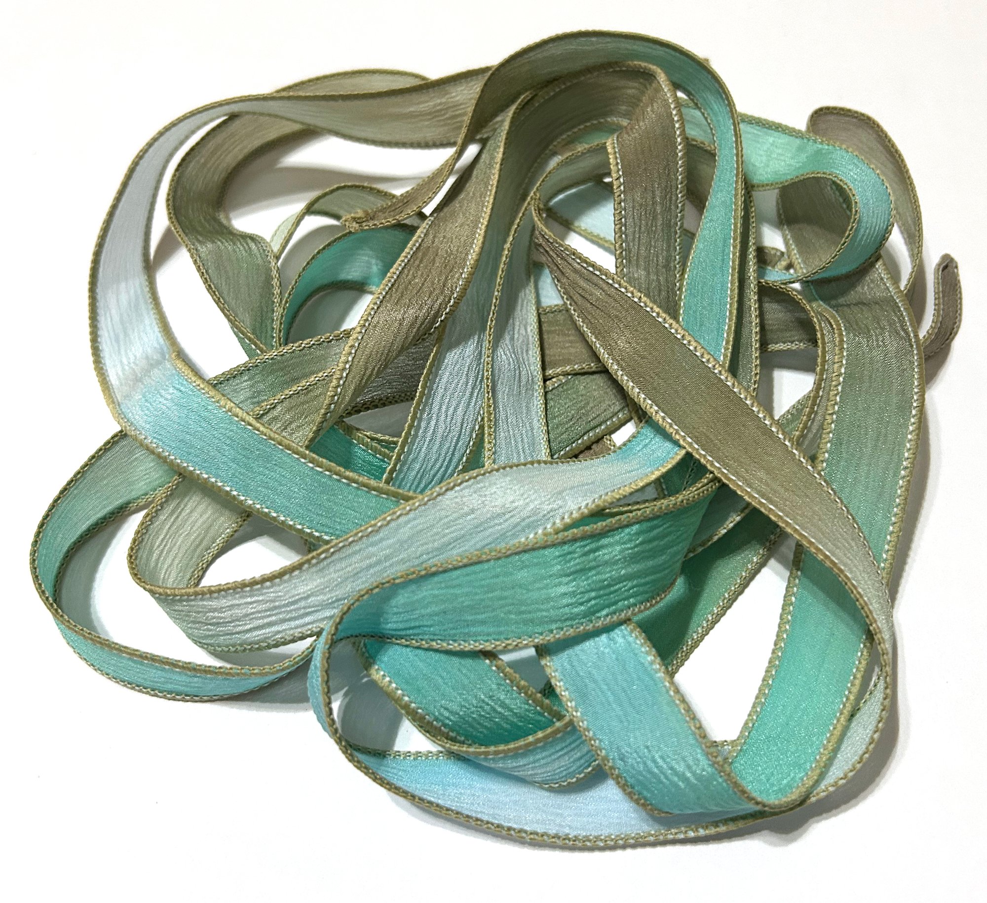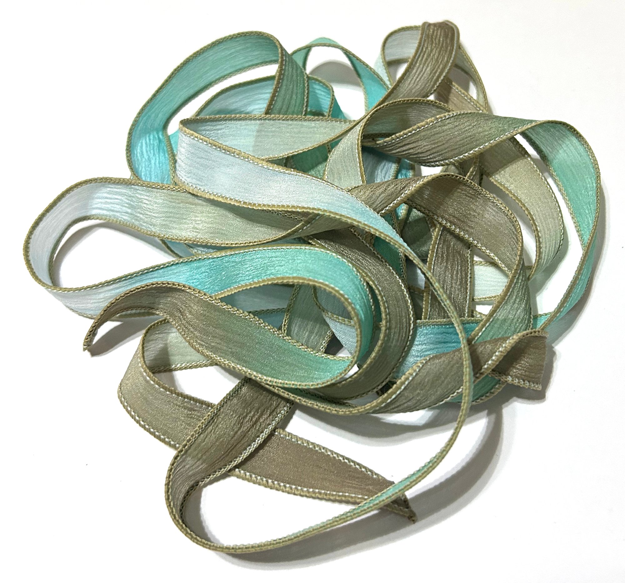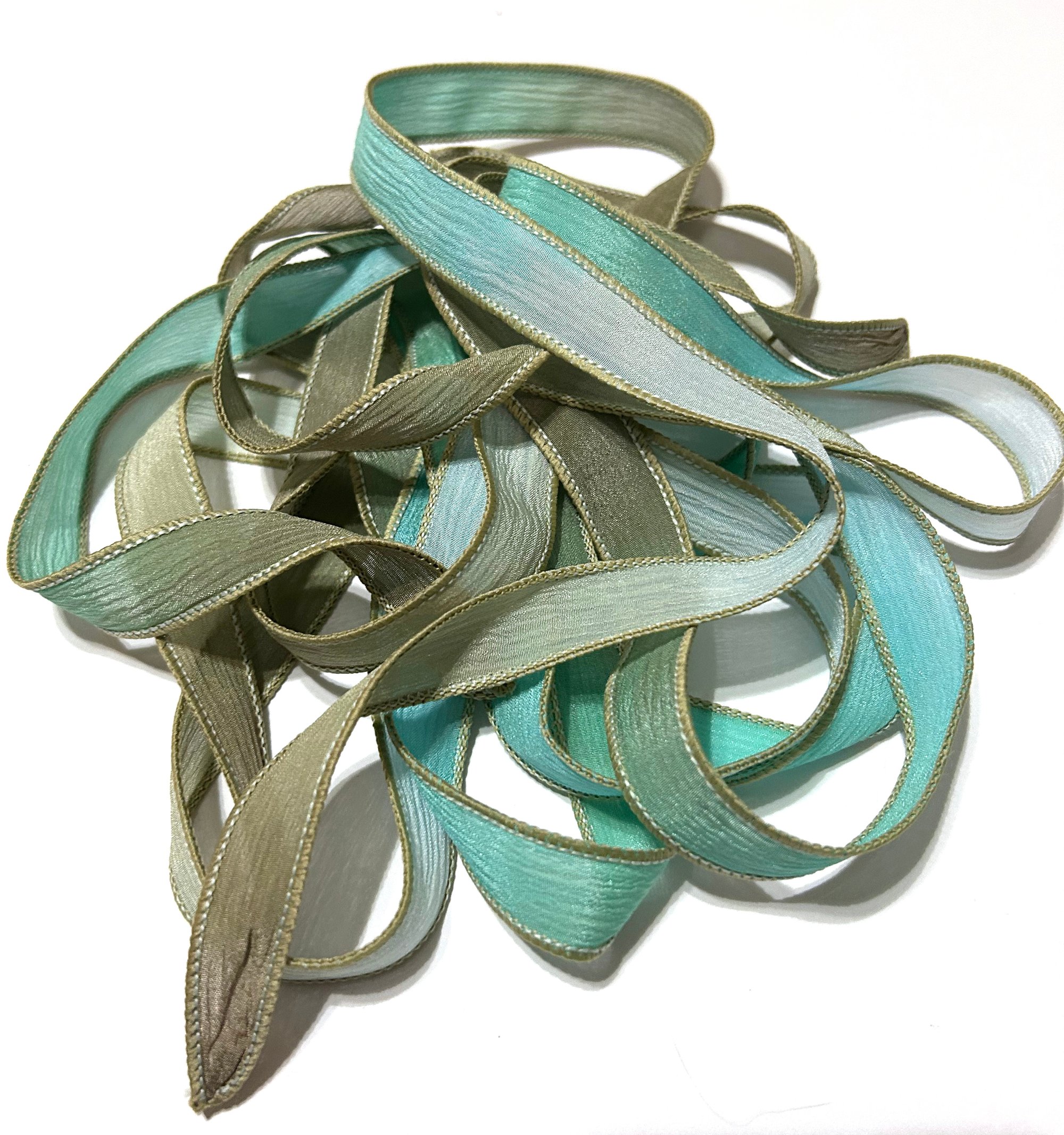 HAND DYED RIBBONS CAN APPEAR LIGHTER OR DARKER IN PERSON. SLIGHT VARIATIONS MAY OCCUR FROM ONE DYE LOT TO ANOTHER.