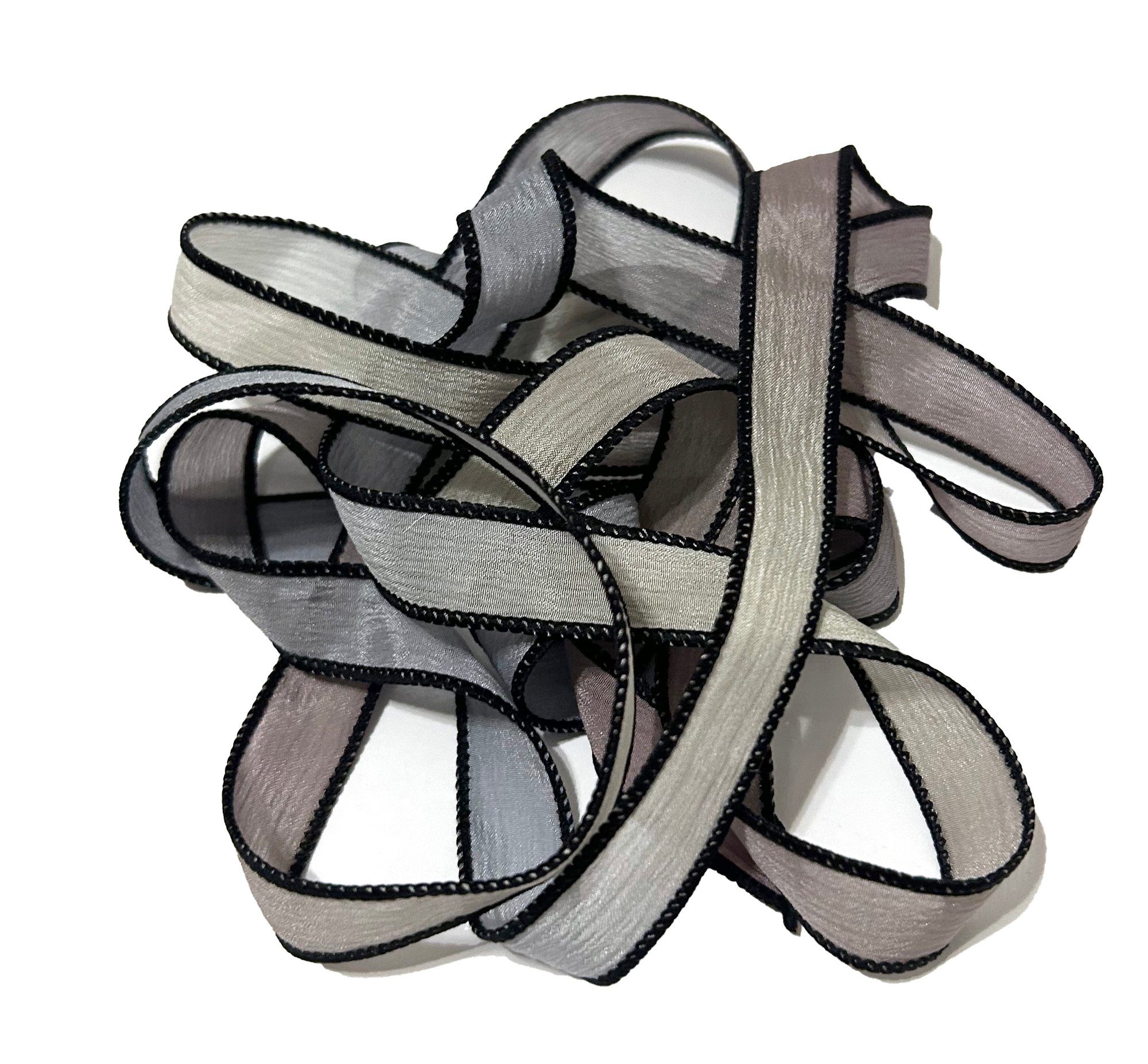 HAND DYED RIBBONS CAN APPEAR LIGHTER OR DARKER IN PERSON. SLIGHT VARIATIONS MAY OCCUR FROM ONE DYE LOT TO ANOTHER.