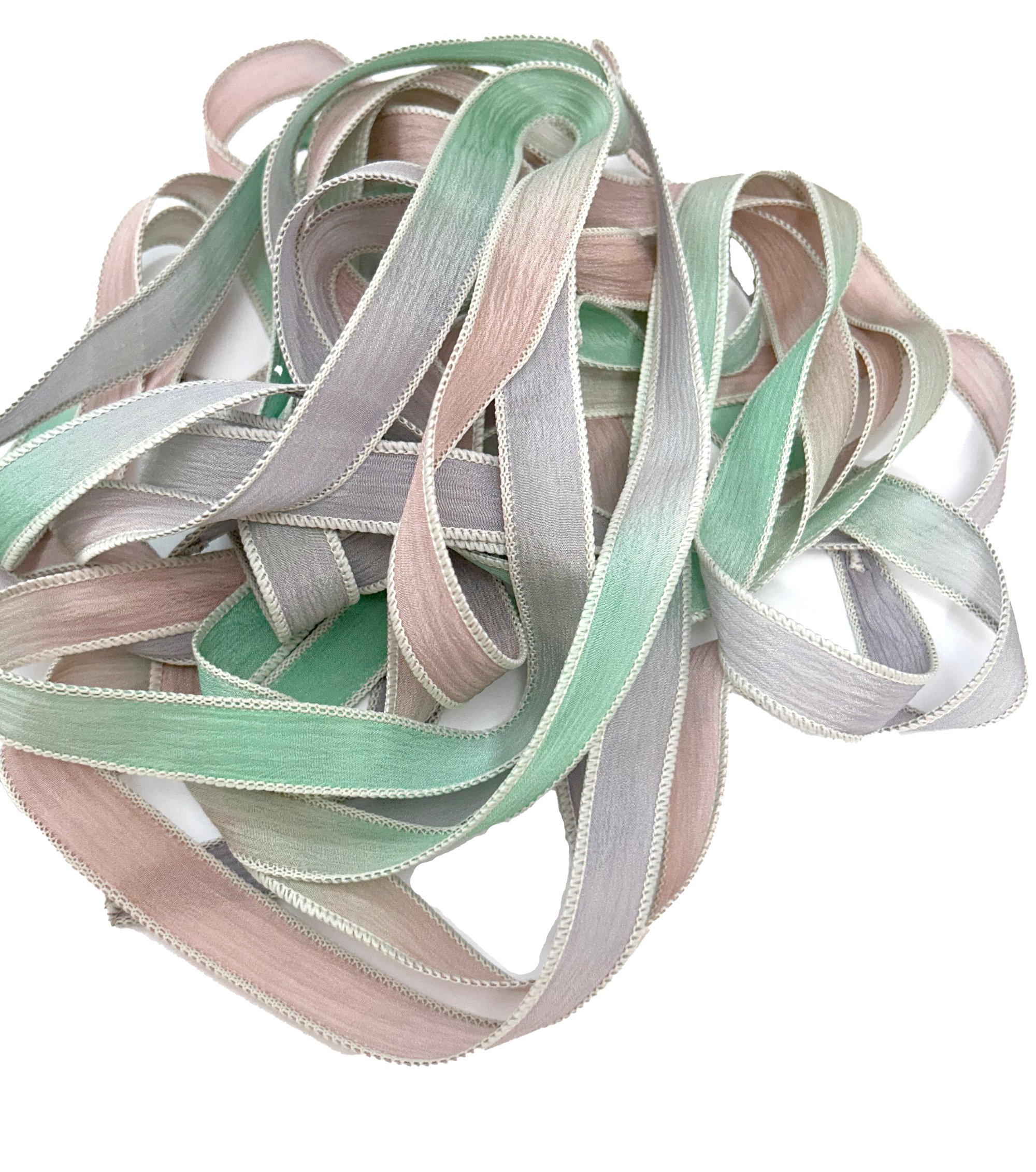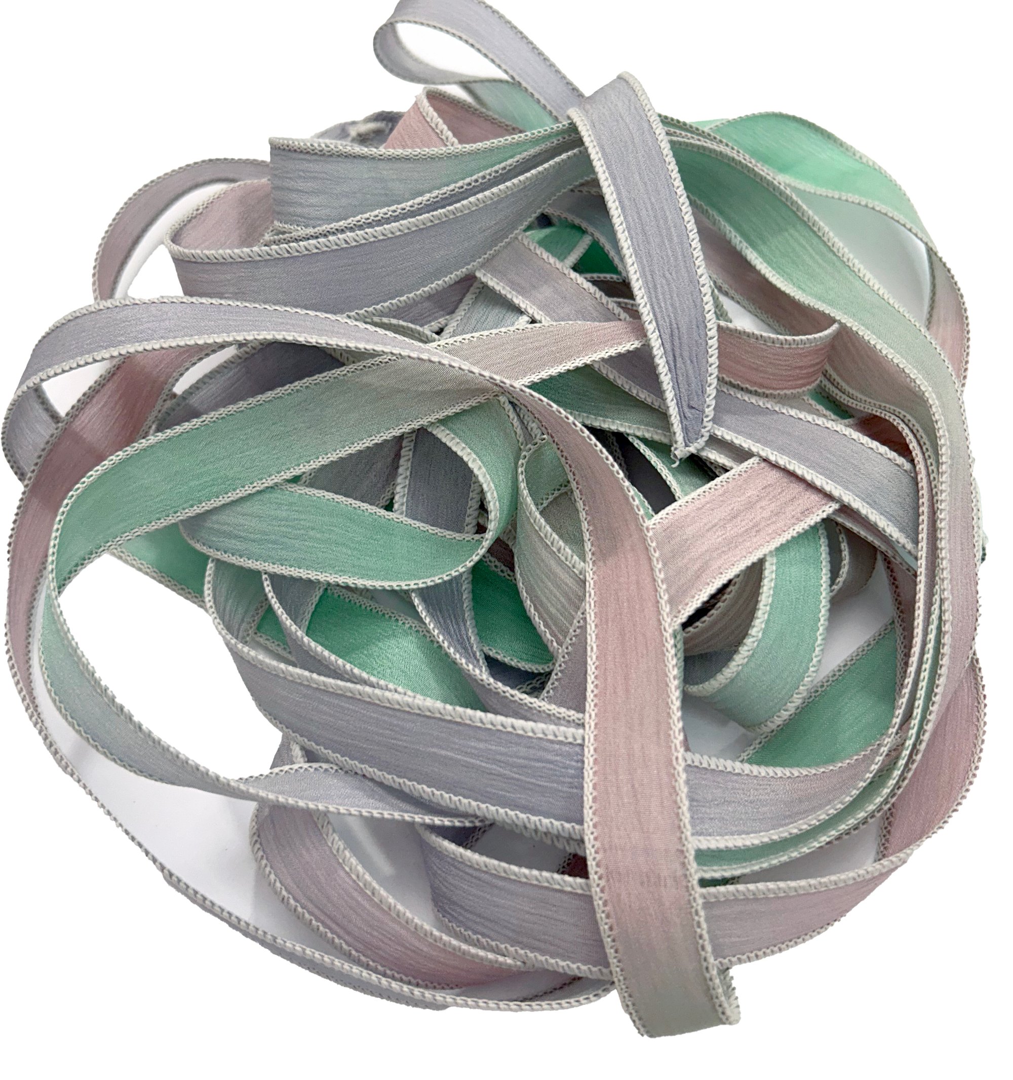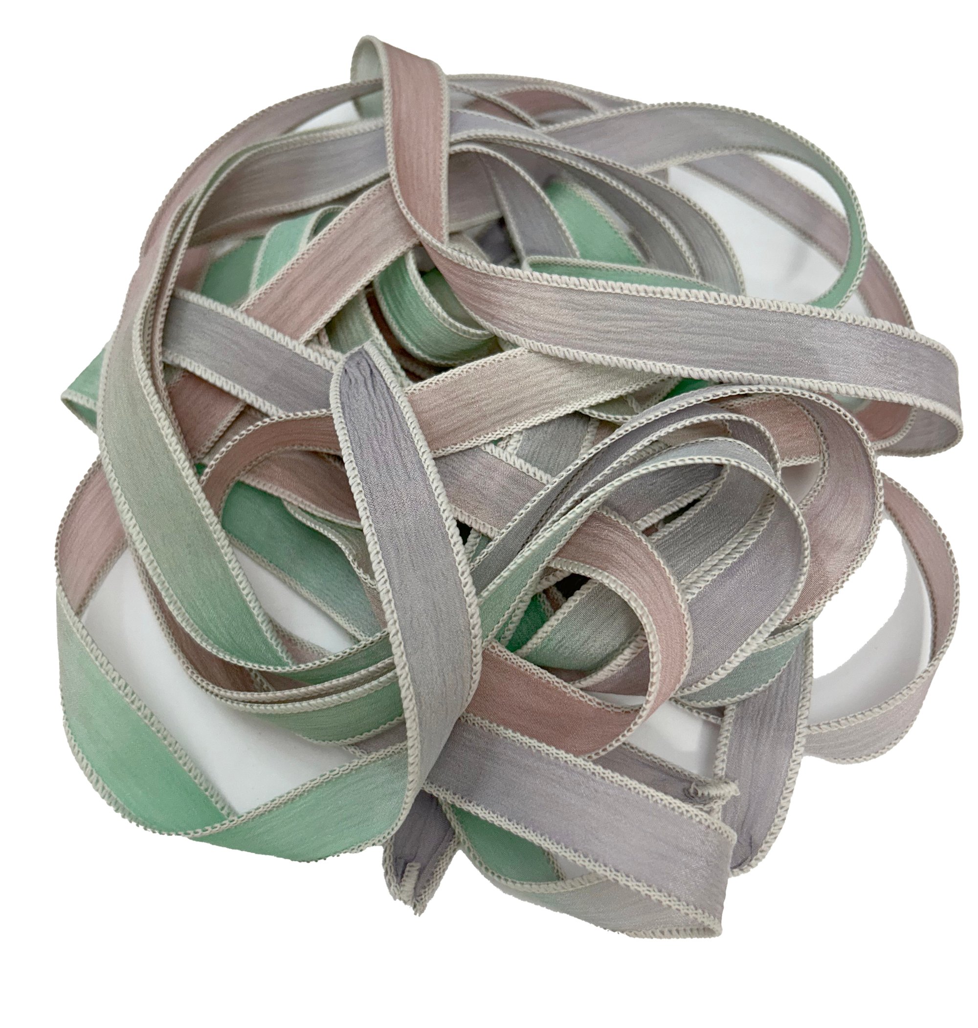 HAND DYED RIBBONS CAN APPEAR LIGHTER OR DARKER IN PERSON. SLIGHT VARIATIONS MAY OCCUR FROM ONE DYE LOT TO ANOTHER.