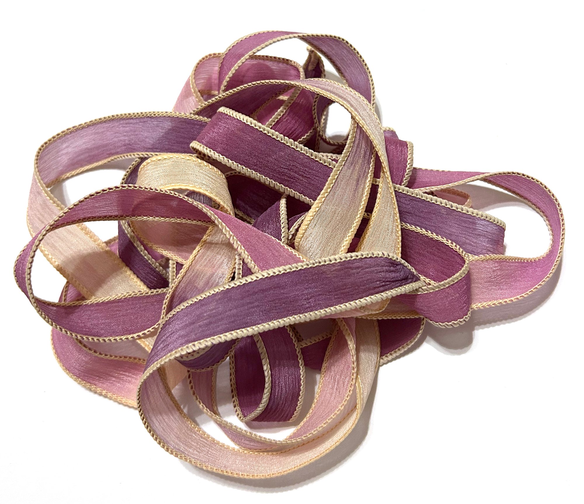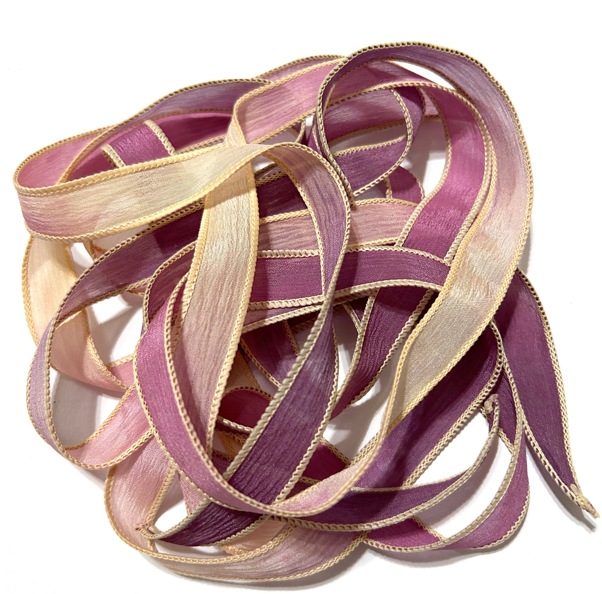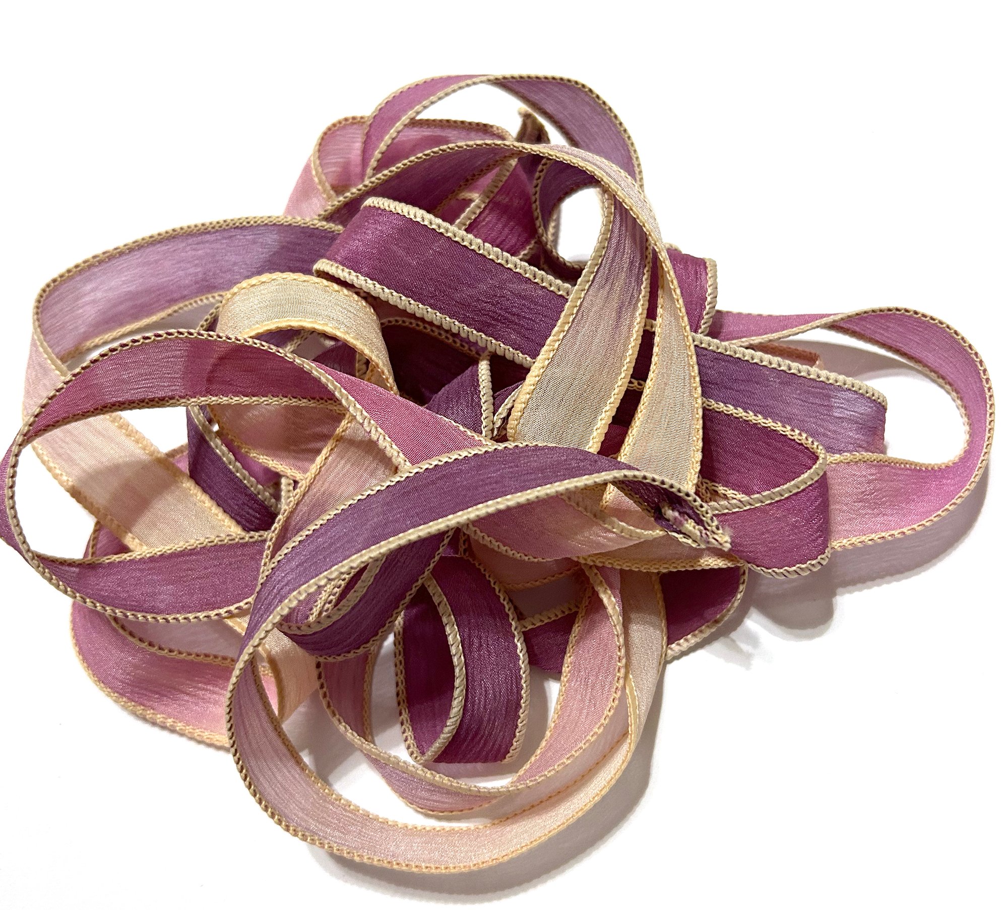 HAND DYED RIBBONS CAN APPEAR LIGHTER OR DARKER IN PERSON. SLIGHT VARIATIONS MAY OCCUR FROM ONE DYE LOT TO ANOTHER.
