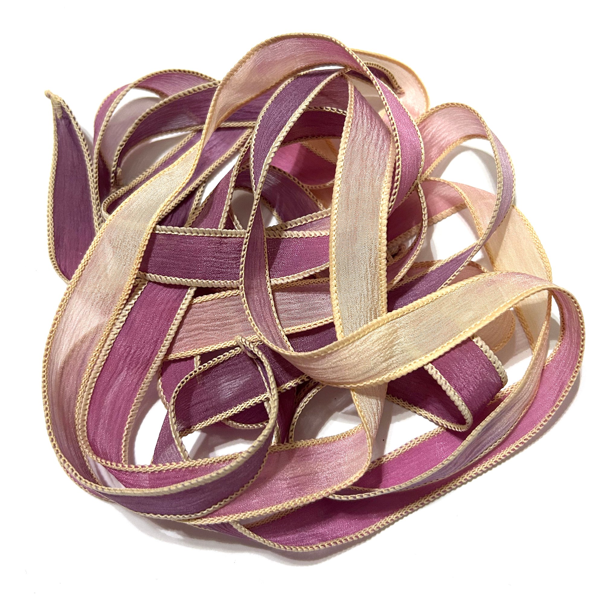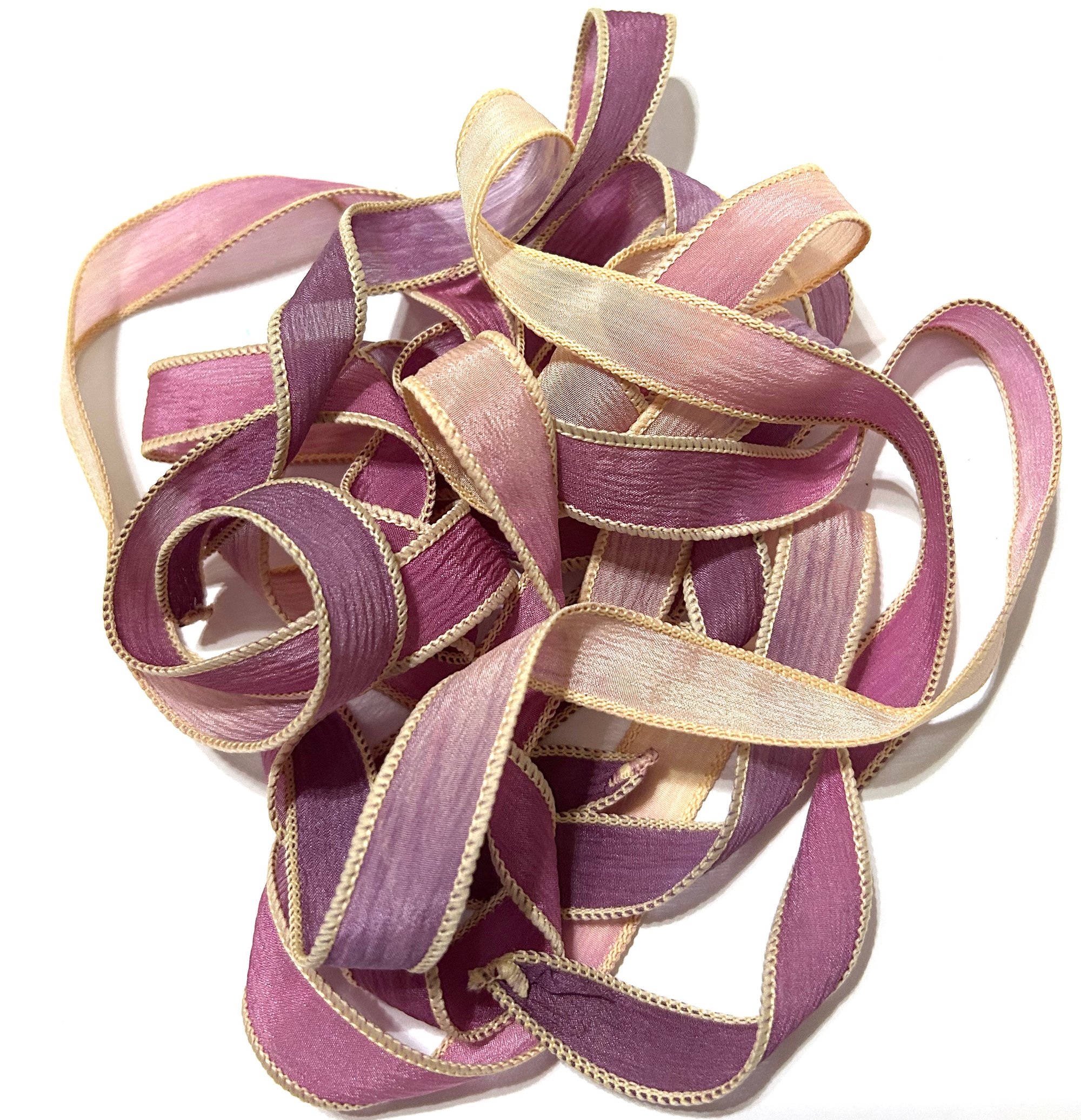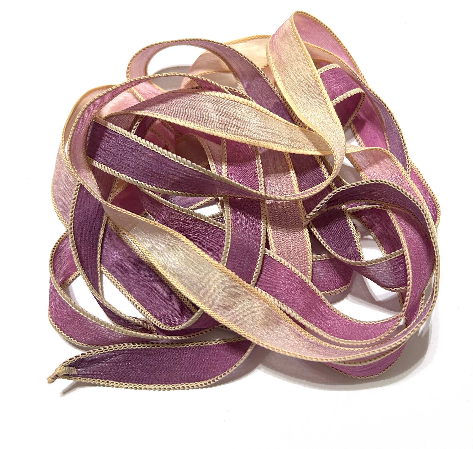 HAND DYED RIBBONS CAN APPEAR LIGHTER OR DARKER IN PERSON. SLIGHT VARIATIONS MAY OCCUR FROM ONE DYE LOT TO ANOTHER.