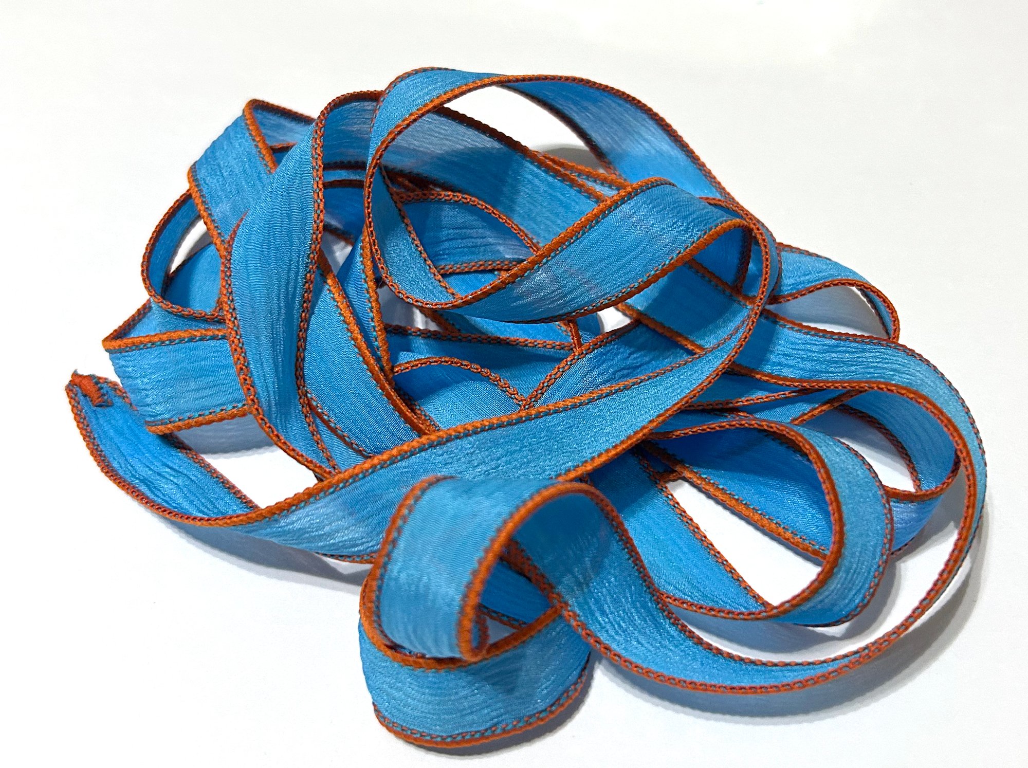 HAND DYED RIBBONS CAN APPEAR LIGHTER OR DARKER IN PERSON. SLIGHT VARIATIONS MAY OCCUR FROM ONE DYE LOT TO ANOTHER.