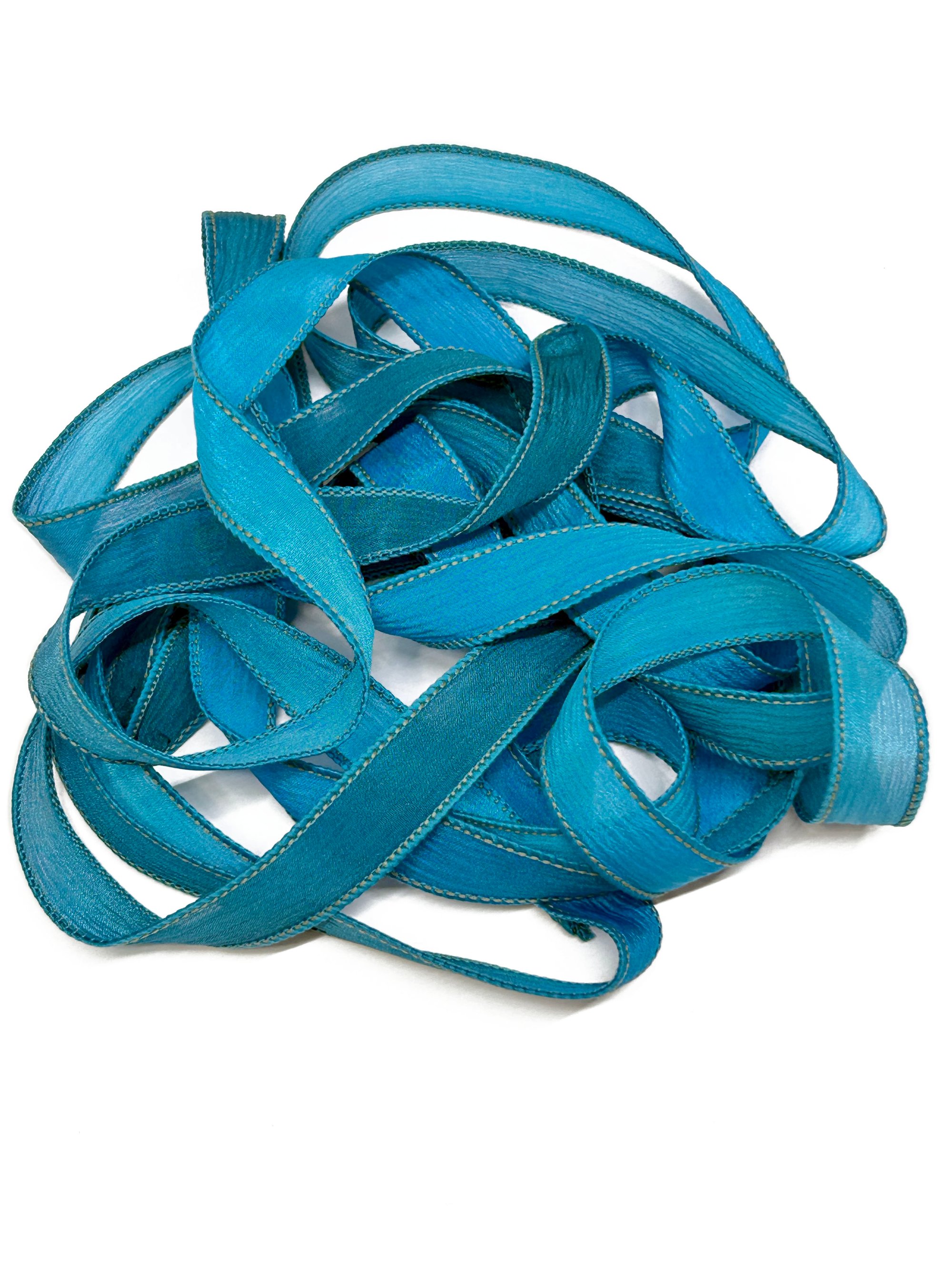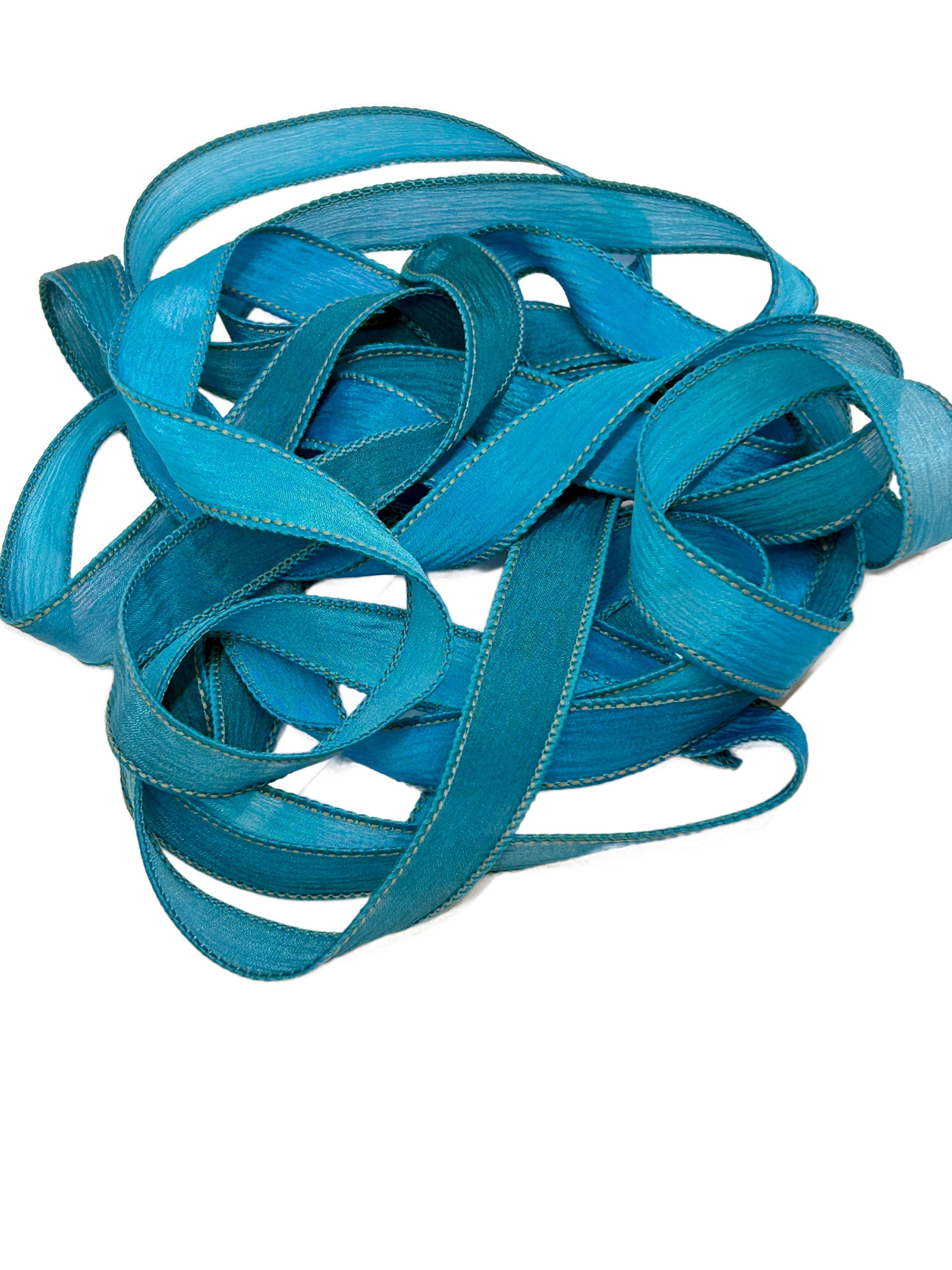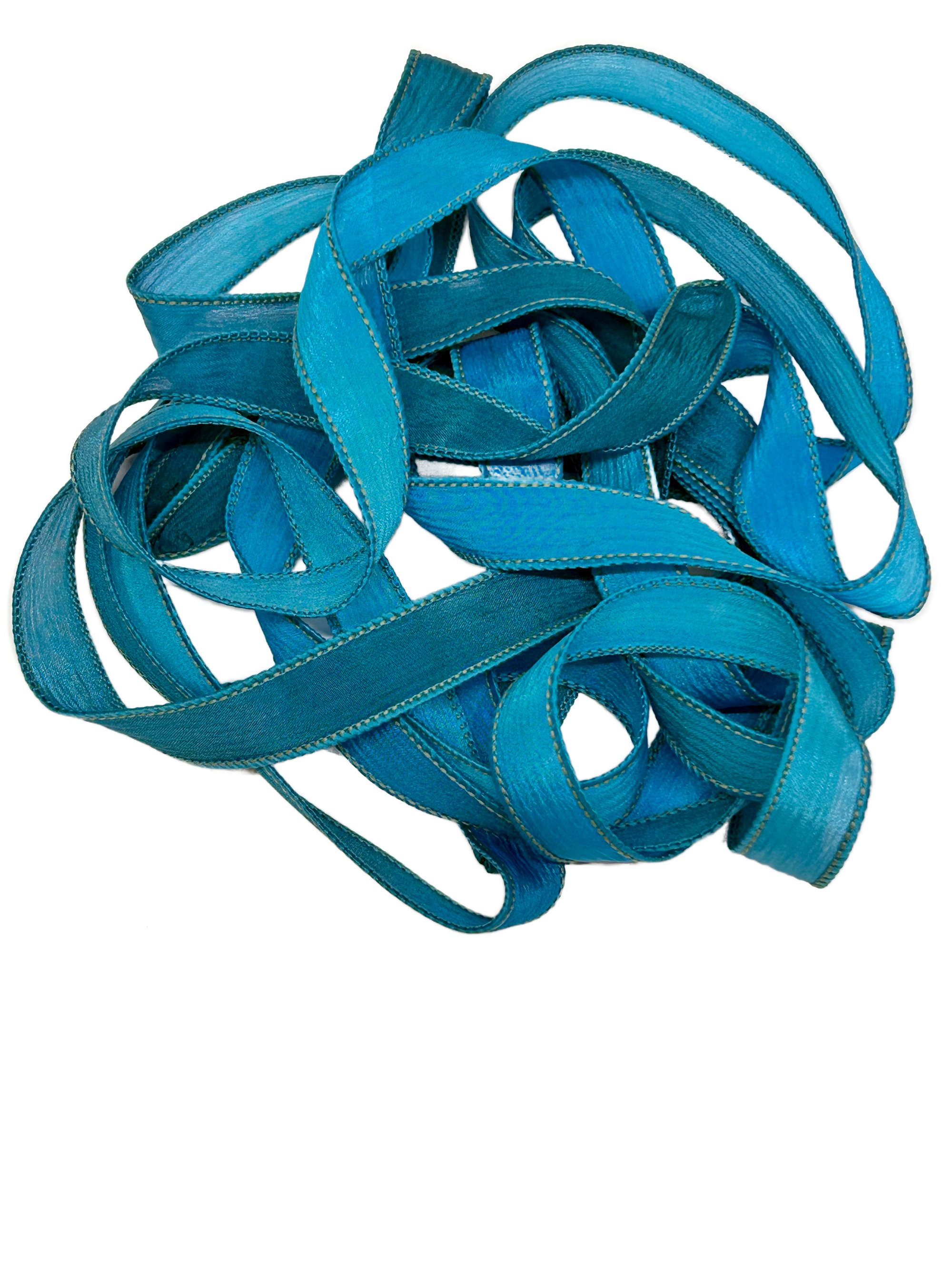 1PC. POOLSIDE 42" hand dyed wrist wrap bracelet silk ribbon//Yoga wrist wrap bracelet ribbon
