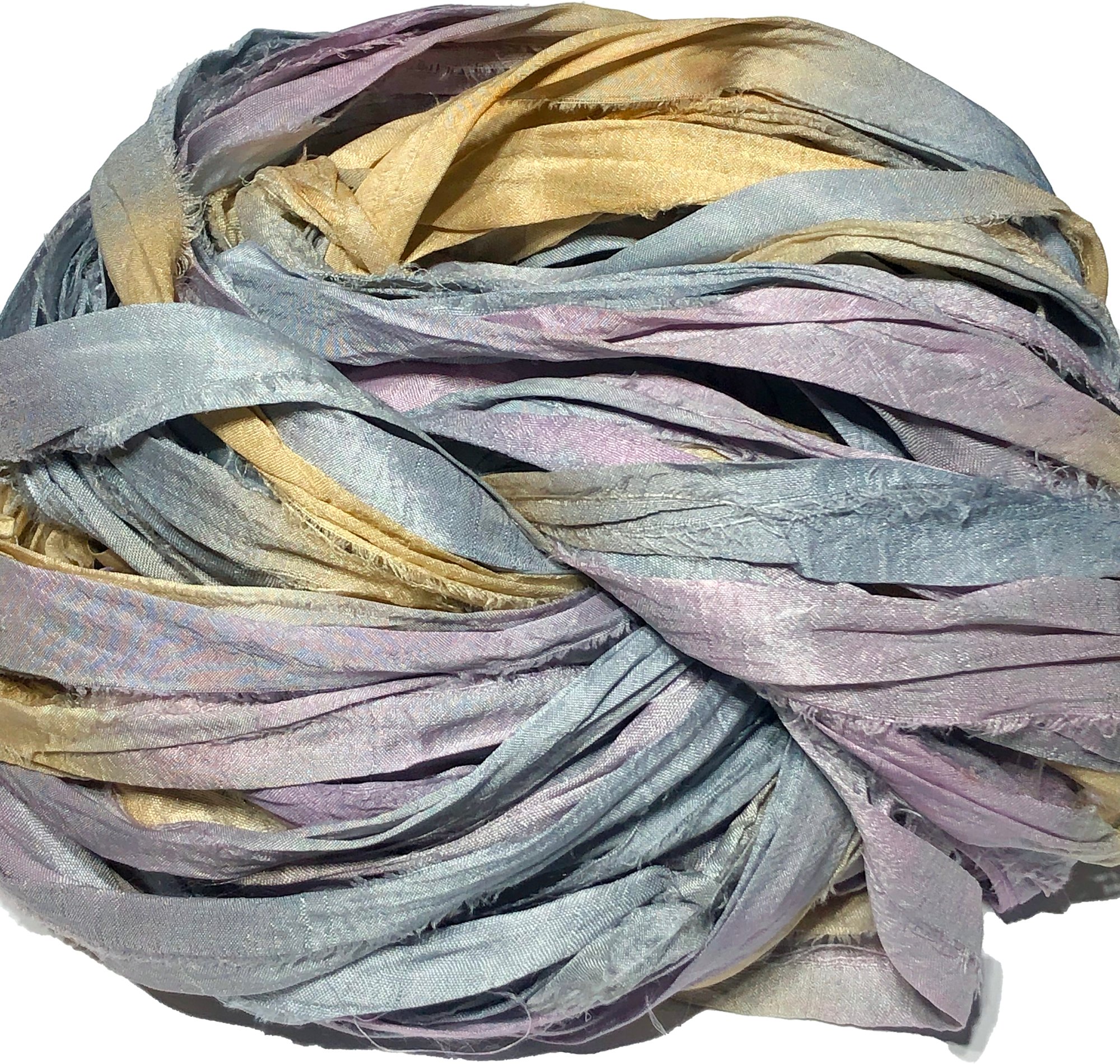***IMPORTANT****OUR SARI SILK RIBBON CAN AND WILL VARY FROM ONE DYE LOT TO ANOTHER. THIS IS DUE TO THE THE MANY TYPES OF SILK, AS WELL AS THE WEIGHT OF SILK USED TO CREATE THE SILK BUNDLES . SARI SILK BUNDLES ARE MADE BY OUR FRIENDS IN INDIA. IT IS THE MANUFACTURER THAT DETERMINES THE SILK TYPE, SILK WEIGHT, STRIP WIDTH, AND STRIP LENGTH, WHEN PRODUCING THE RIBBON HANKS THEY MANUFACTURE.