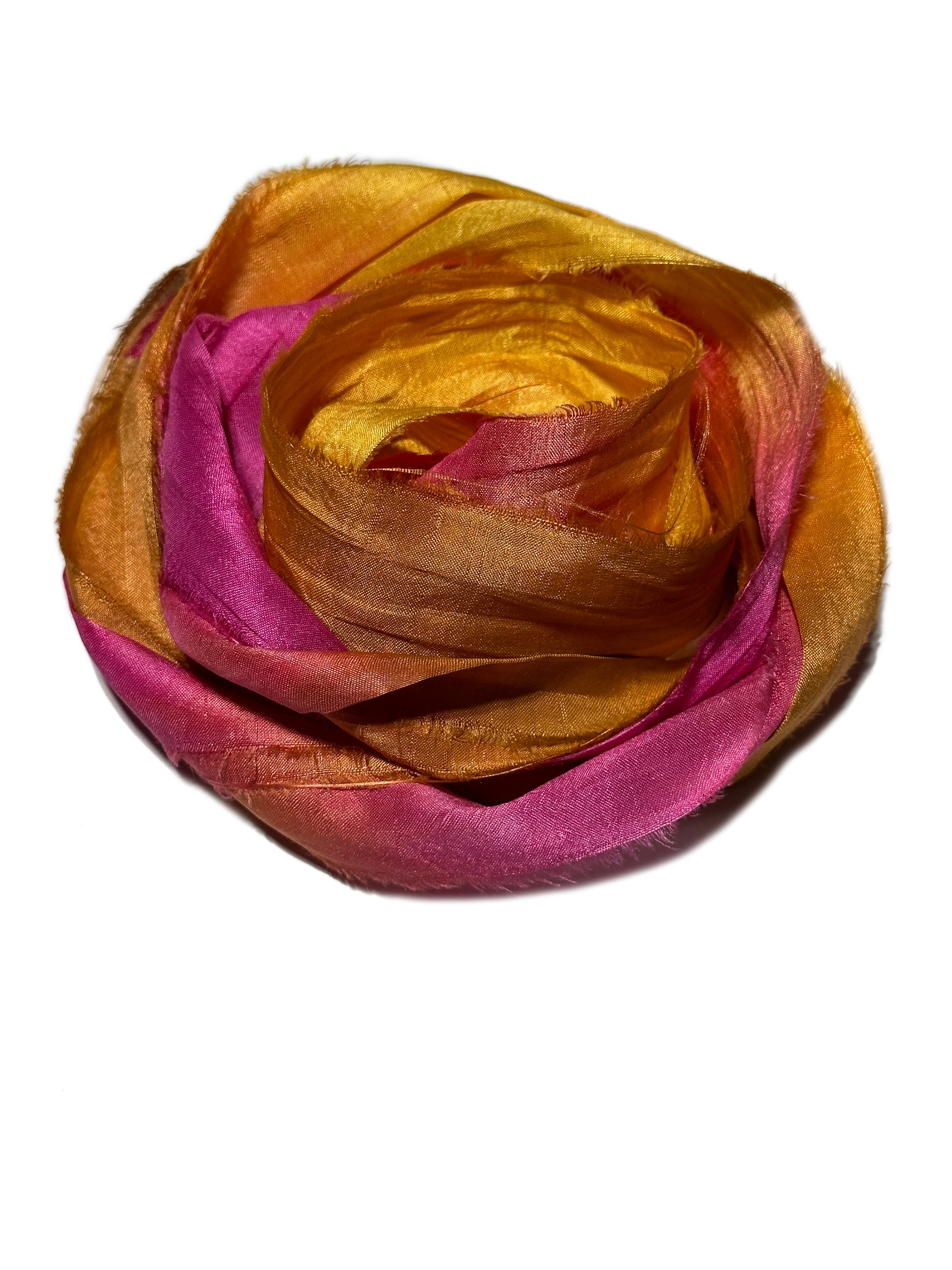 Ready To Ship! 10YD. DRAGON FRUIT HAND DYED SARI SILK RIBBON BY COLOR BURST SILK