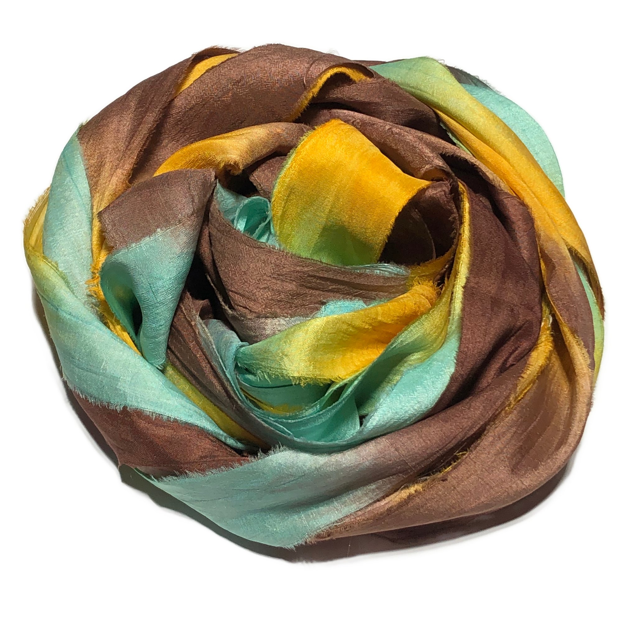 10YD. GOLDEN HARVEST HAND DYED SARI SILK RIBBON BY COLOR BURST SILK