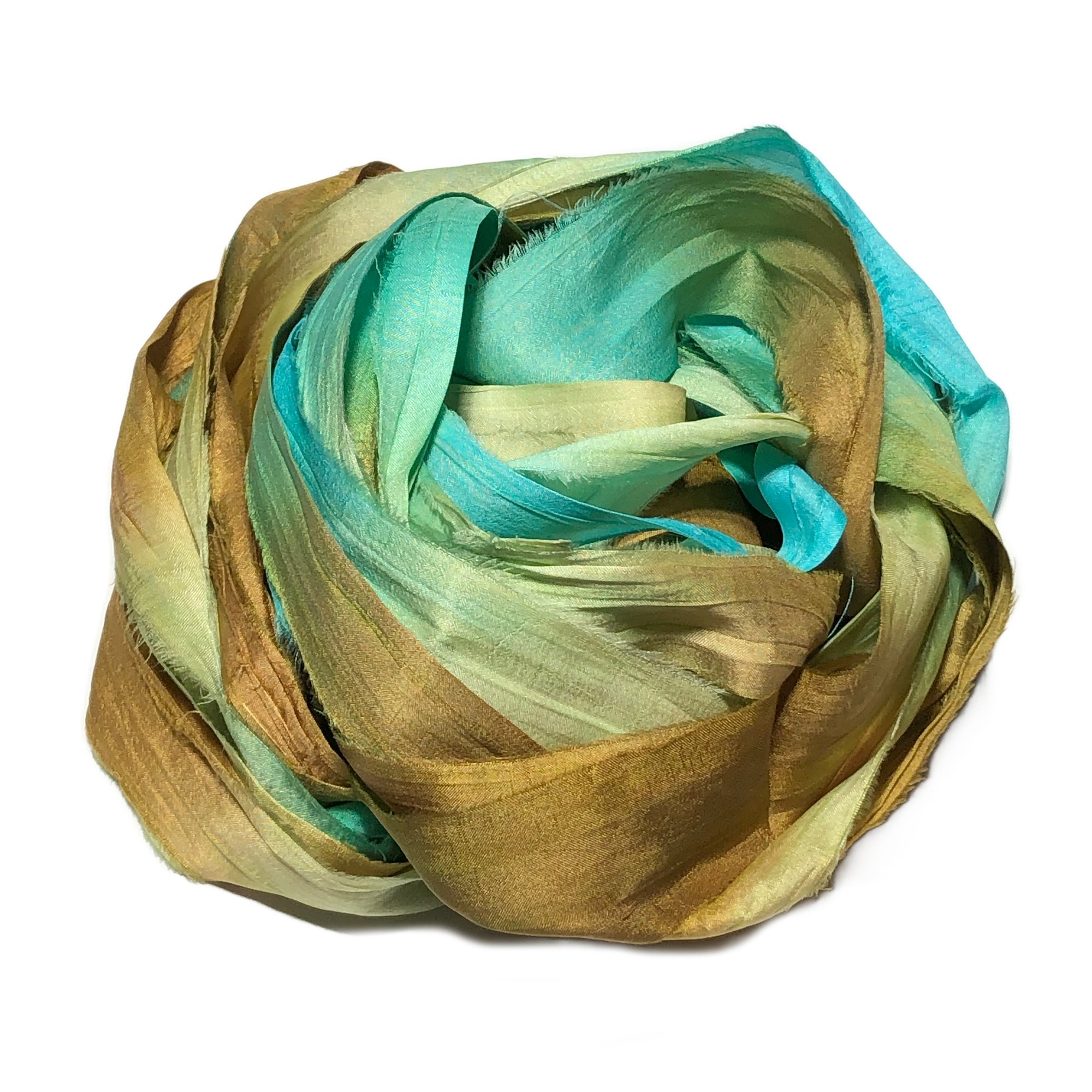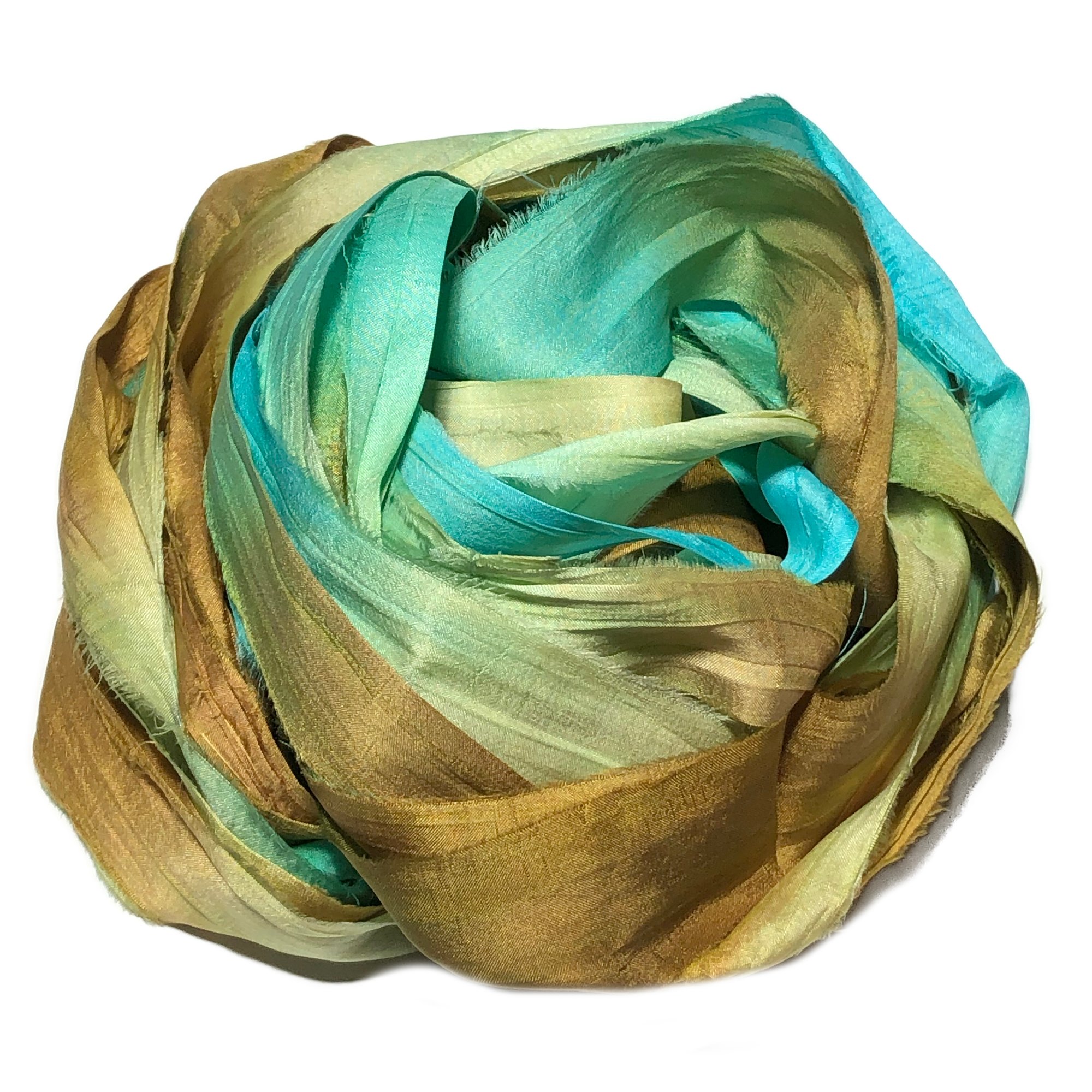 Ready To Ship! 10YD. FOOLS GOLD HAND DYED SARI SILK RIBBON BY COLOR BURST SILK