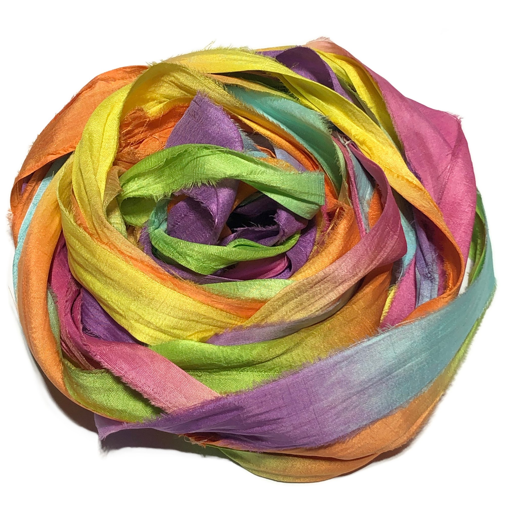 10YD. HIPPIE UNICORN HAND DYED SARI SILK RIBBON BY COLOR BURST SILK