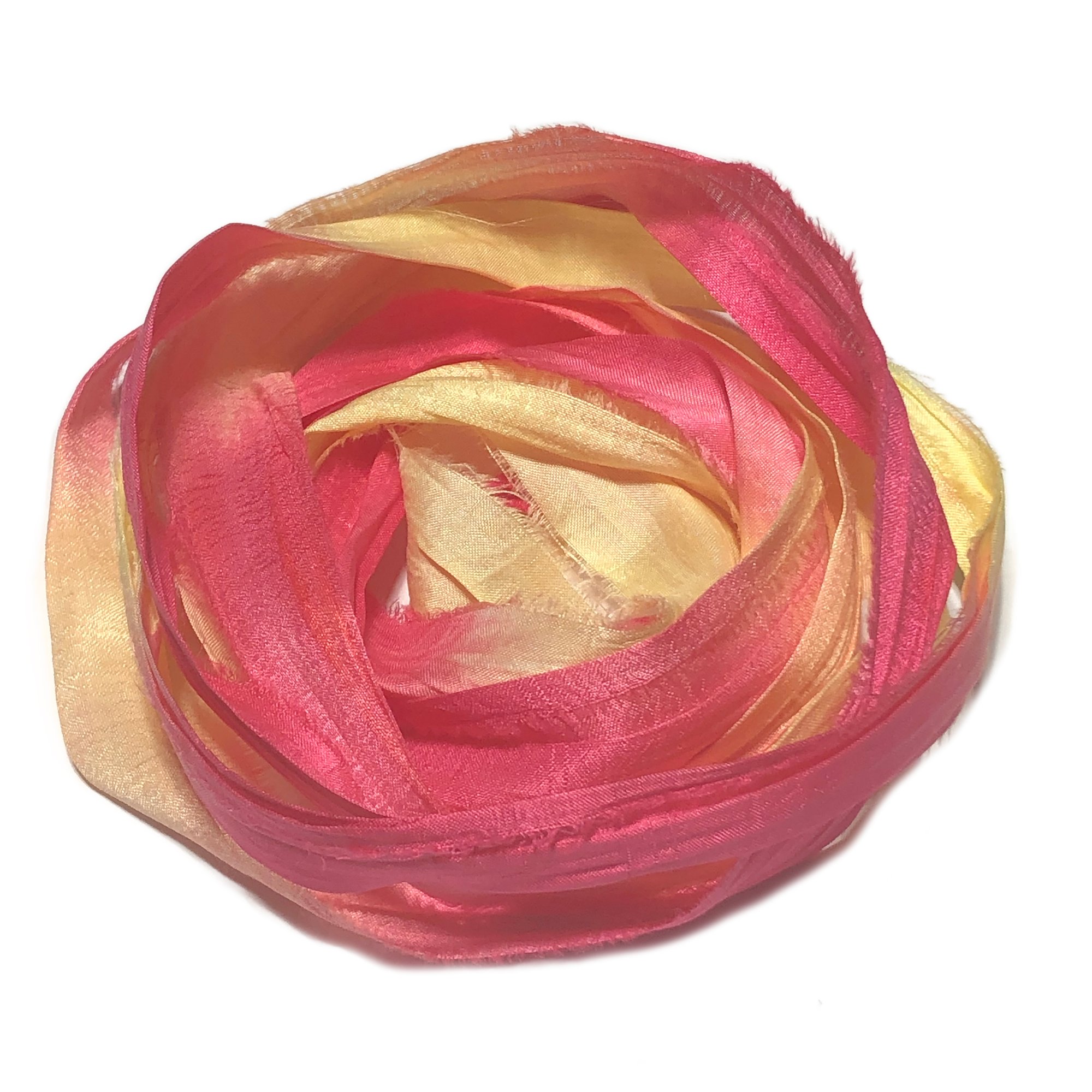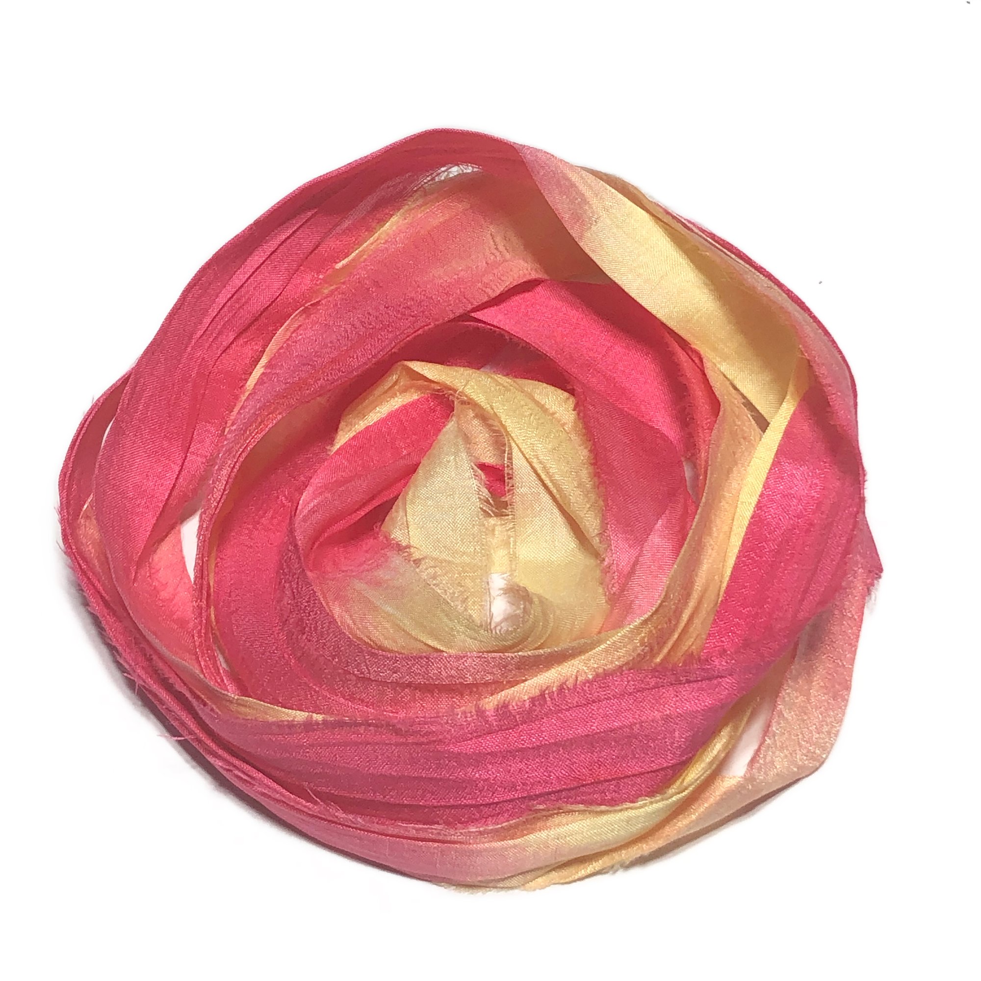 Ready To Ship! 10YD. LEMONADE STAND HAND DYED SARI SILK RIBBON BY COLOR BURST SILK