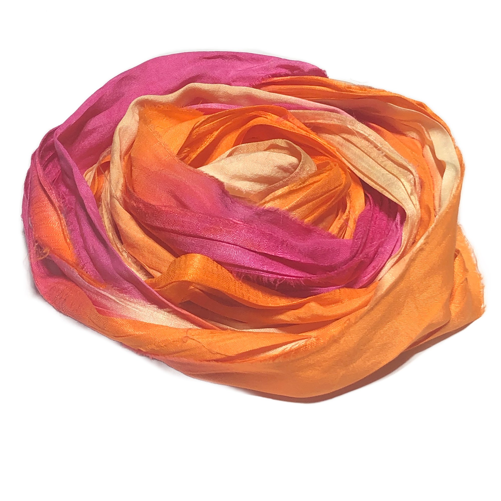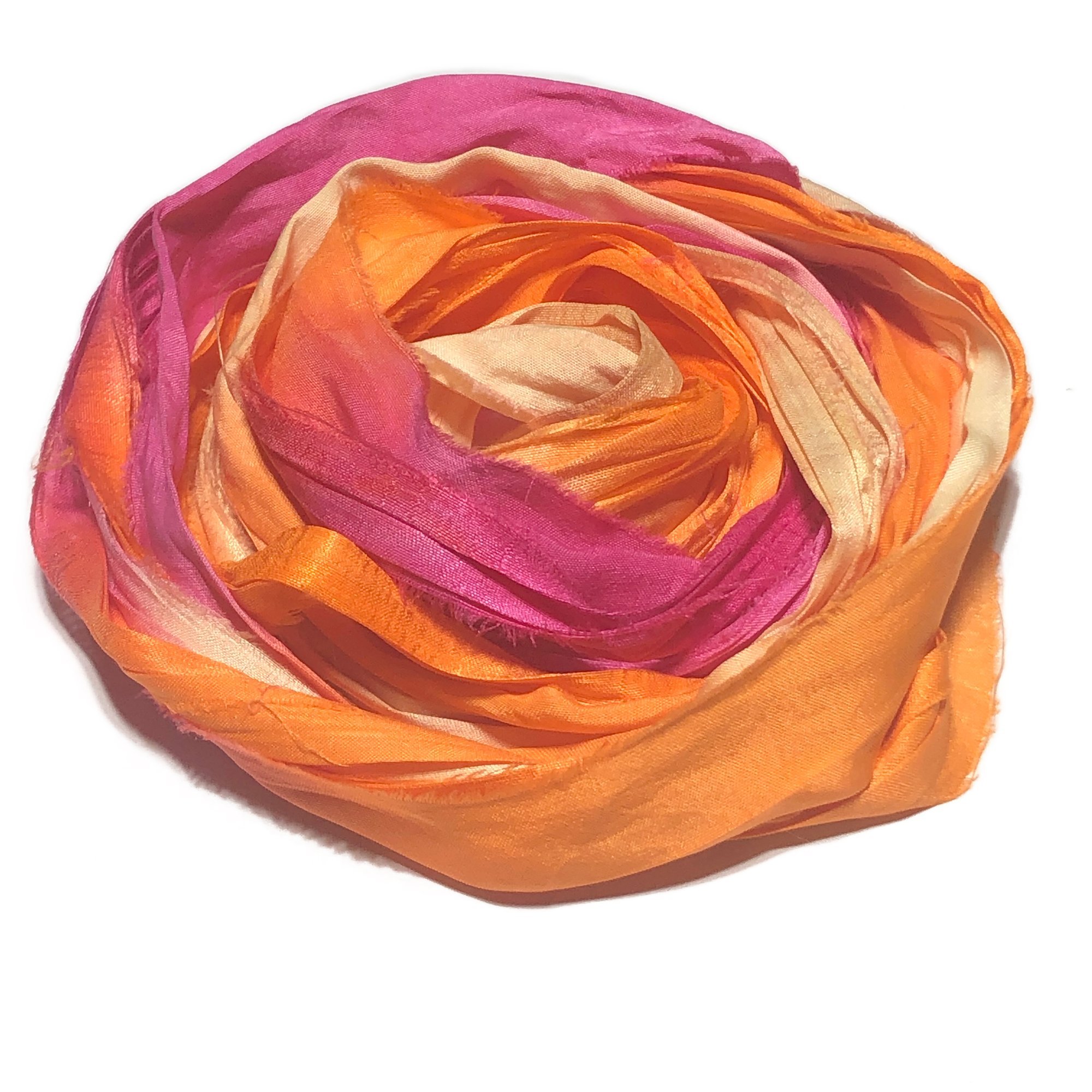 Ready To Ship! 10YD. MELON SHERBET HAND DYED SARI SILK RIBBON BY COLOR BURST SILK