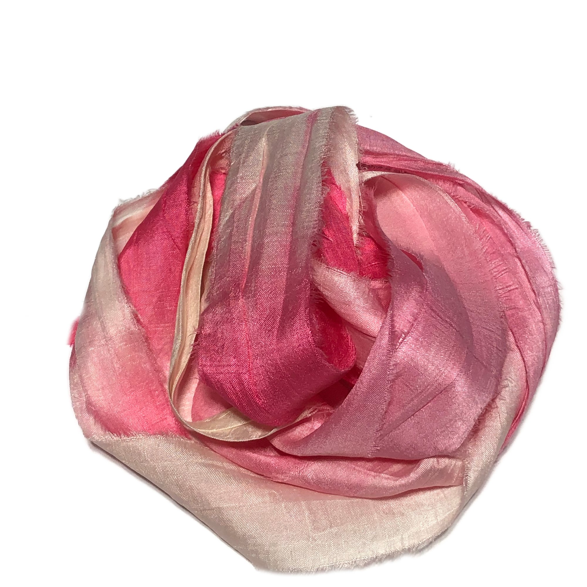 Ready To Ship! 10YD. BE MY VALENTINE HAND DYED SARI SILK RIBBON BY COLOR BURST SILK