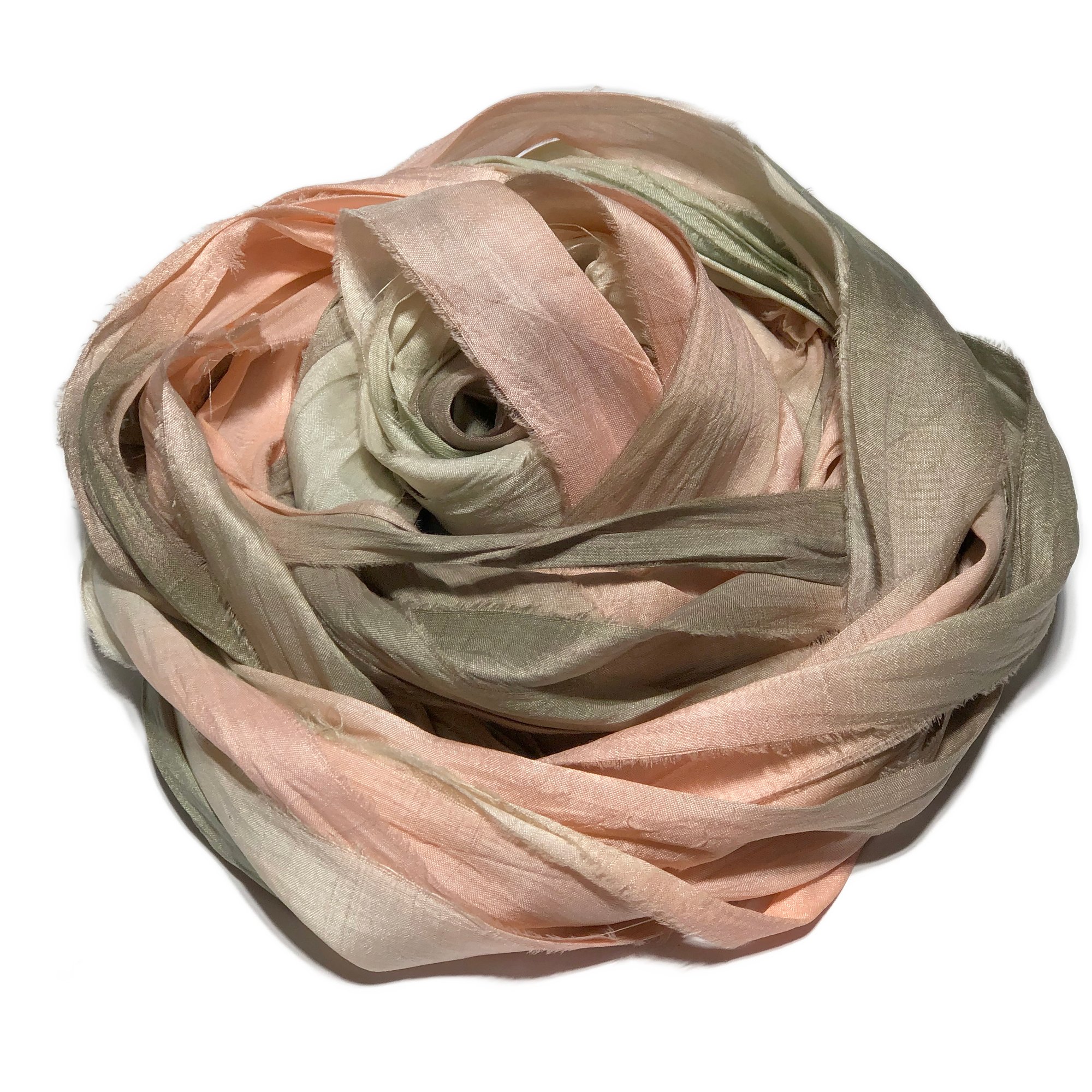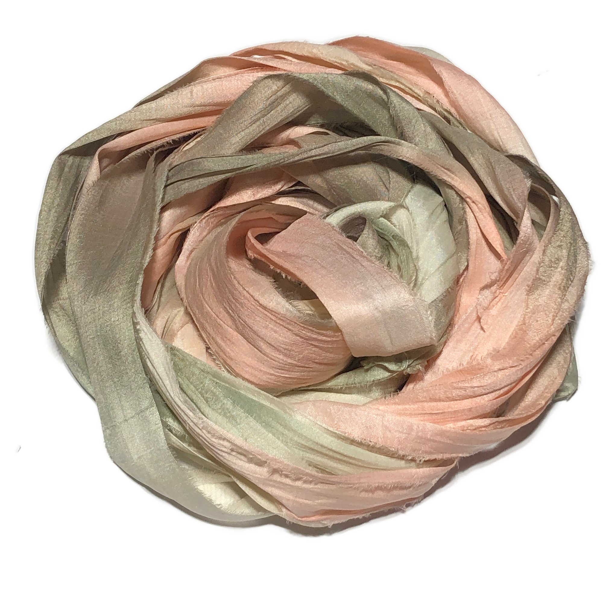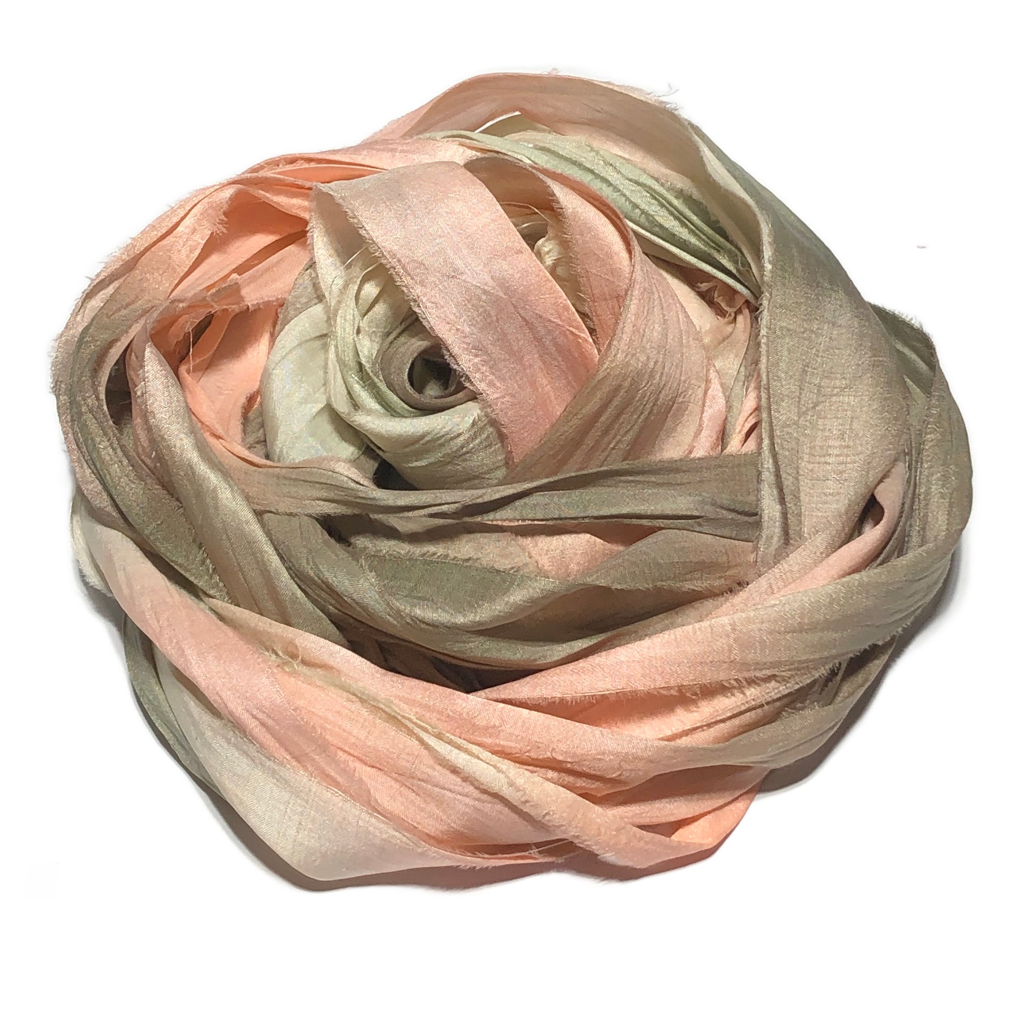 Ready To Ship! 10YD. PEACH TREE HAND DYED SARI SILK RIBBON BY COLOR BURST SILK