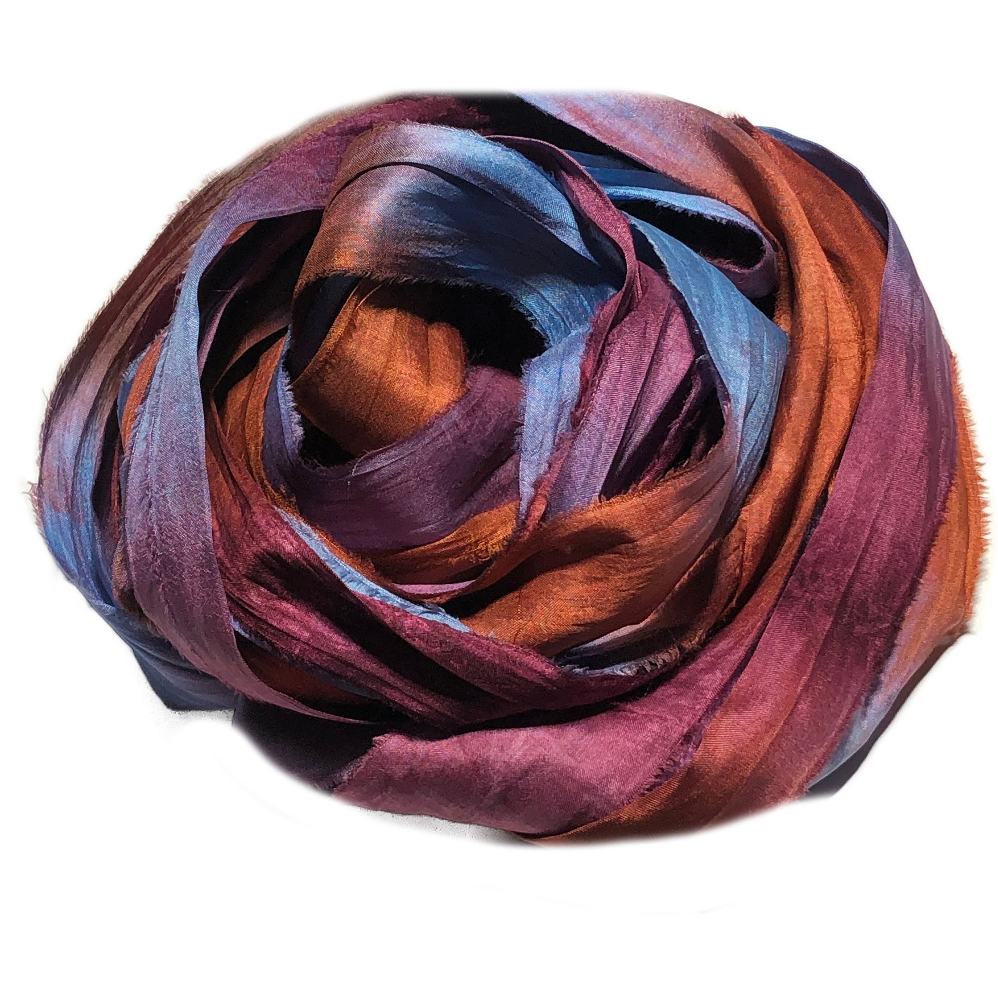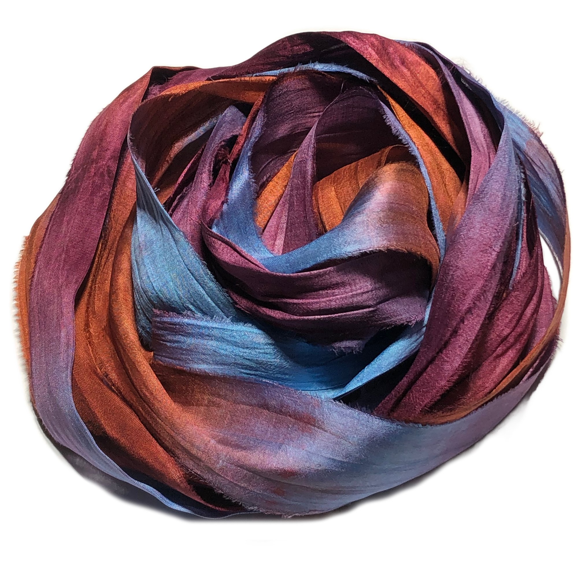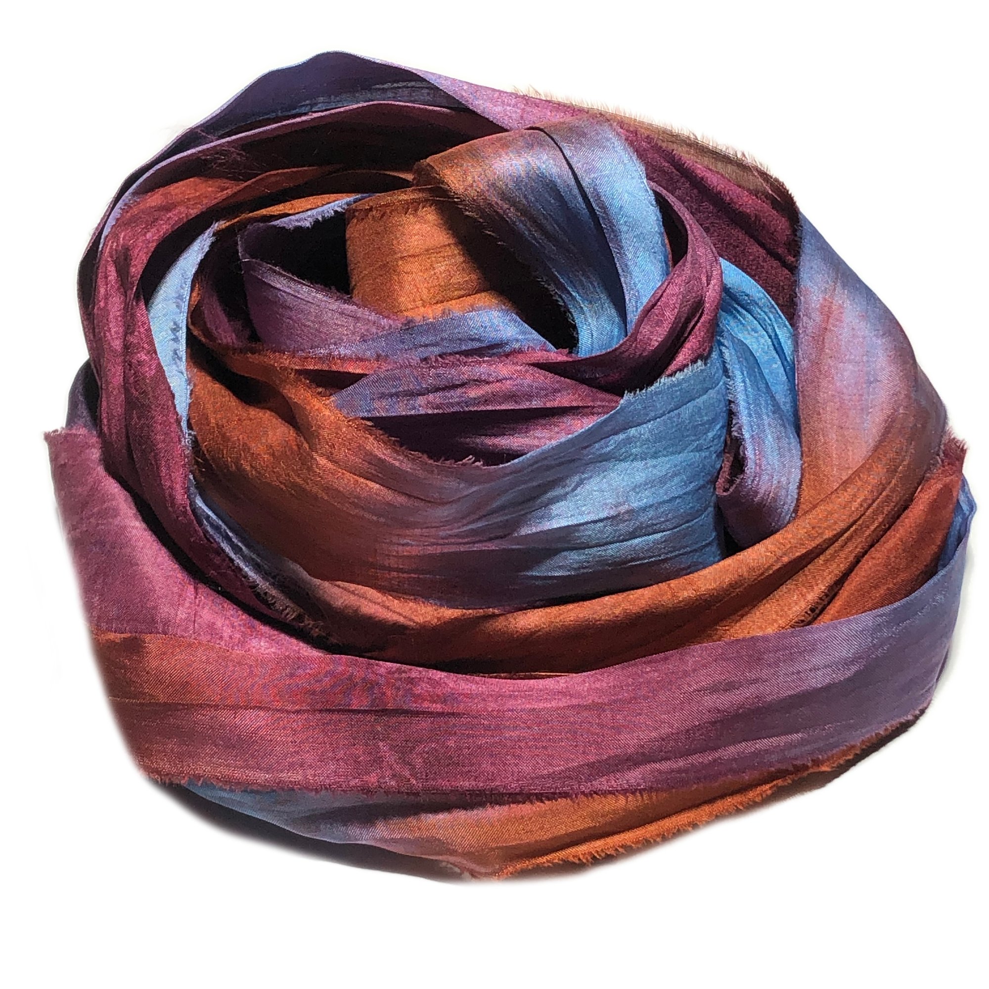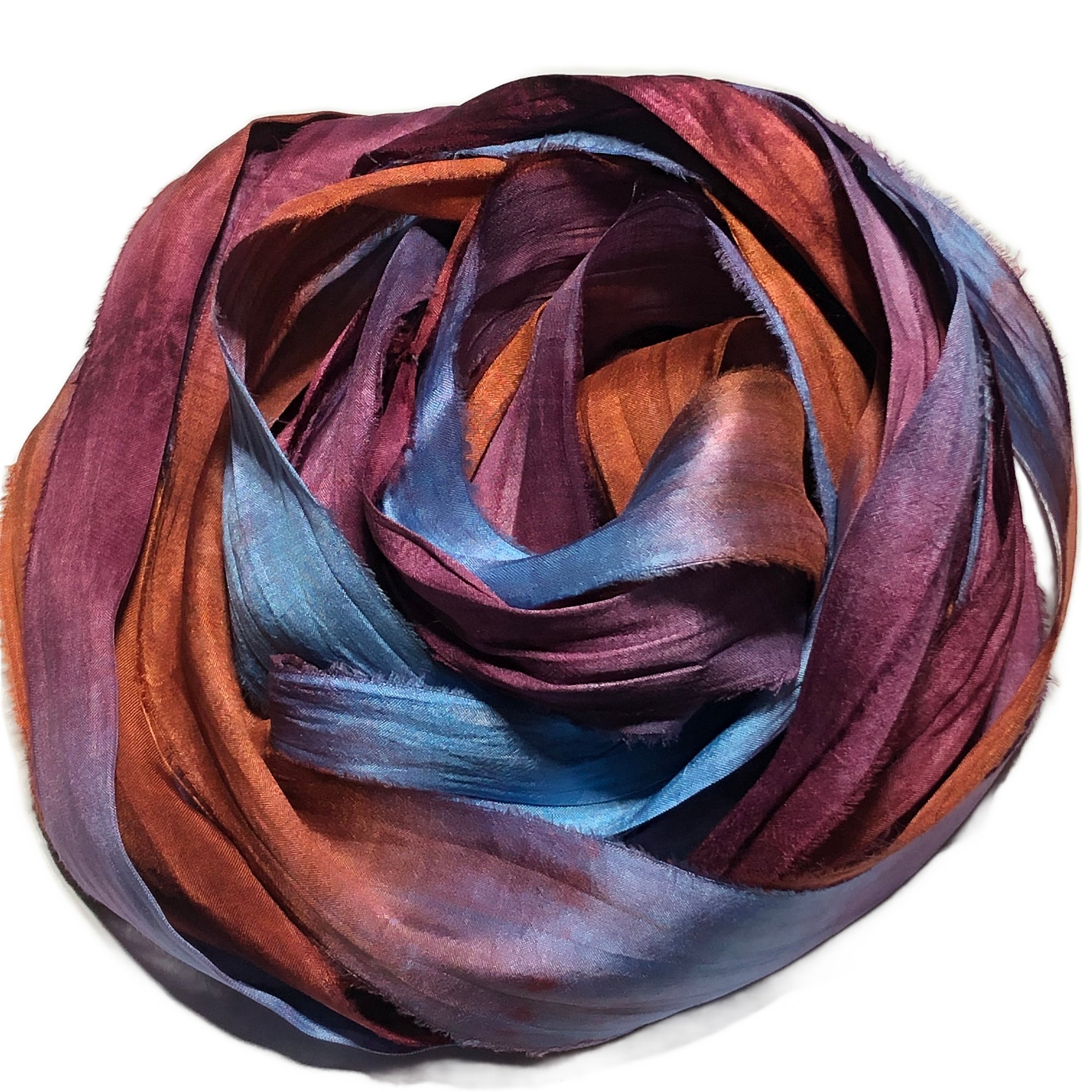 10YD. PICADILLY CIRCUS HAND DYED SARI SILK RIBBON BY COLOR BURST SILK