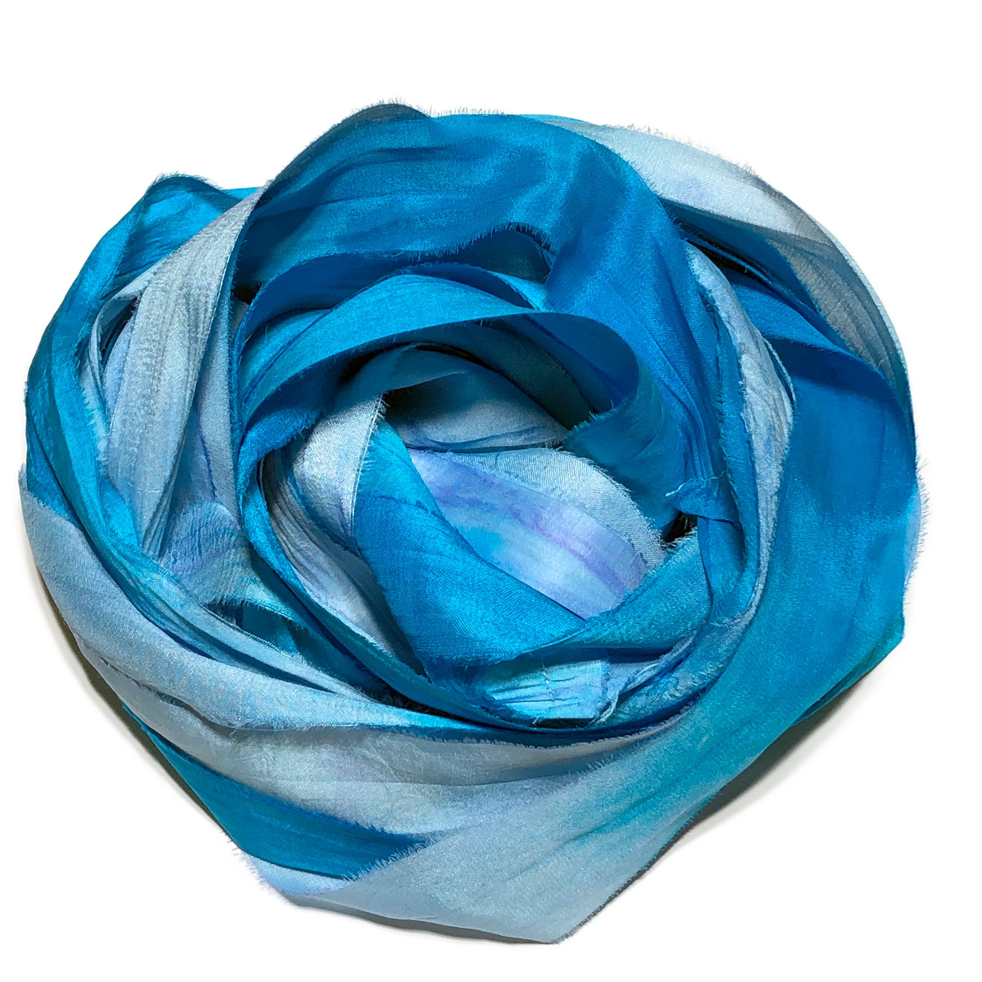 10YD. POOLSIDE HAND DYED SARI SILK RIBBON BY COLOR BURST SILK