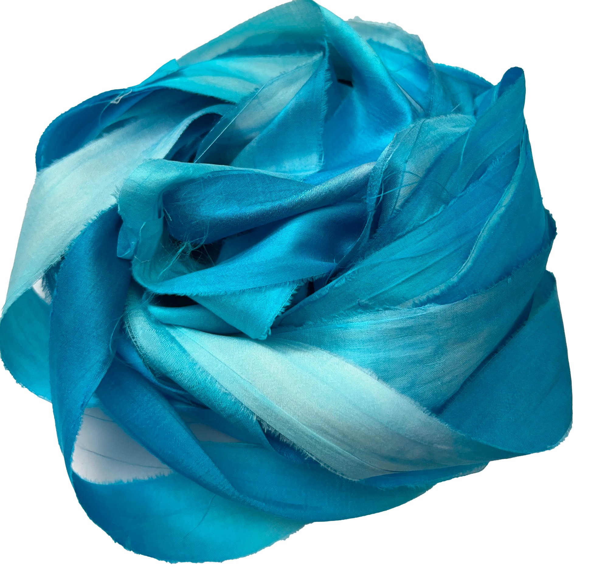 Ready To Ship! 10YD BAHAMA BREEZE HAND DYED SARI SILK RIBBON BY COLOR BURST SILK
