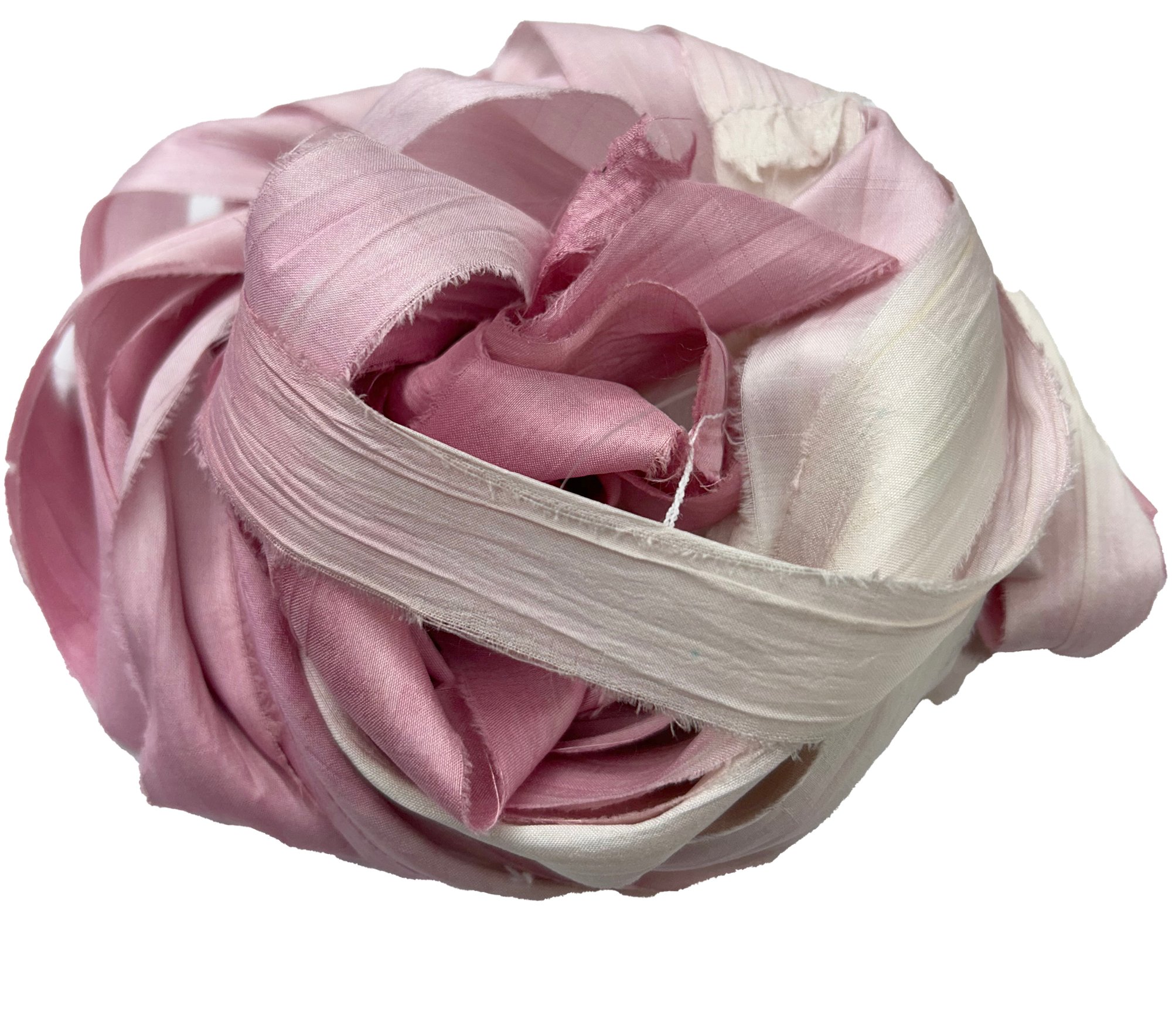 Ready To Ship! 10YD BLUSH OMBRE HAND DYED SARI SILK RIBBON BY COLOR BURST SILK