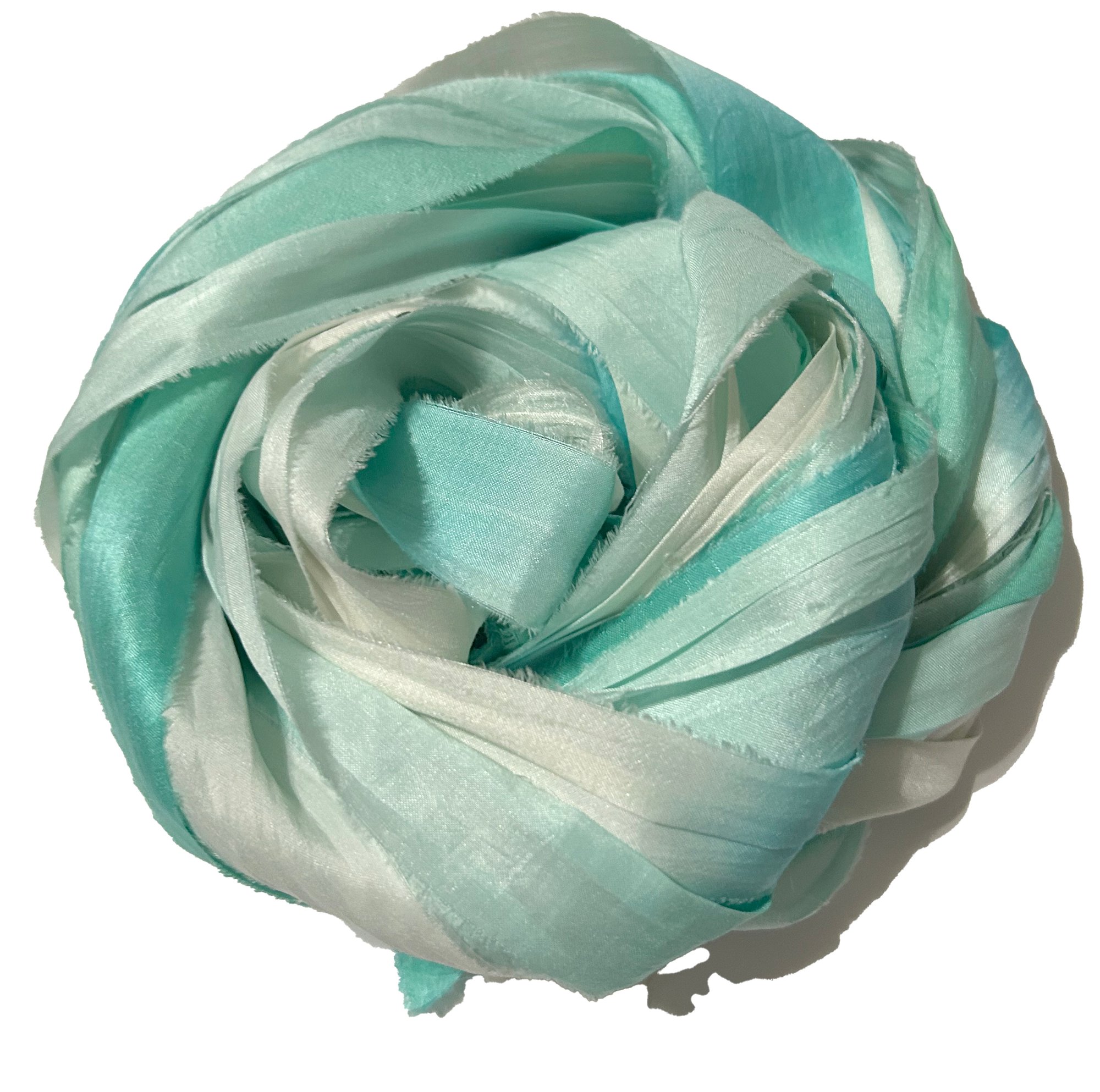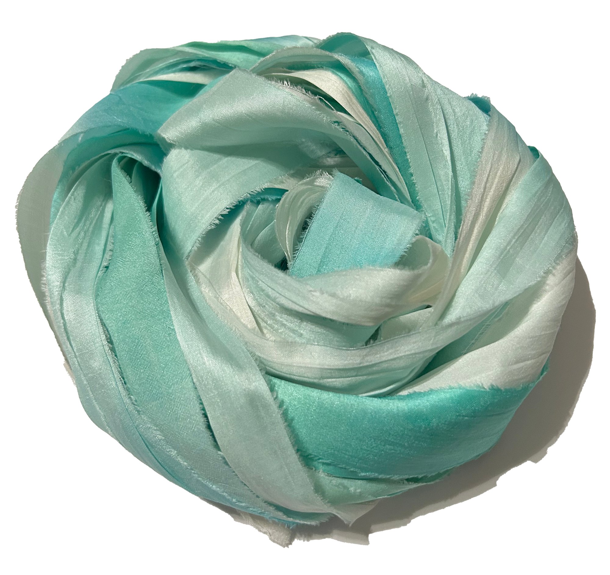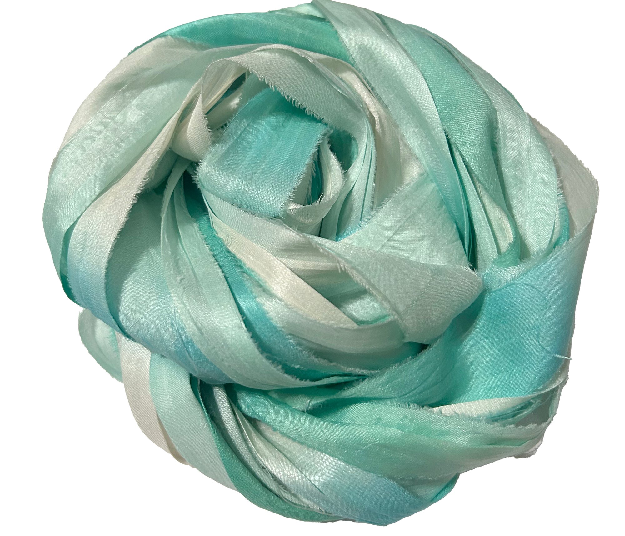 Ready To Ship! 10YD JADE OMBRE HAND DYED SARI SILK RIBBON BY COLOR BURST SILK