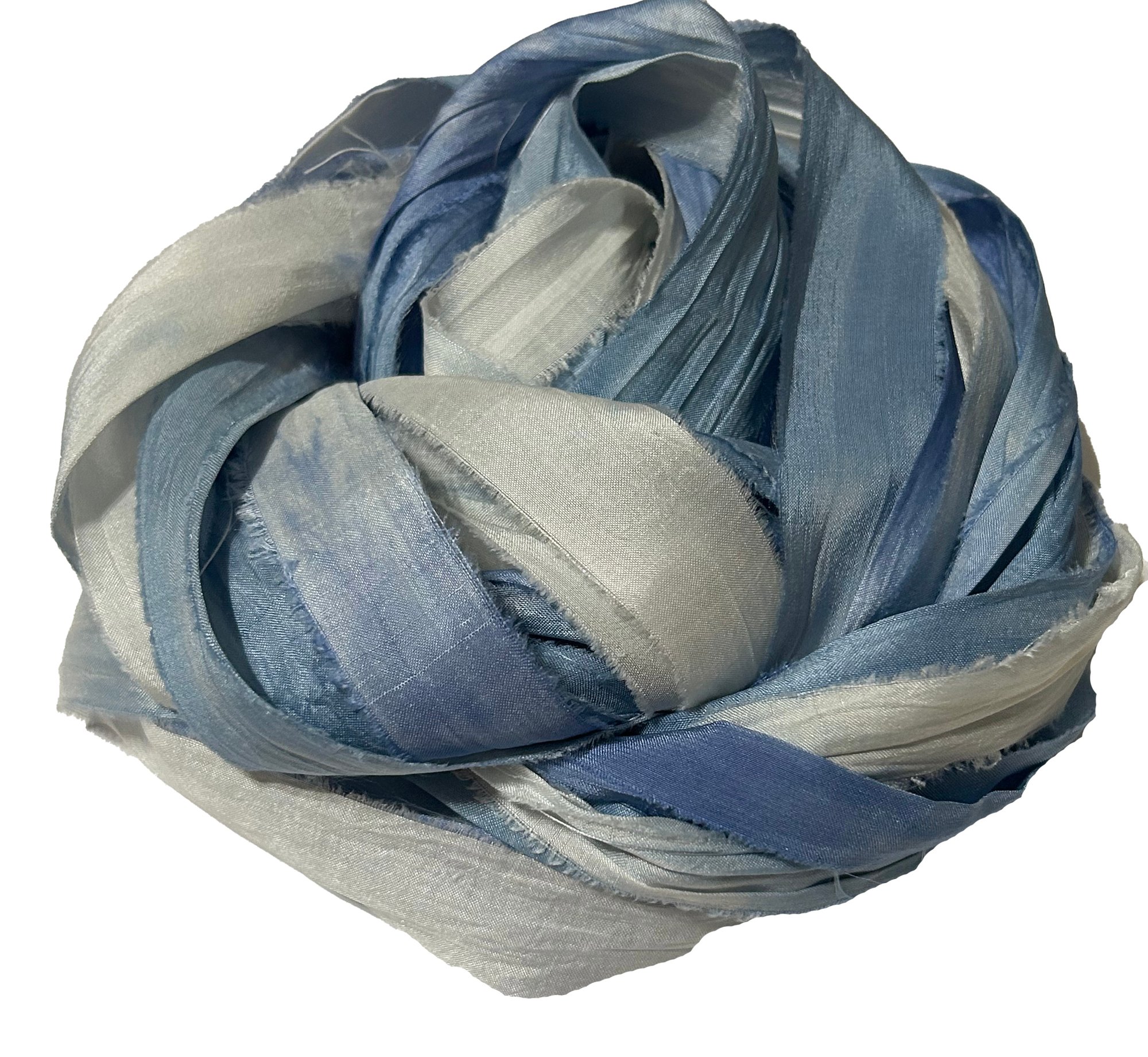 Ready To Ship! 10YD MOM JEANS HAND DYED SARI SILK RIBBON BY COLOR BURST SILK