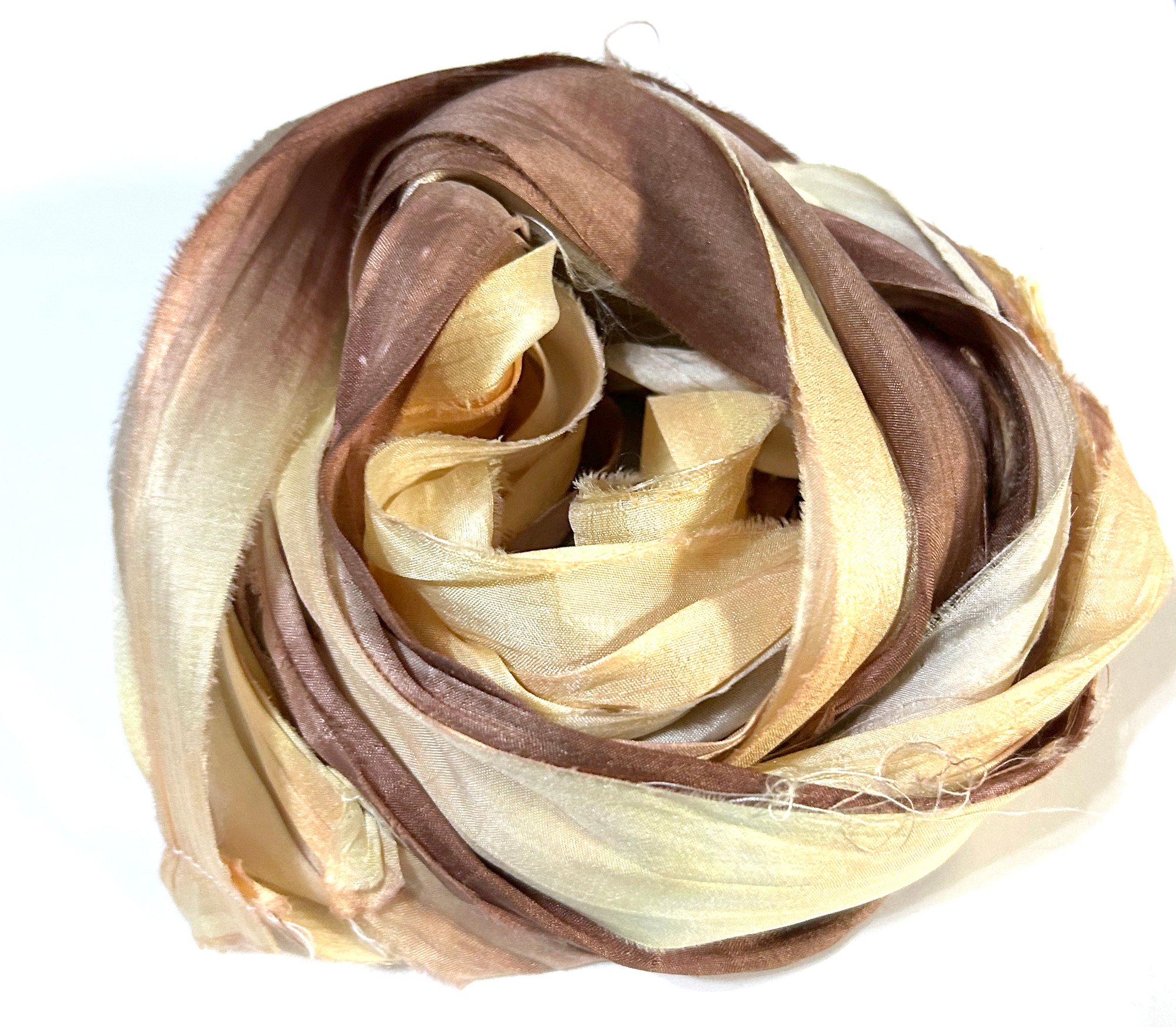 Ready To Ship! 10YD ROOTBEER FLOAT HAND DYED SARI SILK RIBBON BY COLOR BURST SILK