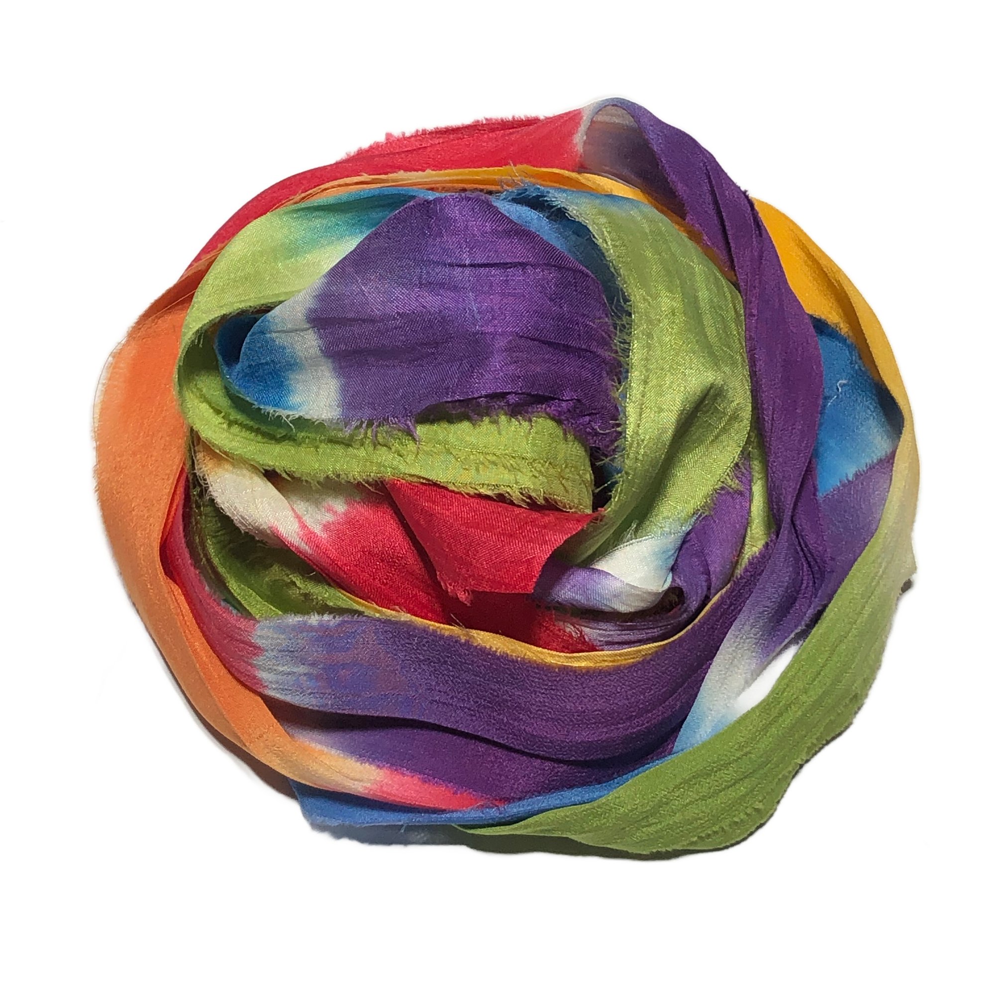10YD. TYE DYE HAND DYED SARI SILK RIBBON BY COLOR BURST SILK
